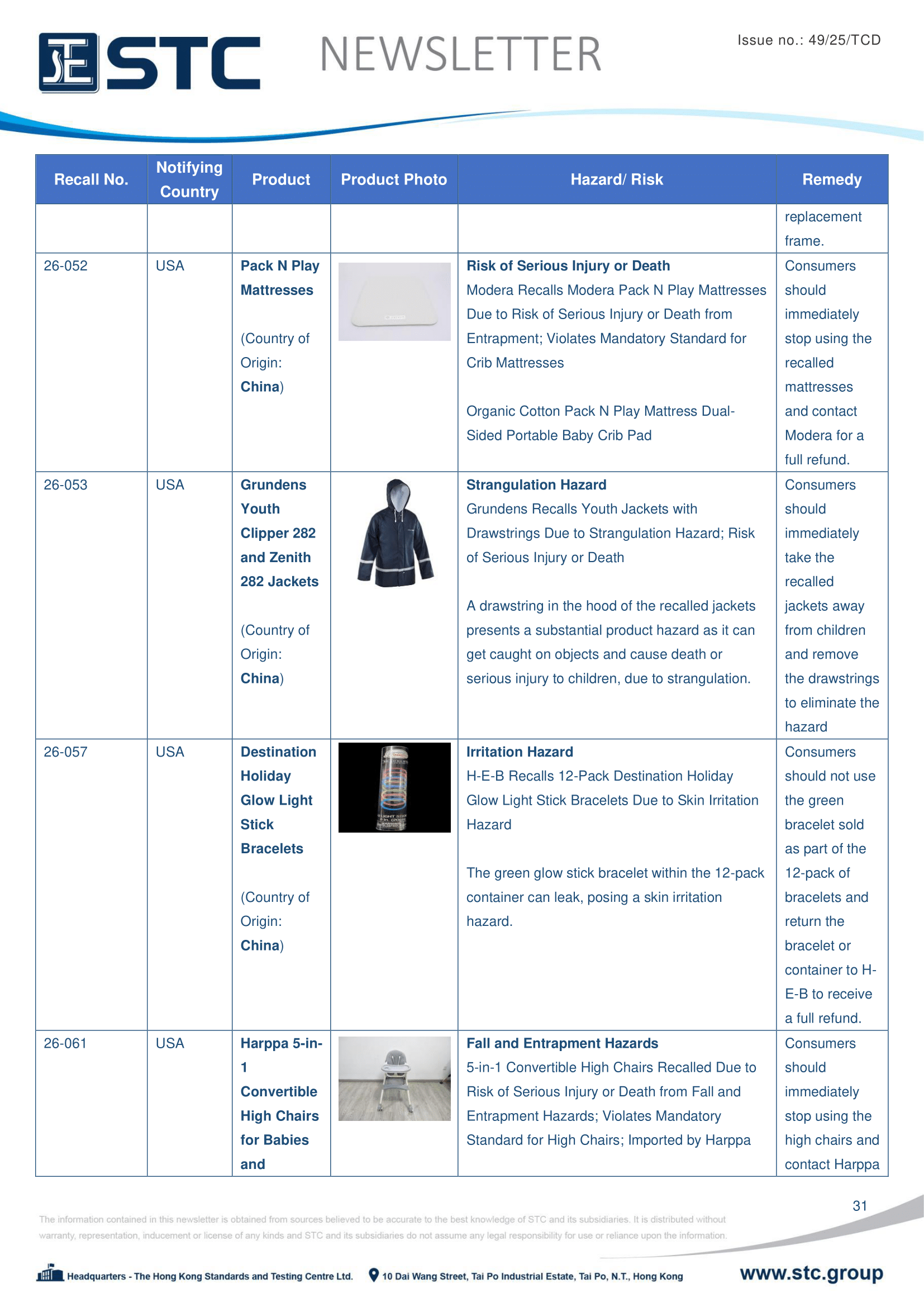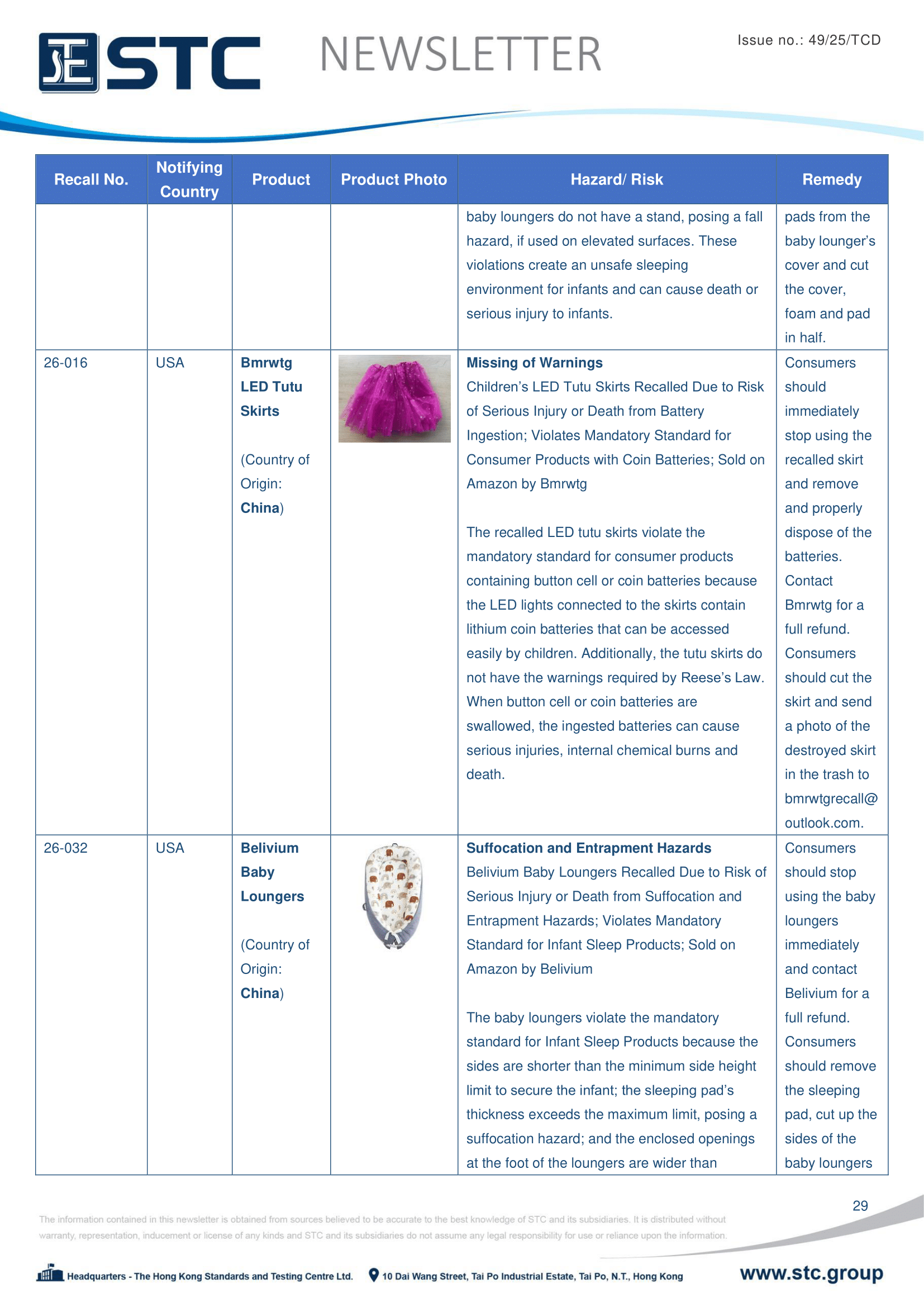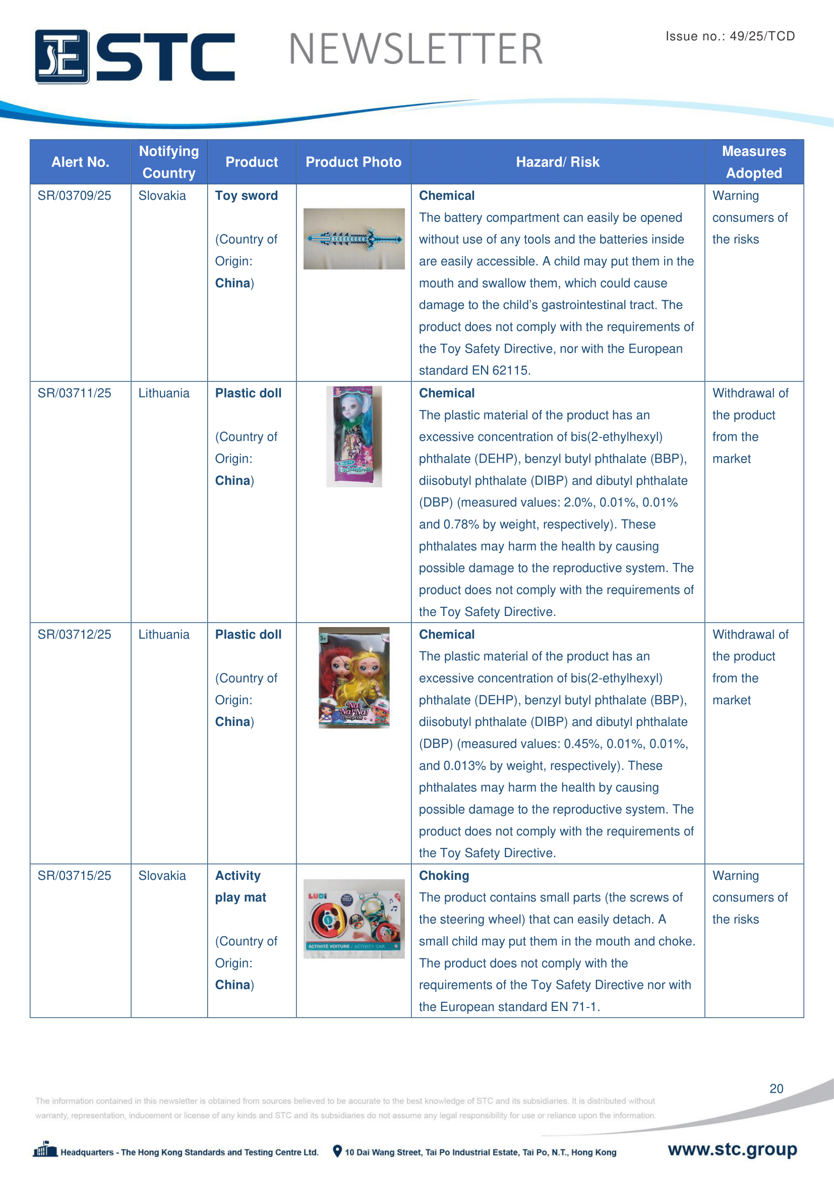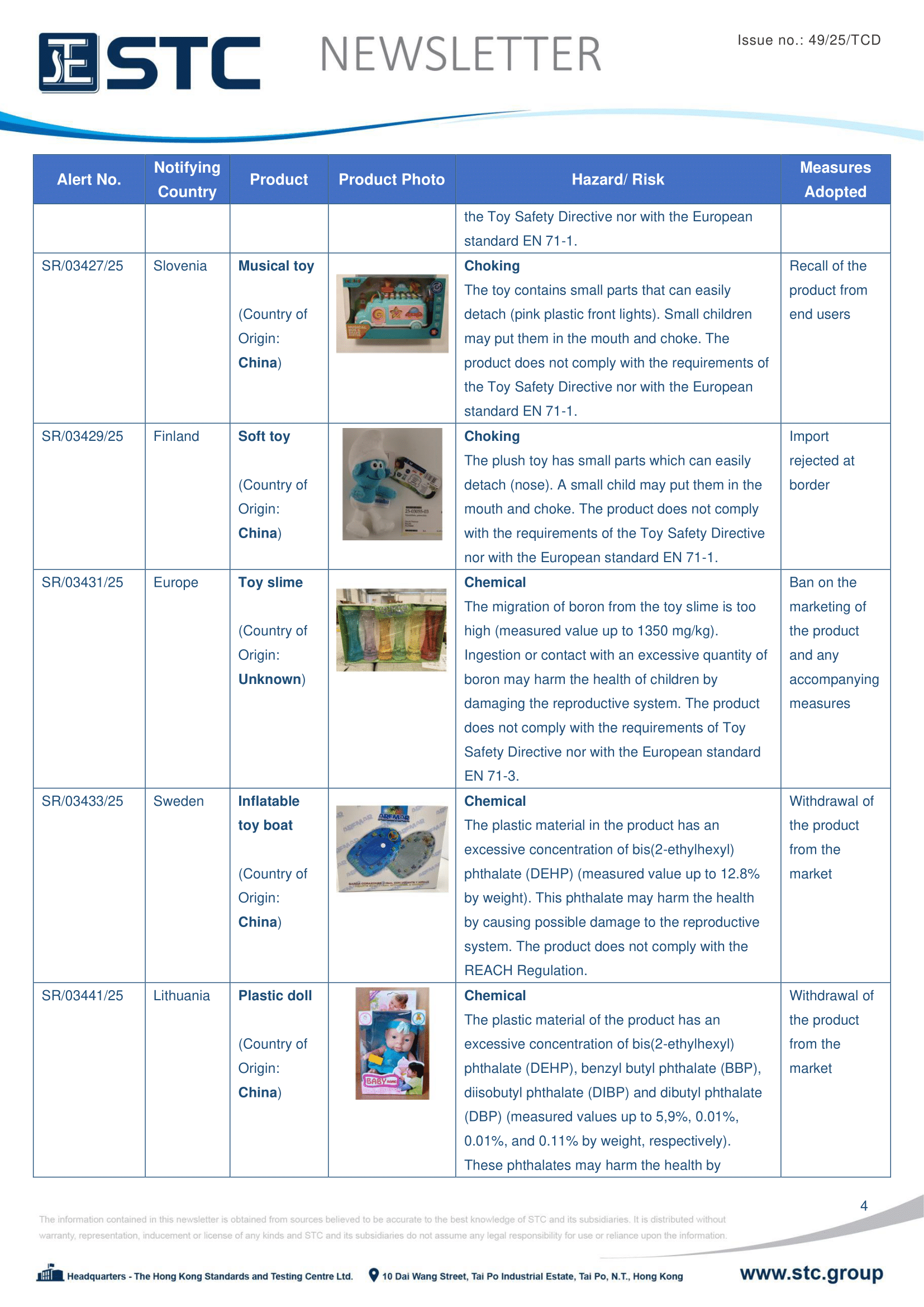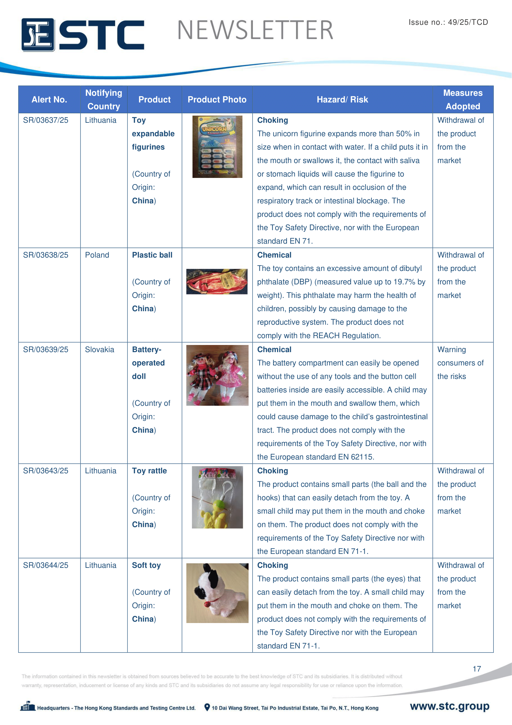 The official contact points of the Member and EFTA-EEA States provide the information published in these weekly overviews. Under the terms of Annex II.10 of the General Product Safety Directive (2001/95/EC) responsibility for the information provided lies with the notifying party. The Commission does not take any responsibility for the accuracy of the information provided.
