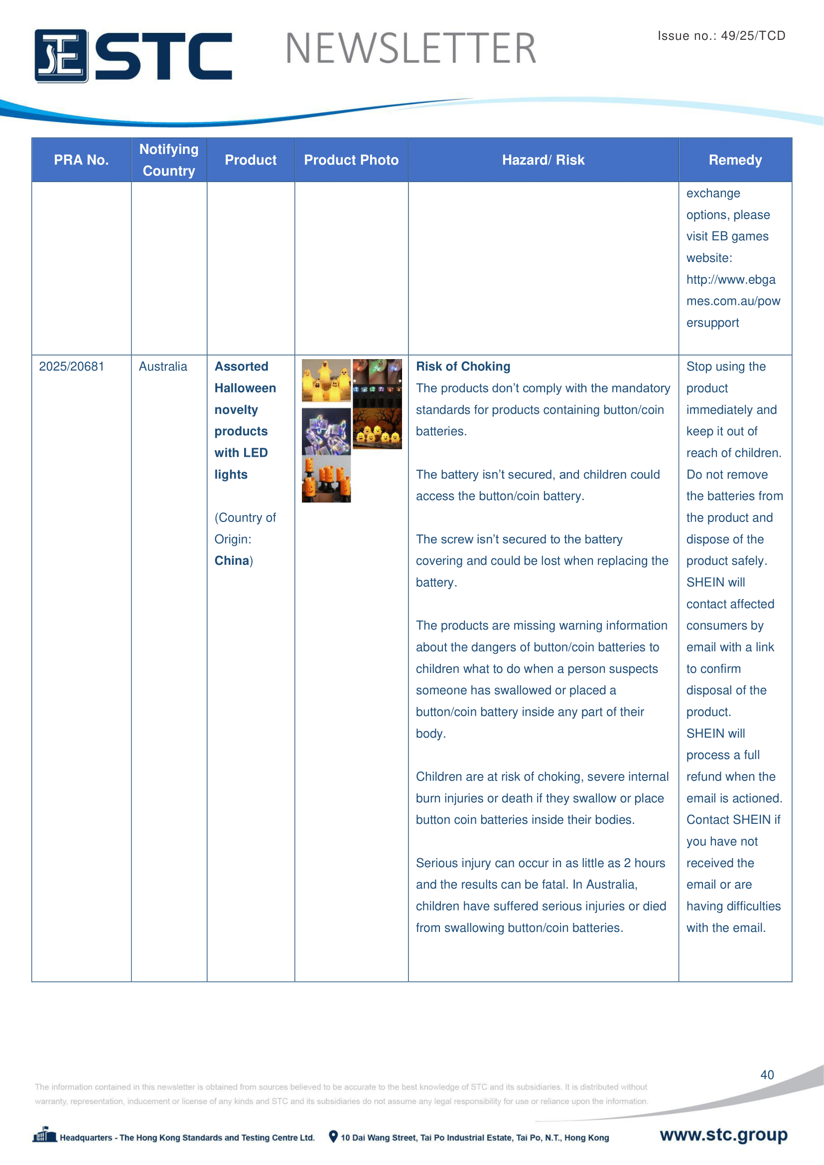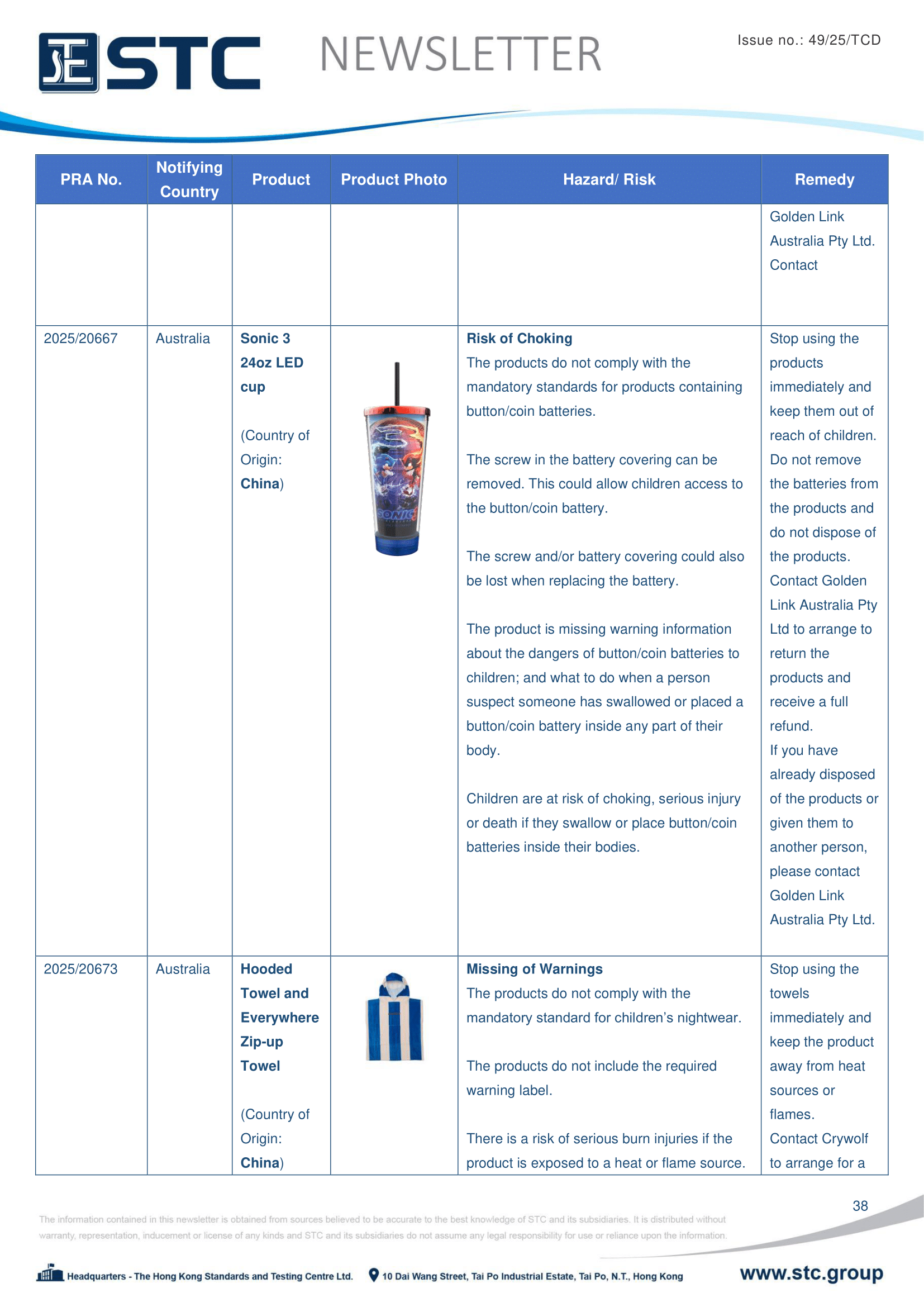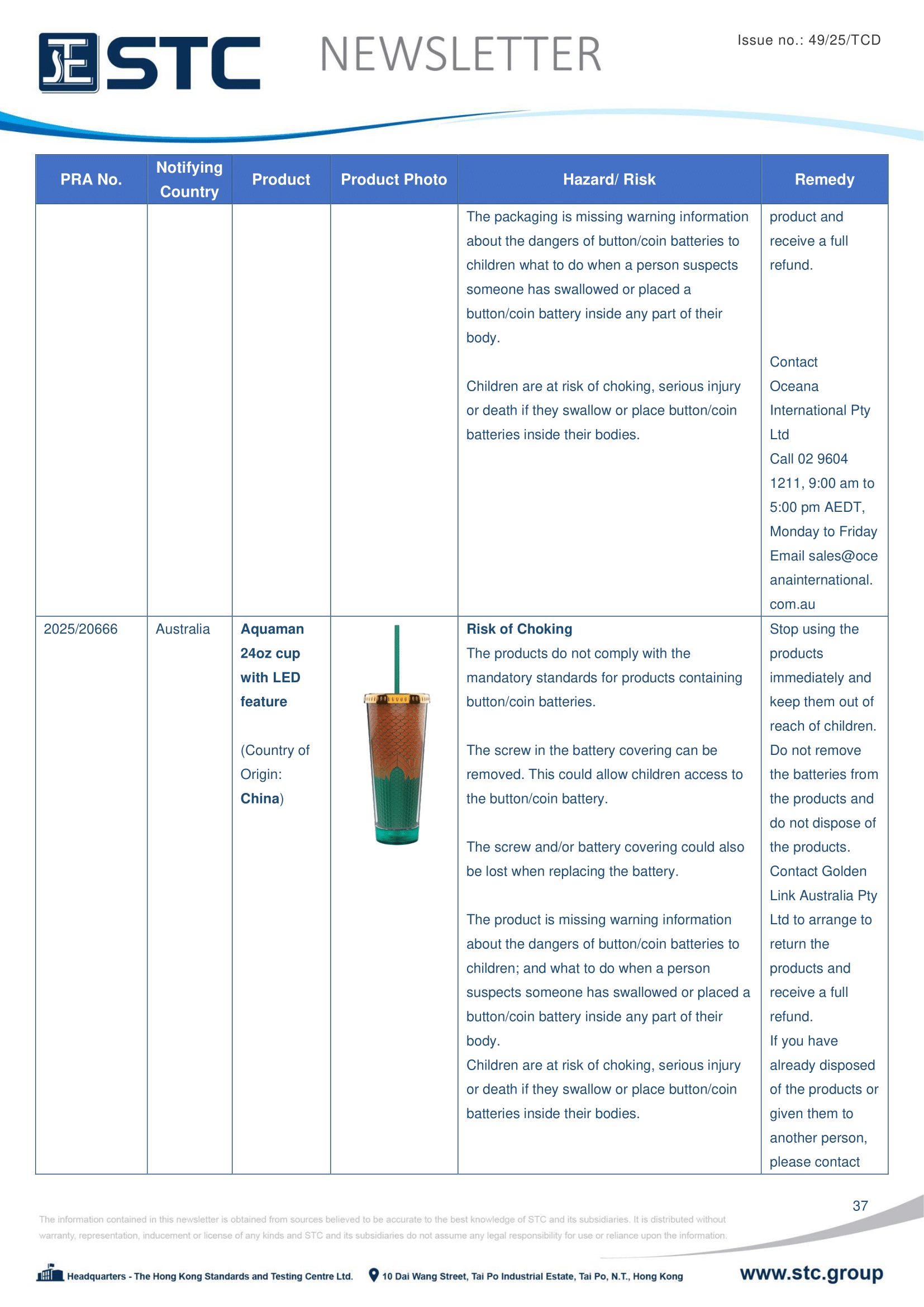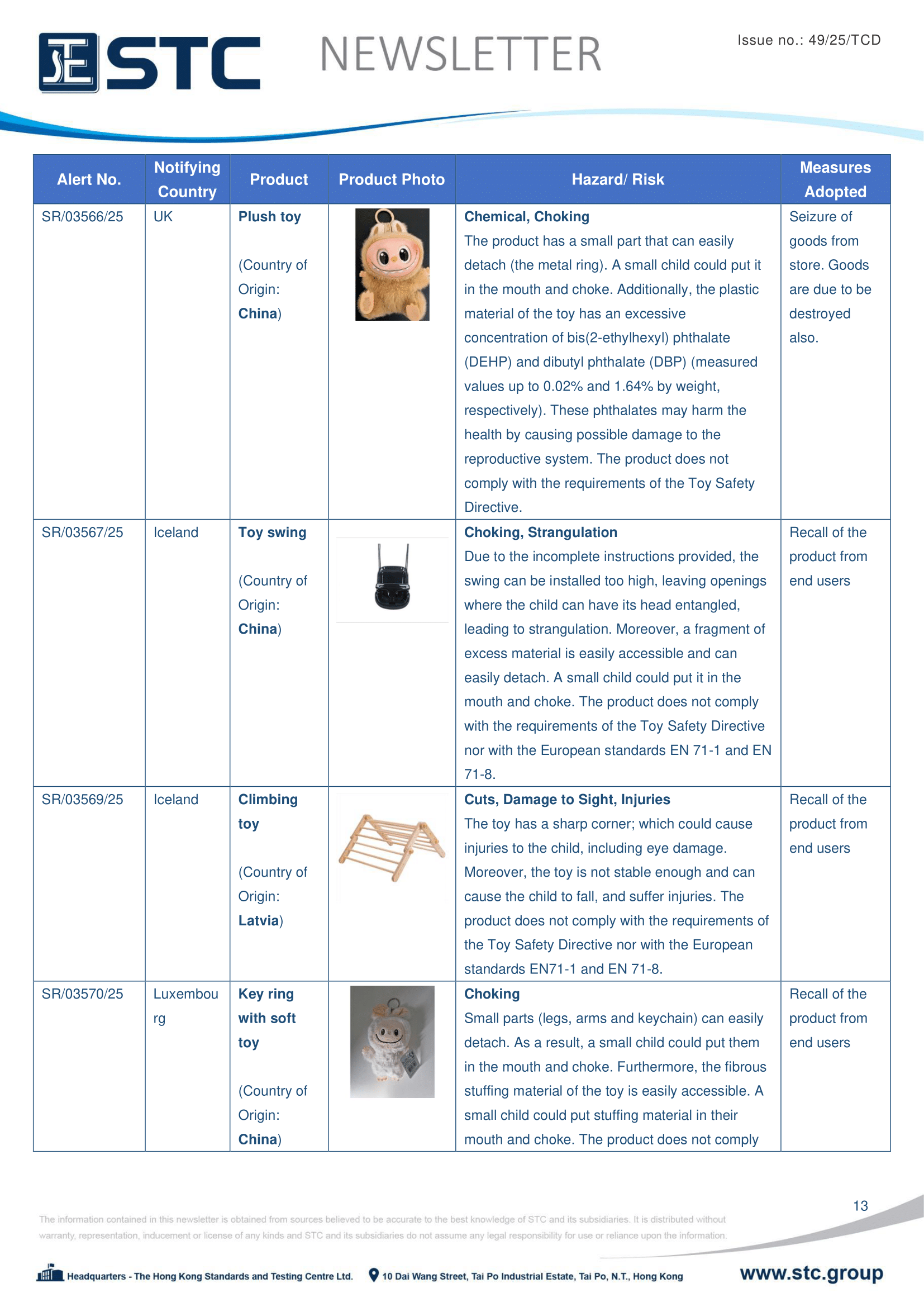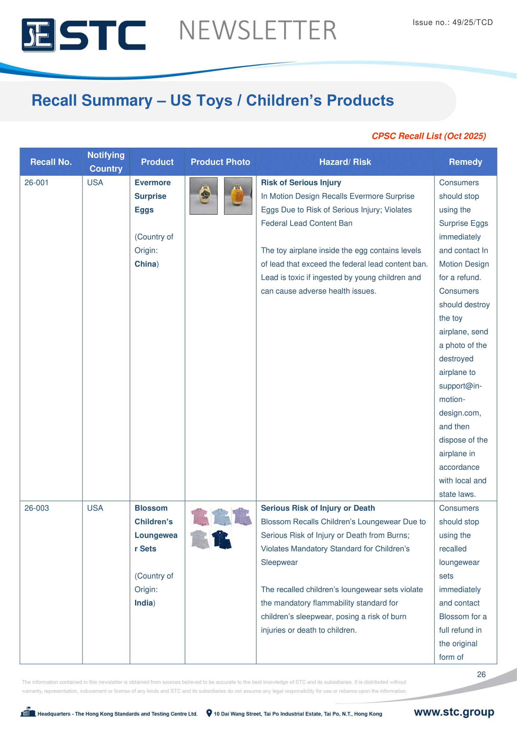 The official contact points of the Member and EFTA-EEA States provide the information published in these weekly overviews. Under the terms of Annex II.10 of the General Product Safety Directive (2001/95/EC) responsibility for the information provided lies with the notifying party. The Commission does not take any responsibility for the accuracy of the information provided.