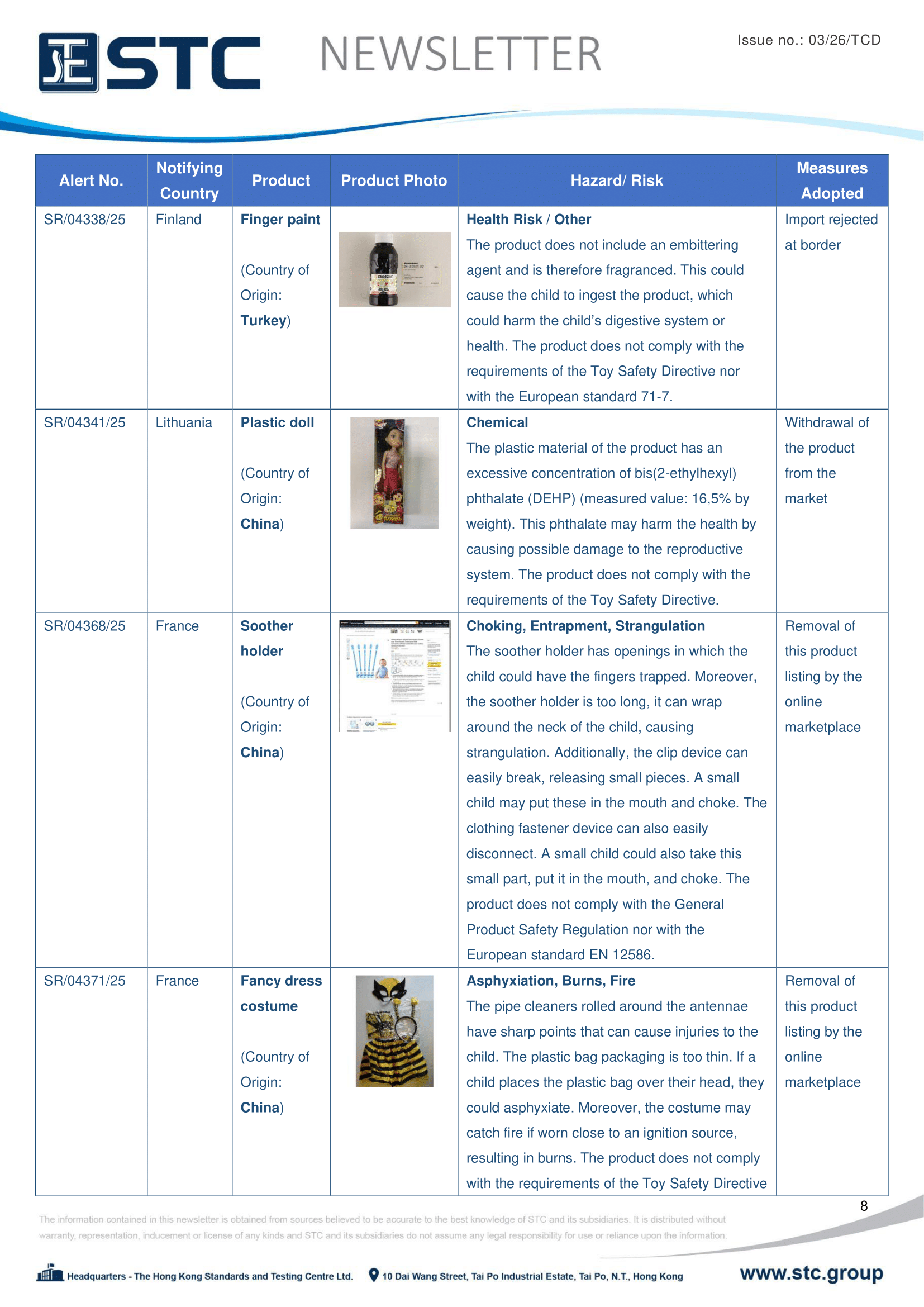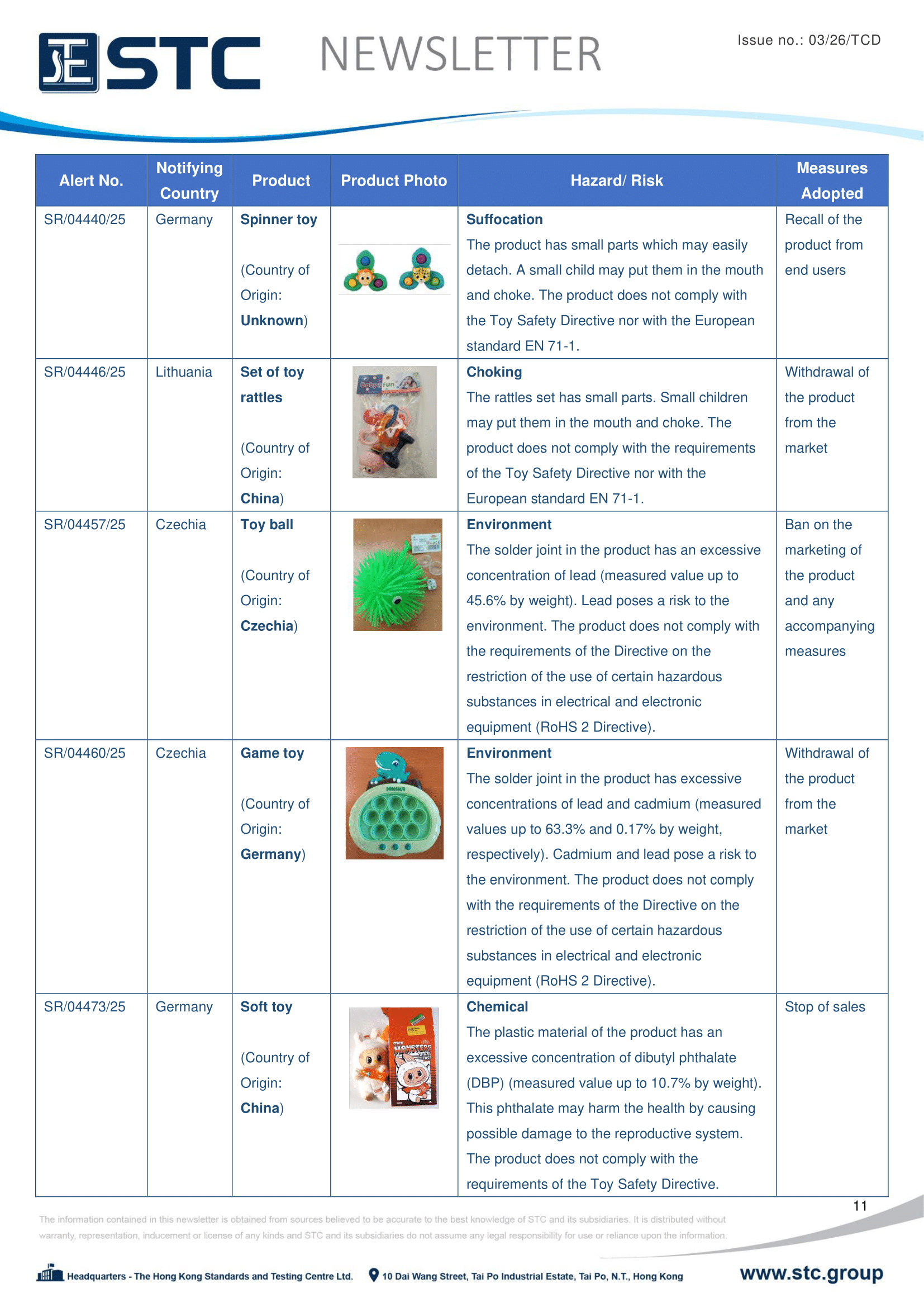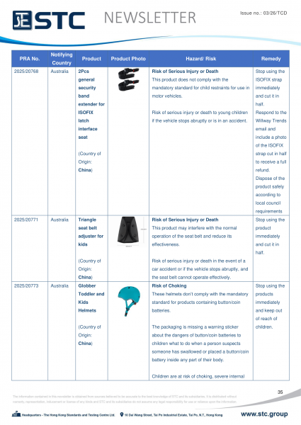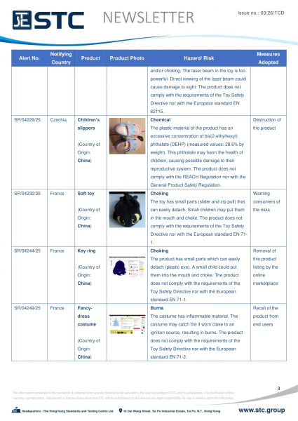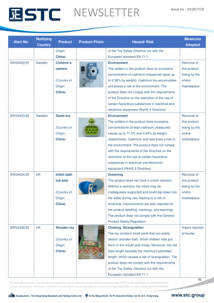 The official contact points of the Member and EFTA-EEA States provide the information published in these weekly overviews. Under the terms of Annex II.10 of the General Product Safety Directive (2001/95/EC) responsibility for the information provided lies with the notifying party. The Commission does not take any responsibility for the accuracy of the information provided.