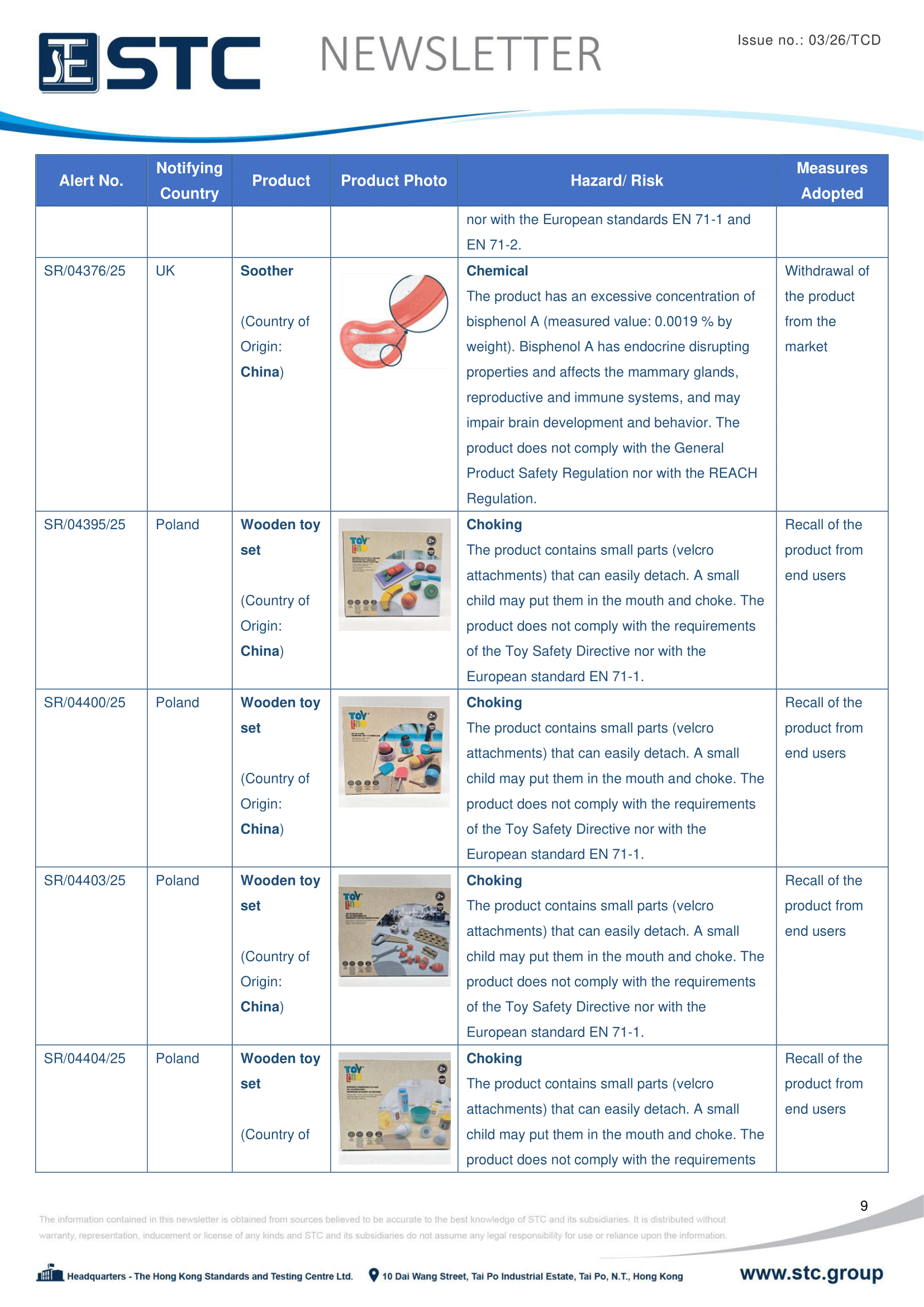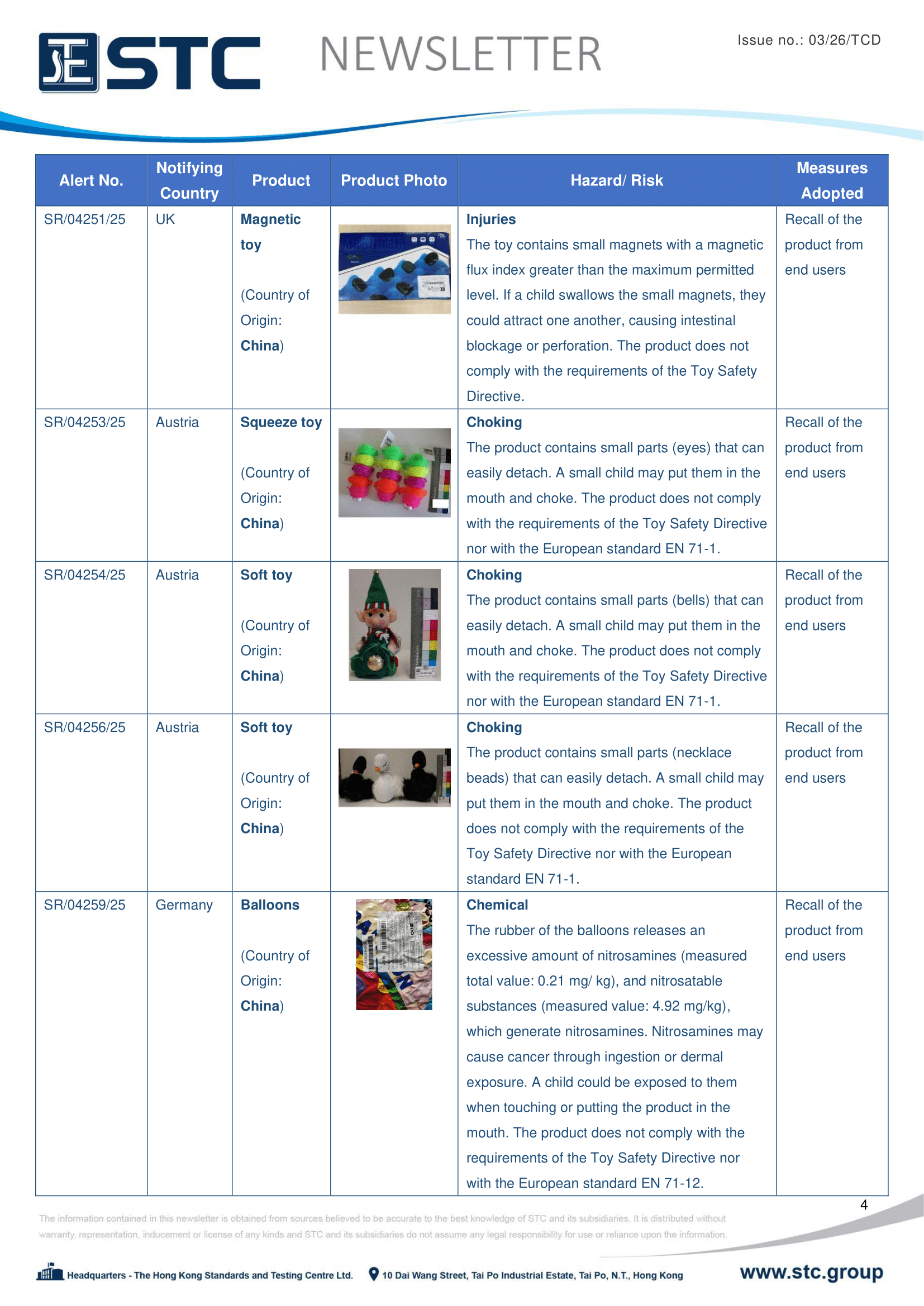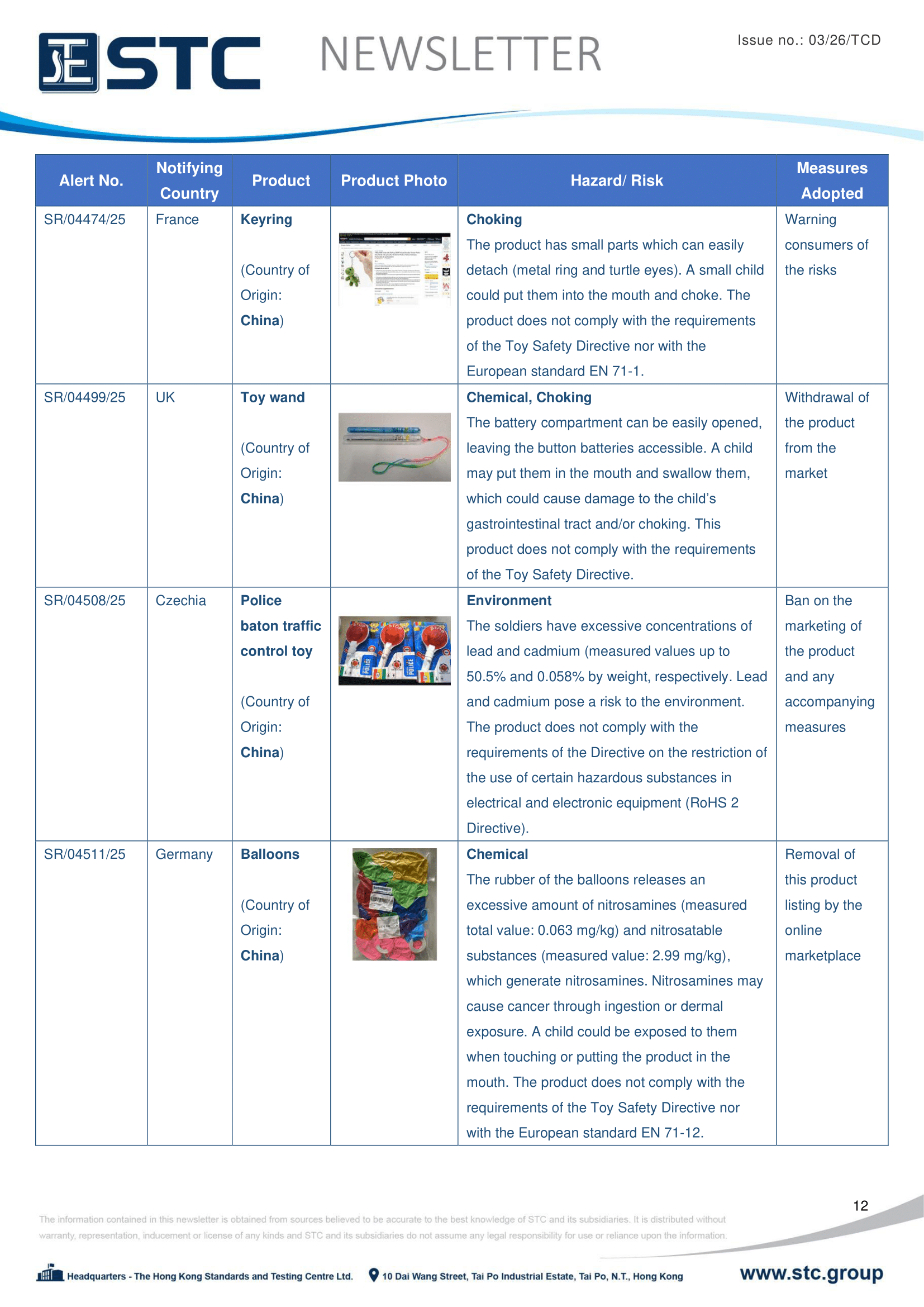 The official contact points of the Member and EFTA-EEA States provide the information published in these weekly overviews. Under the terms of Annex II.10 of the General Product Safety Directive (2001/95/EC) responsibility for the information provided lies with the notifying party. The Commission does not take any responsibility for the accuracy of the information provided.