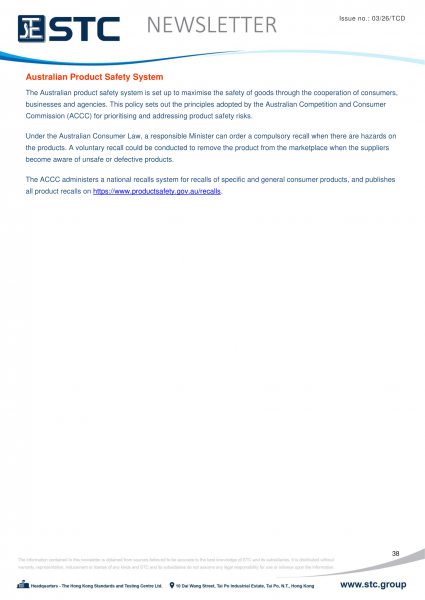 The ACCC administers a national recall system for recalls of specific and general consumer products, and publishes all product recalls on https://www.productsafety.gov.au/recalls.
