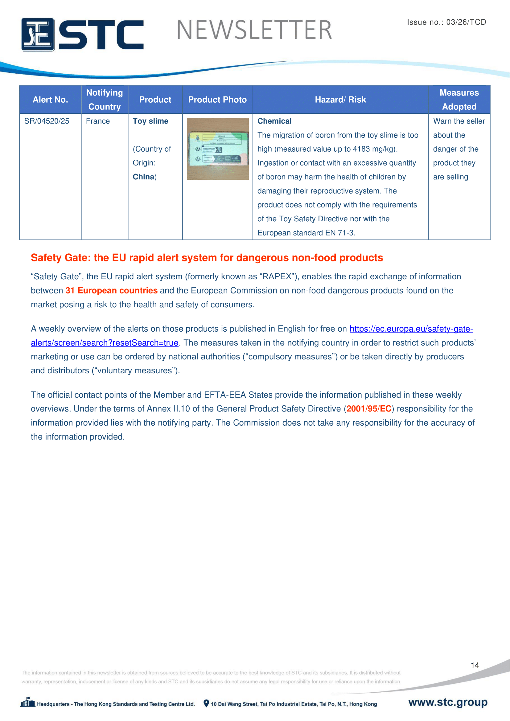“Safety Gate”, the EU rapid alert system (formerly known as ‘RAPEX’), enables the rapid exchange of information between 31 European countries and the European Commission on non-food dangerous products found on the market posing a risk to the health and safety of consumers.