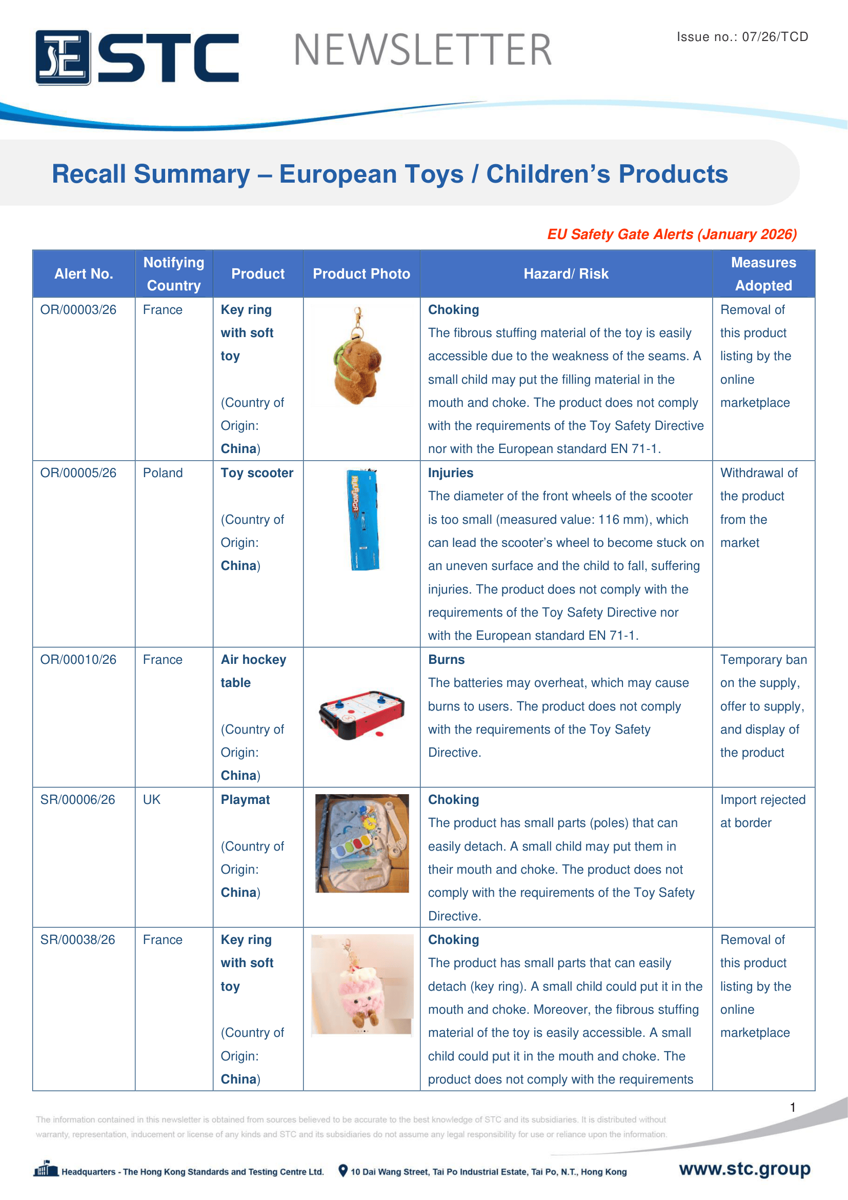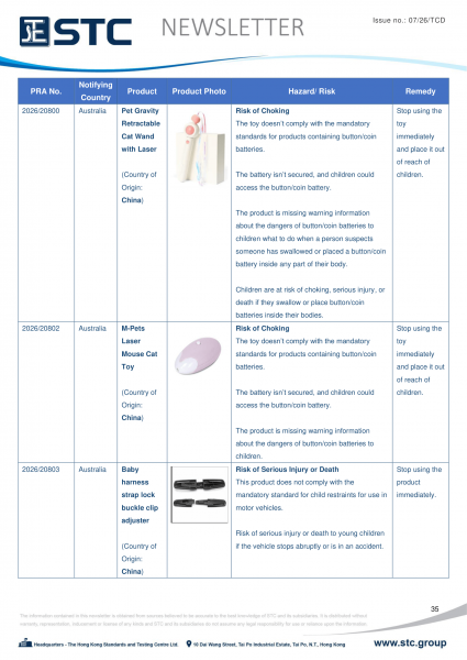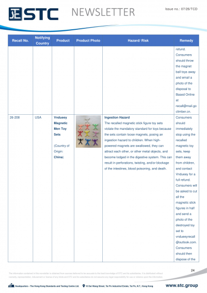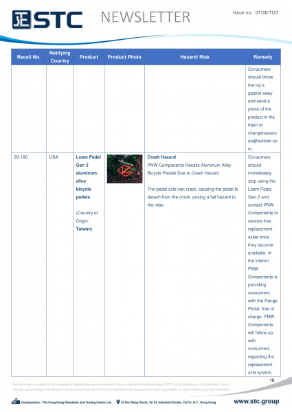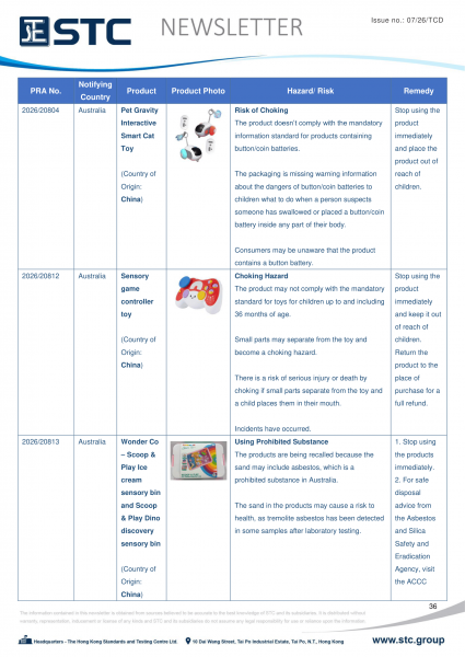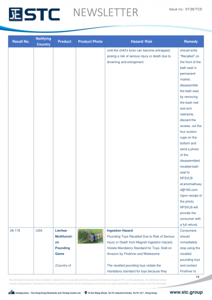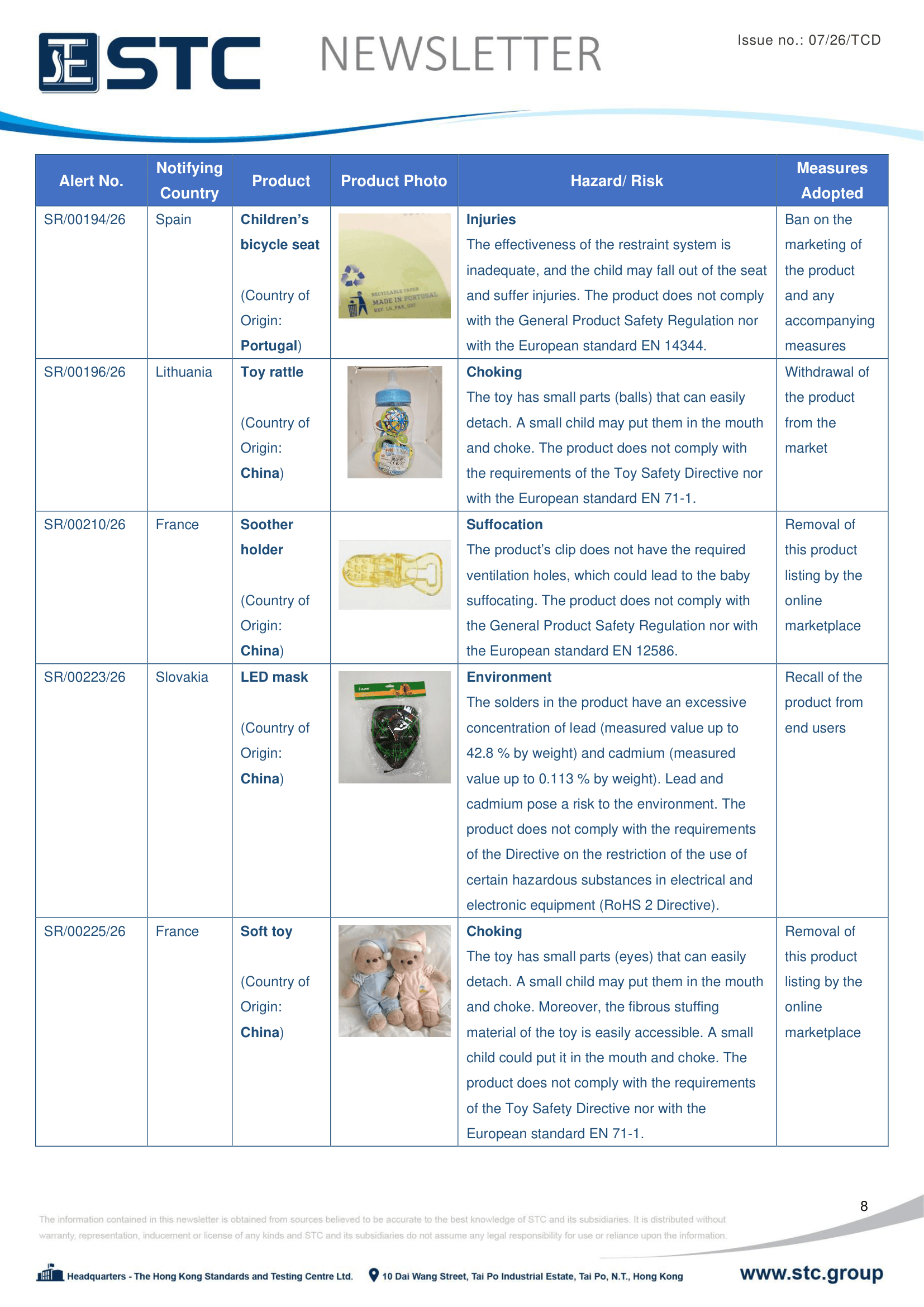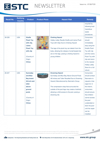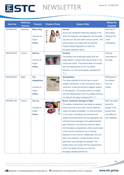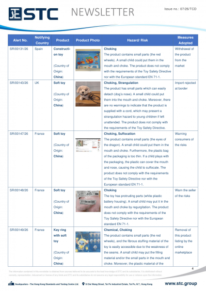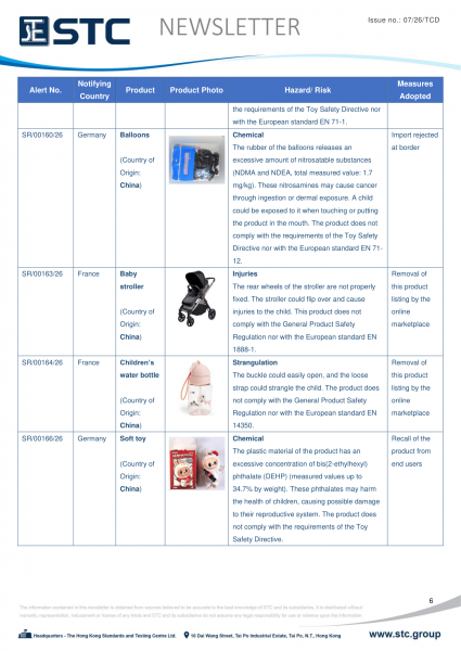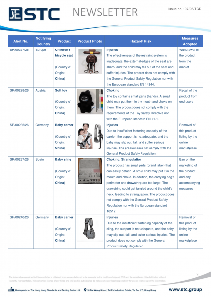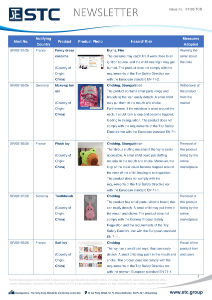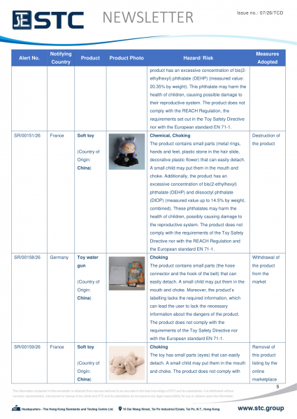 The official contact points of the Member and EFTA-EEA States provide the information published in these weekly overviews. Under the terms of Annex II.10 of the General Product Safety Directive (2001/95/EC) responsibility for the information provided lies with the notifying party. The Commission does not take any responsibility for the accuracy of the information provided.