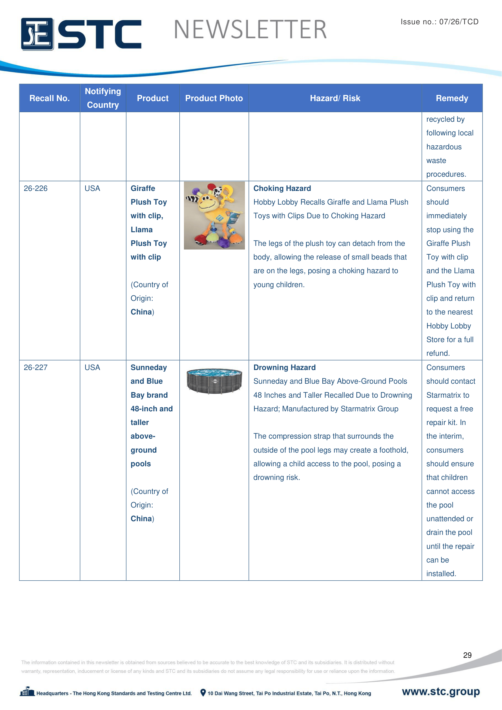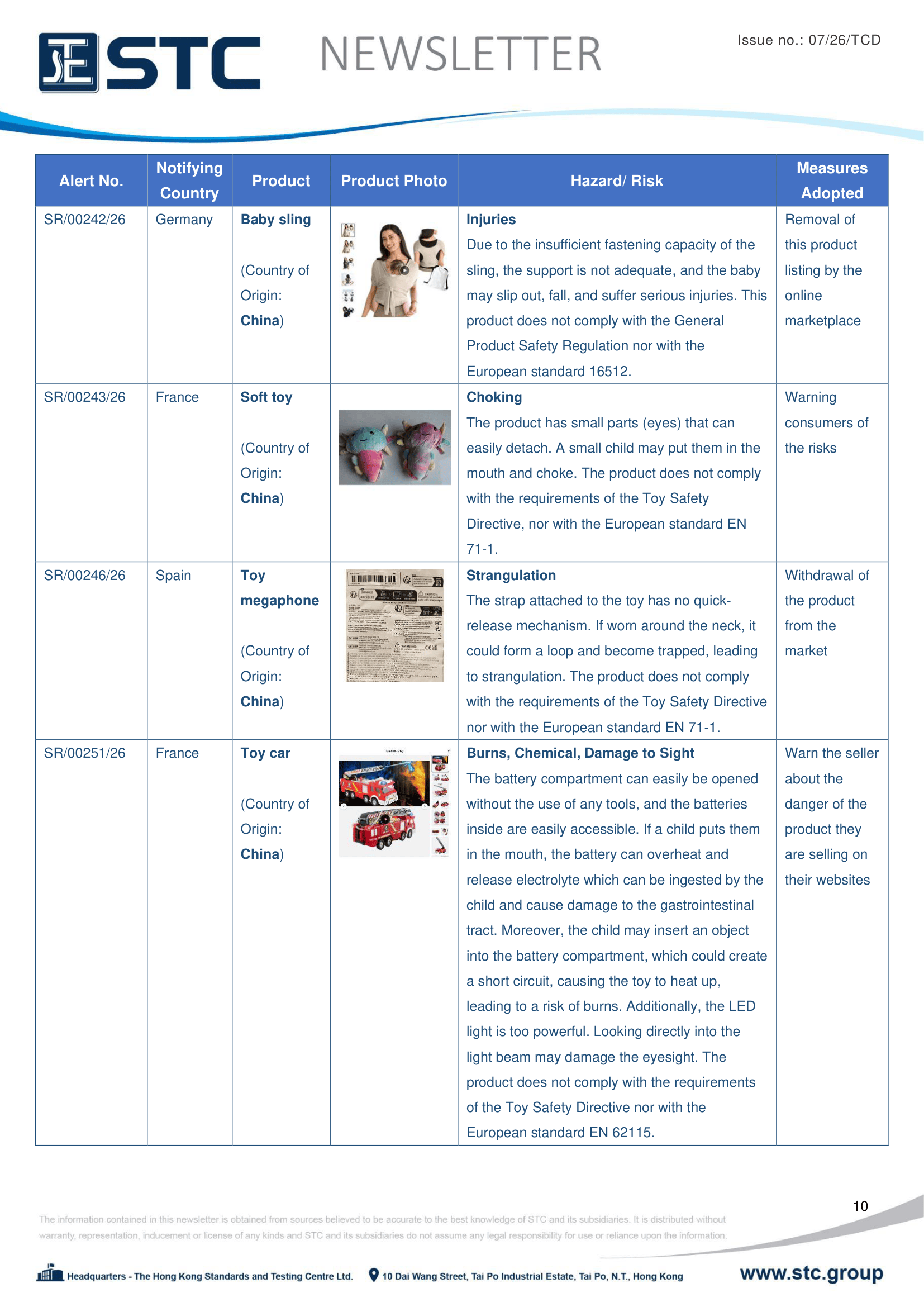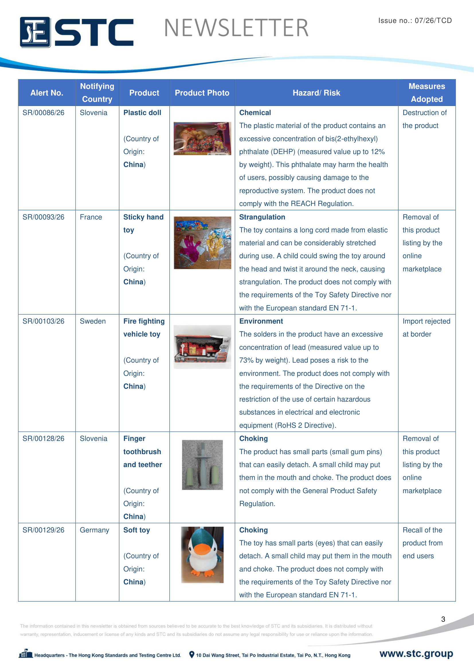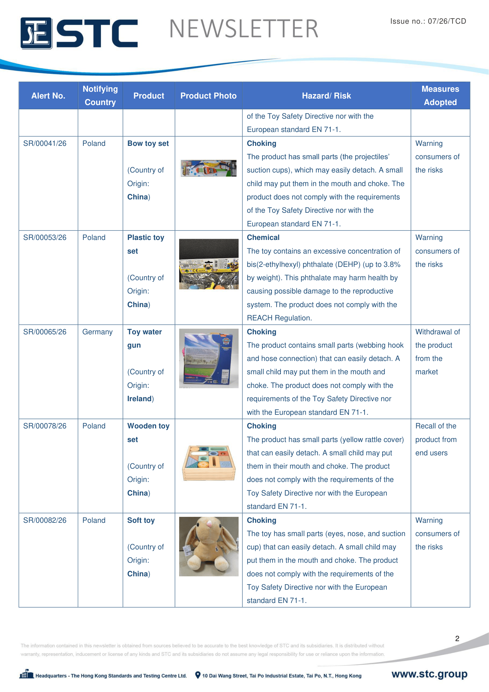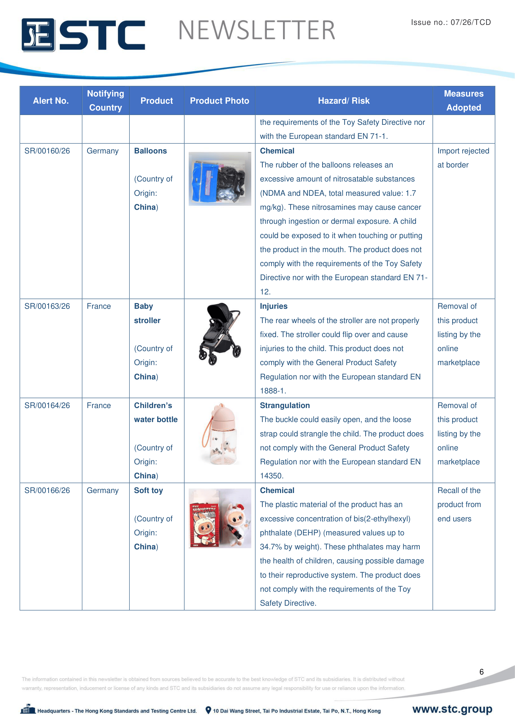 The official contact points of the Member and EFTA-EEA States provide the information published in these weekly overviews. Under the terms of Annex II.10 of the General Product Safety Directive (2001/95/EC) responsibility for the information provided lies with the notifying party. The Commission does not take any responsibility for the accuracy of the information provided.