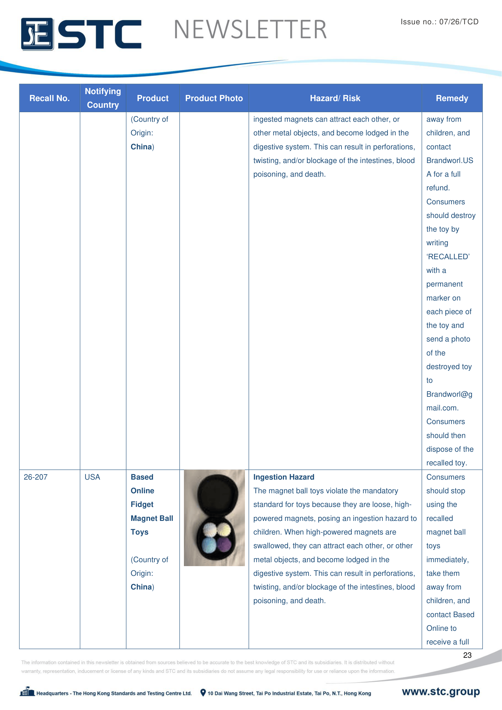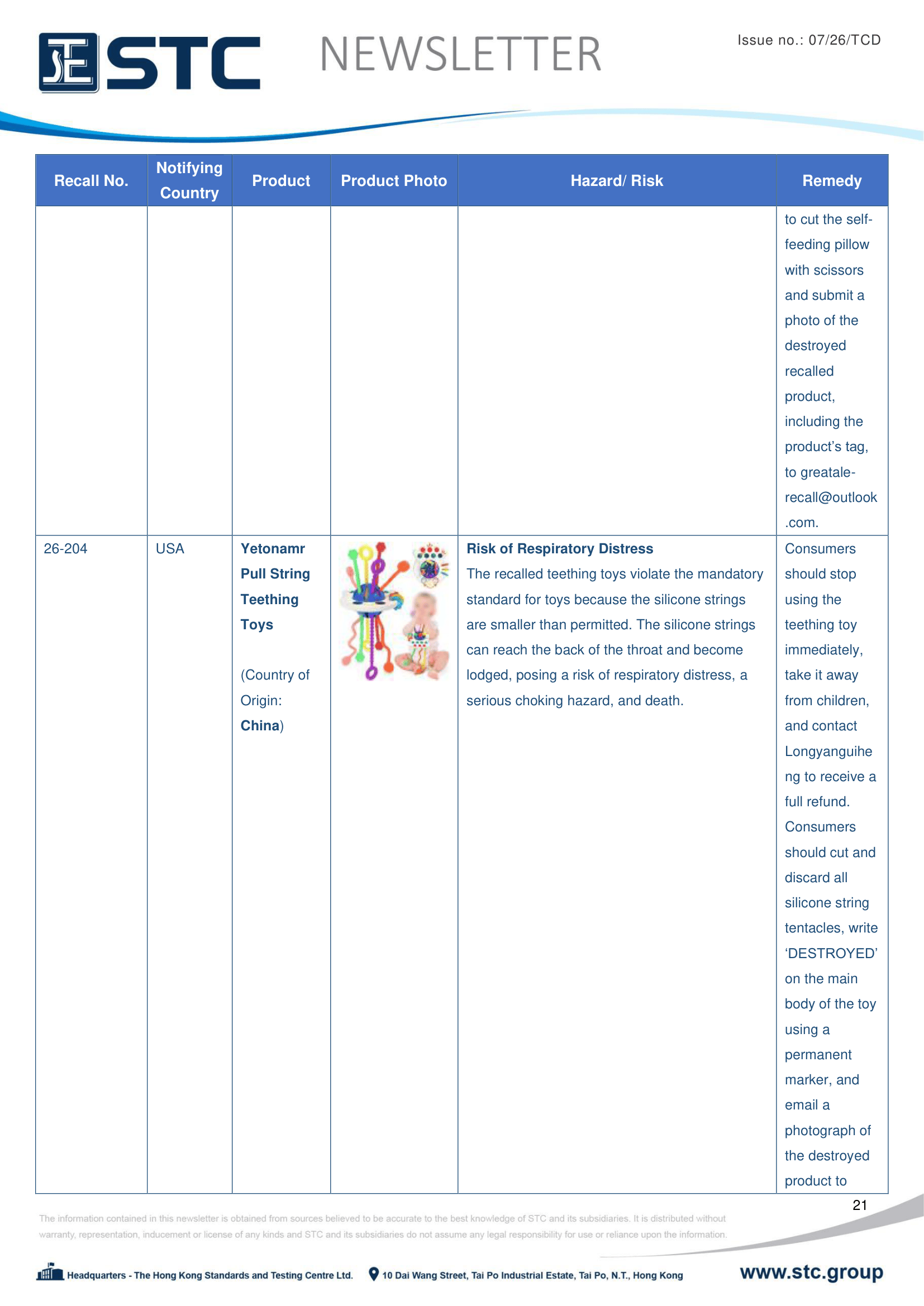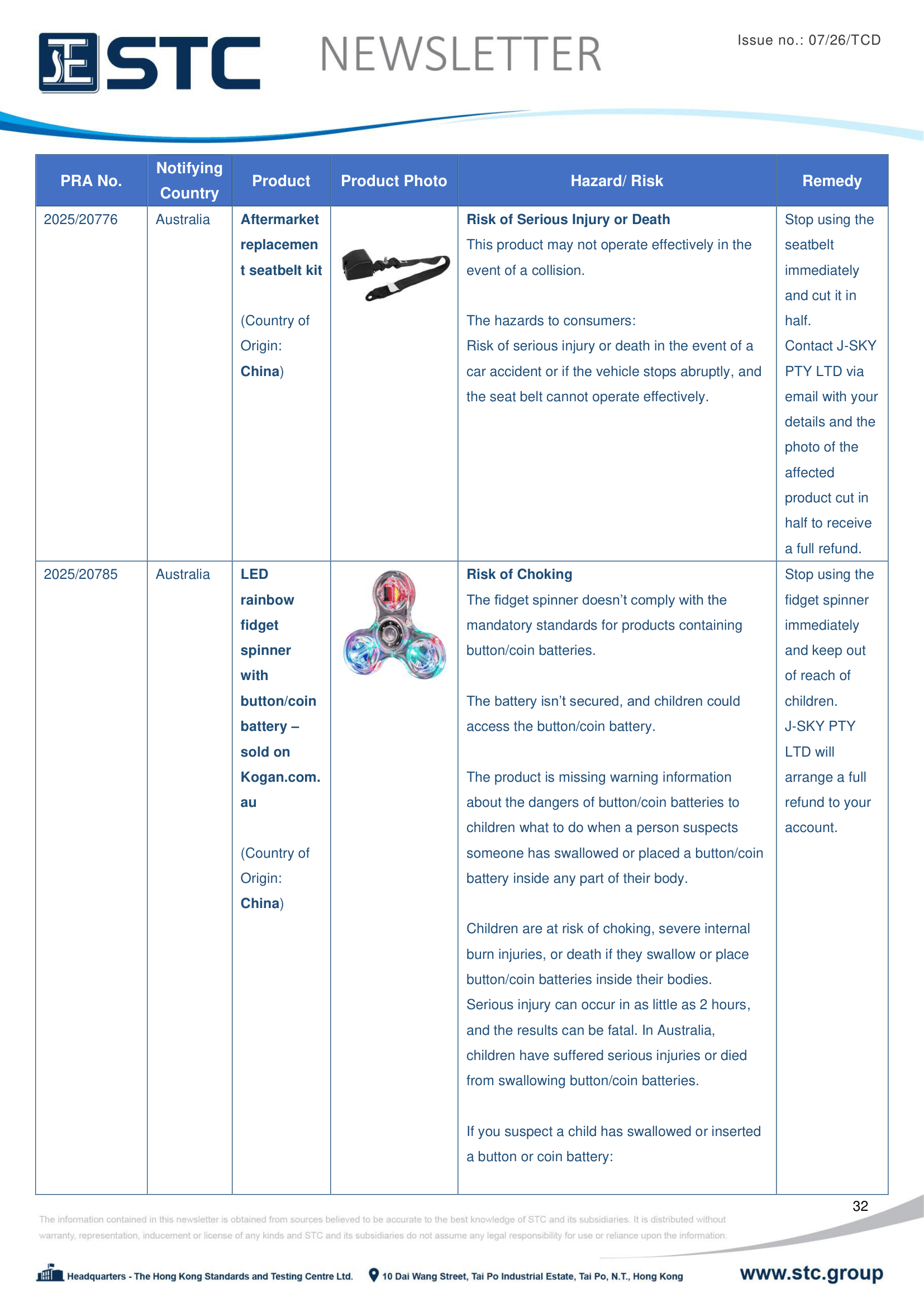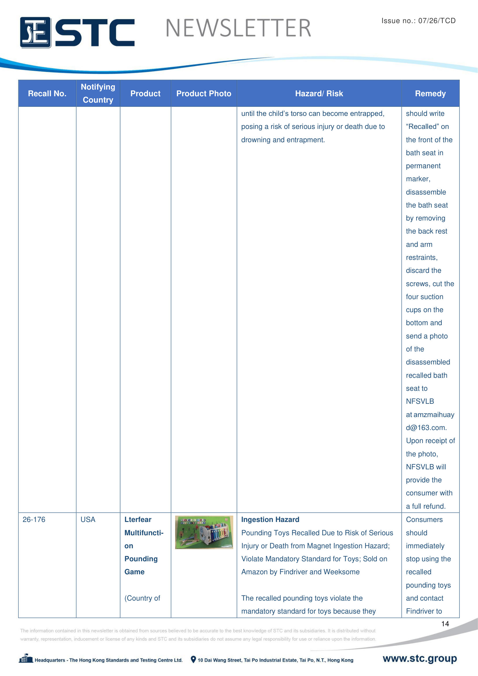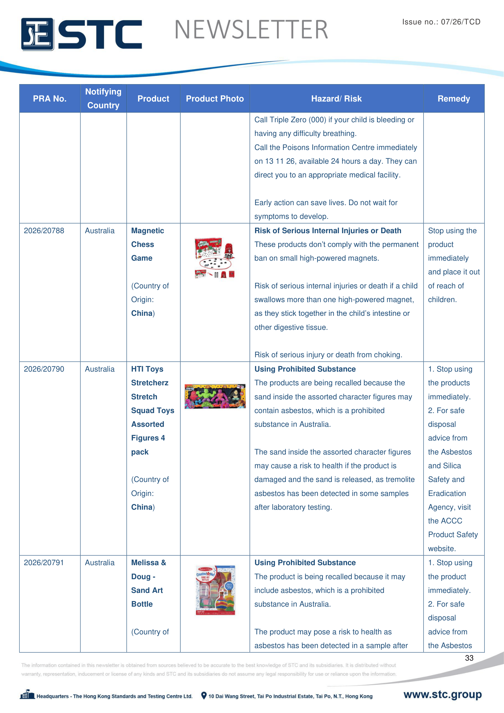The official contact points of the Member and EFTA-EEA States provide the information published in these weekly overviews. Under the terms of Annex II.10 of the General Product Safety Directive (2001/95/EC) responsibility for the information provided lies with the notifying party. The Commission does not take any responsibility for the accuracy of the information provided.