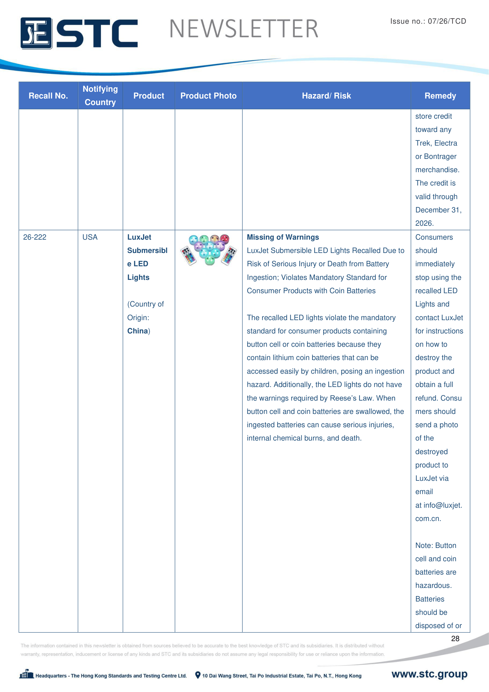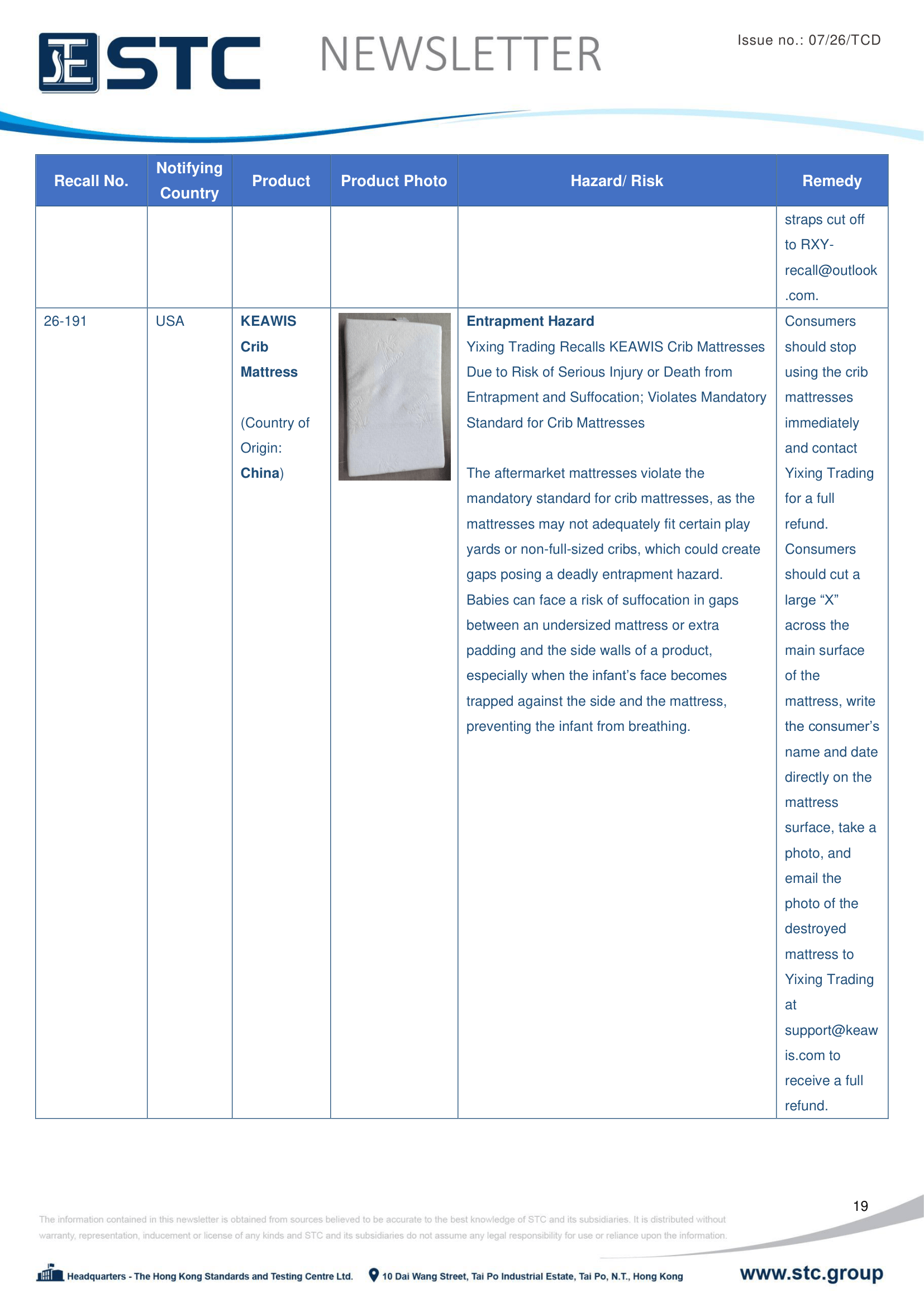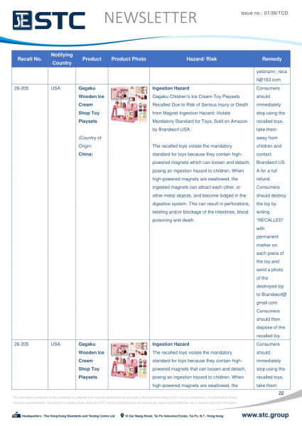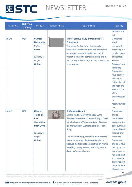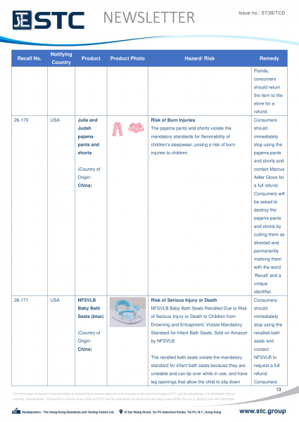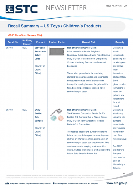 The recall list is divided into seven categories: Consumer Products, Motor Vehicles, Boats, Food, Medicine, Cosmetics and Environmental Products. Generally, the recall is conducted voluntarily by the company under CPSC’s Fast Track Recall programme. Fast Track recalls are initiated by firms who are committed to working with CPSC to quickly announce the recall and remedy to protect consumers.