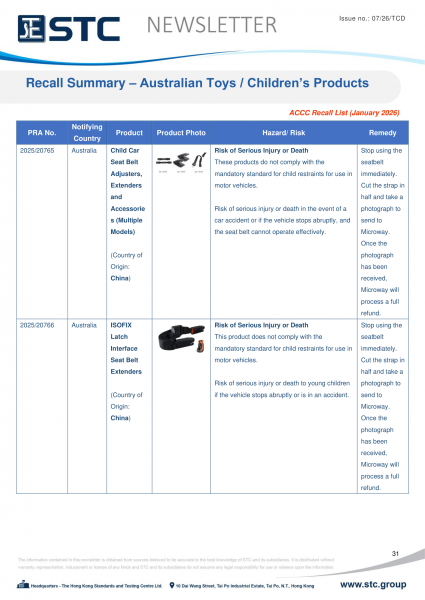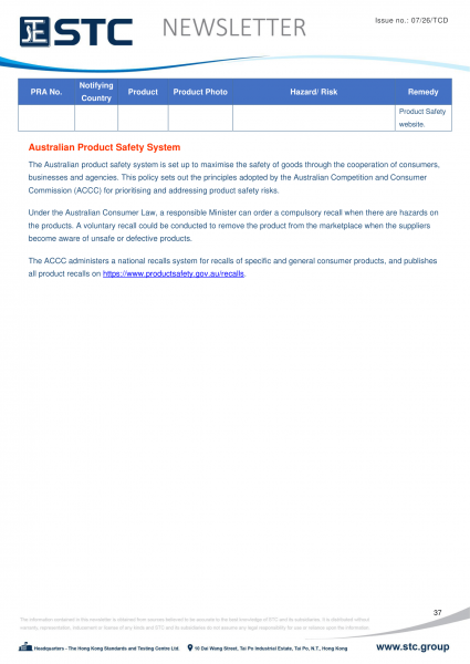 The ACCC administers a national recall system for recalls of specific and general consumer products, and publishes all product recalls on https://www.productsafety.gov.au/recalls.