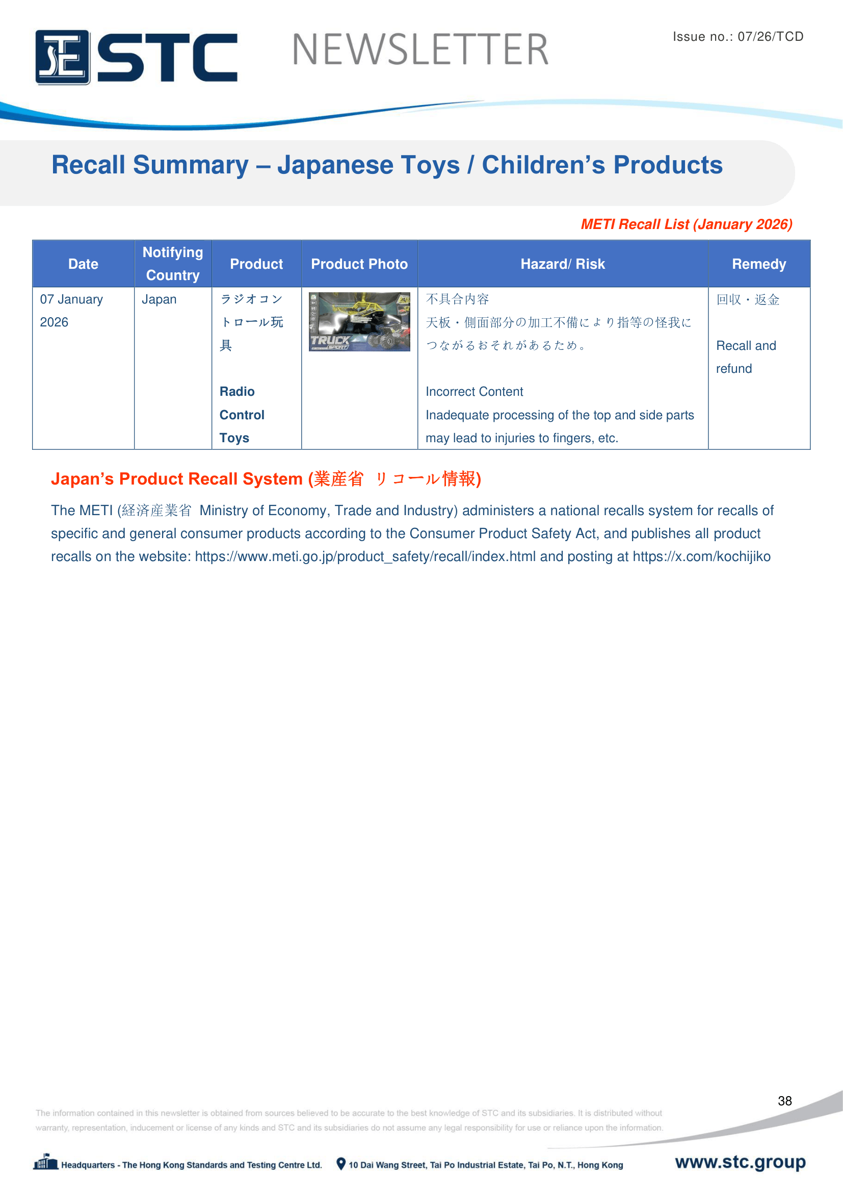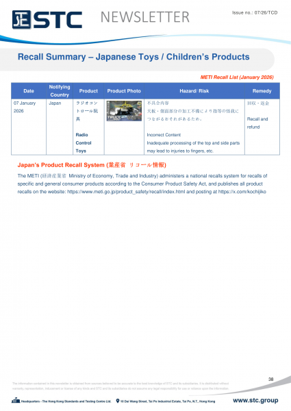 The METI (経済産業省Ministry of Economy, Trade and Industry) administers a national recalls system for recalls of specific and general consumer products according to the Consumer Product Safety Act, and publishes all product recalls on the website: https://www.meti.go.jp/product_safety/recall/index.html and posting at https://x.com/kochijiko.