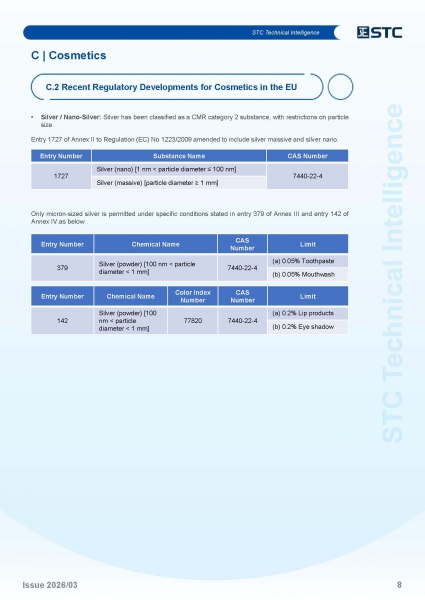 | C.2 | Recent Regulatory Developments for Cosmetics in the EU | P.7 |