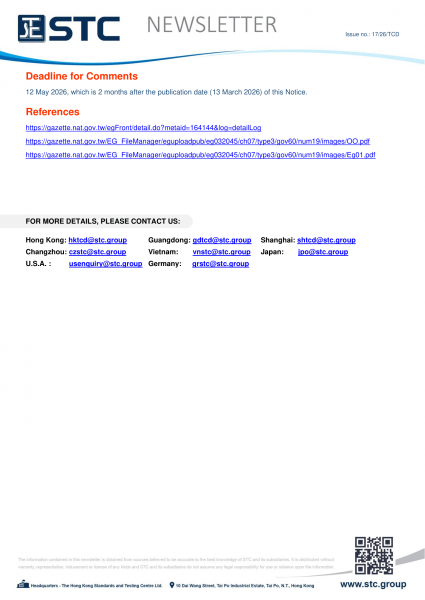 On 13 March 2026, Taiwan's Ministry Of Environment (環境部) proposed draft amendment on partial points and Appendix 1 of Point 2 of the Bulletin of "Restrictions on the Manufacture, Import and Sale of Dry Cell Batteries" (預告「限制乾電池製造、輸入及販賣」部分公告事項及第2項附表1修正草案) in accordance with the "Waste Disposal Act (廢棄物清理法)" Clause 21.