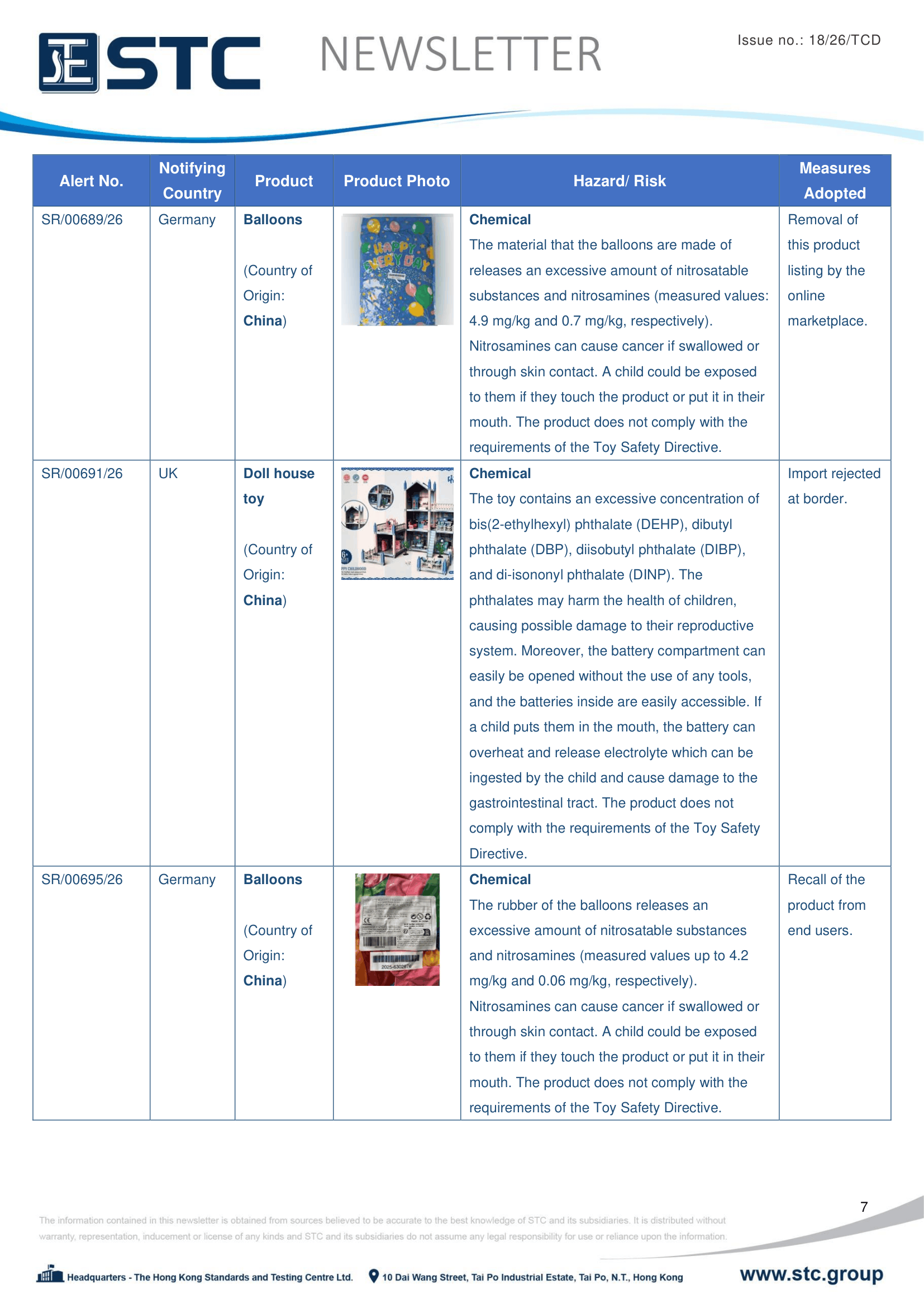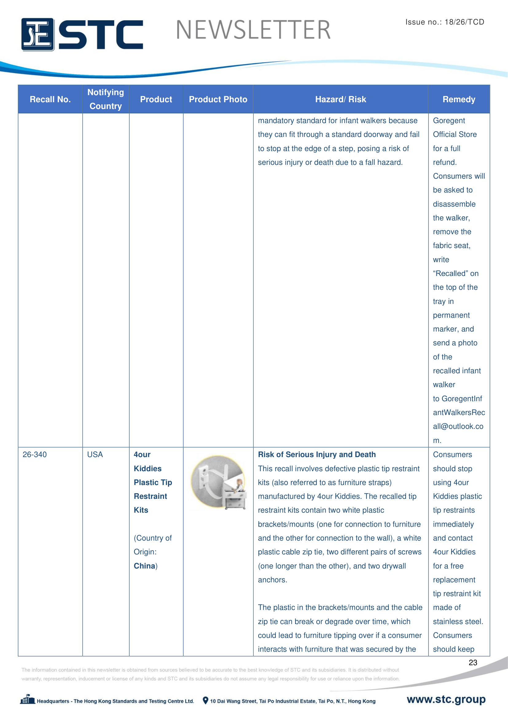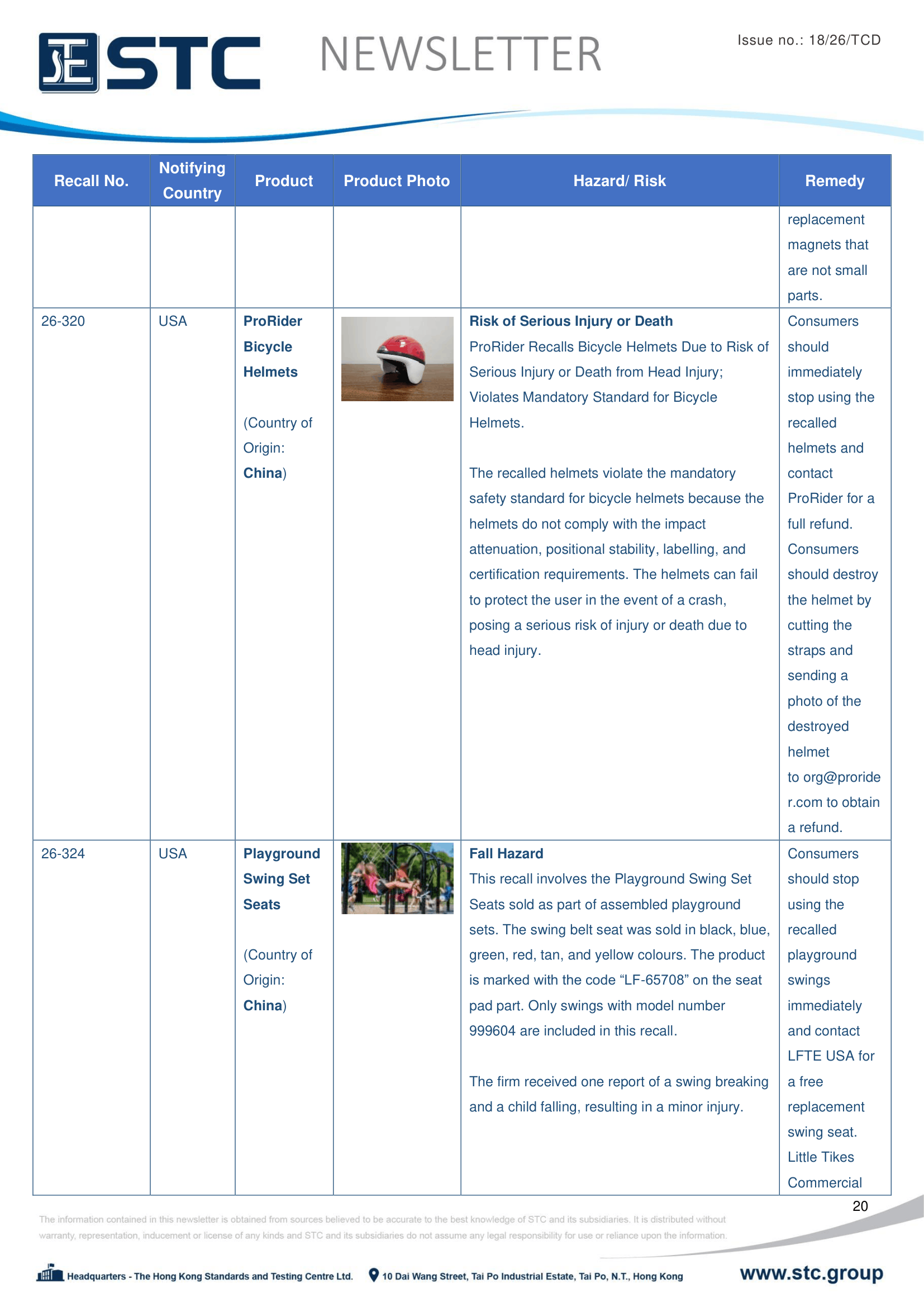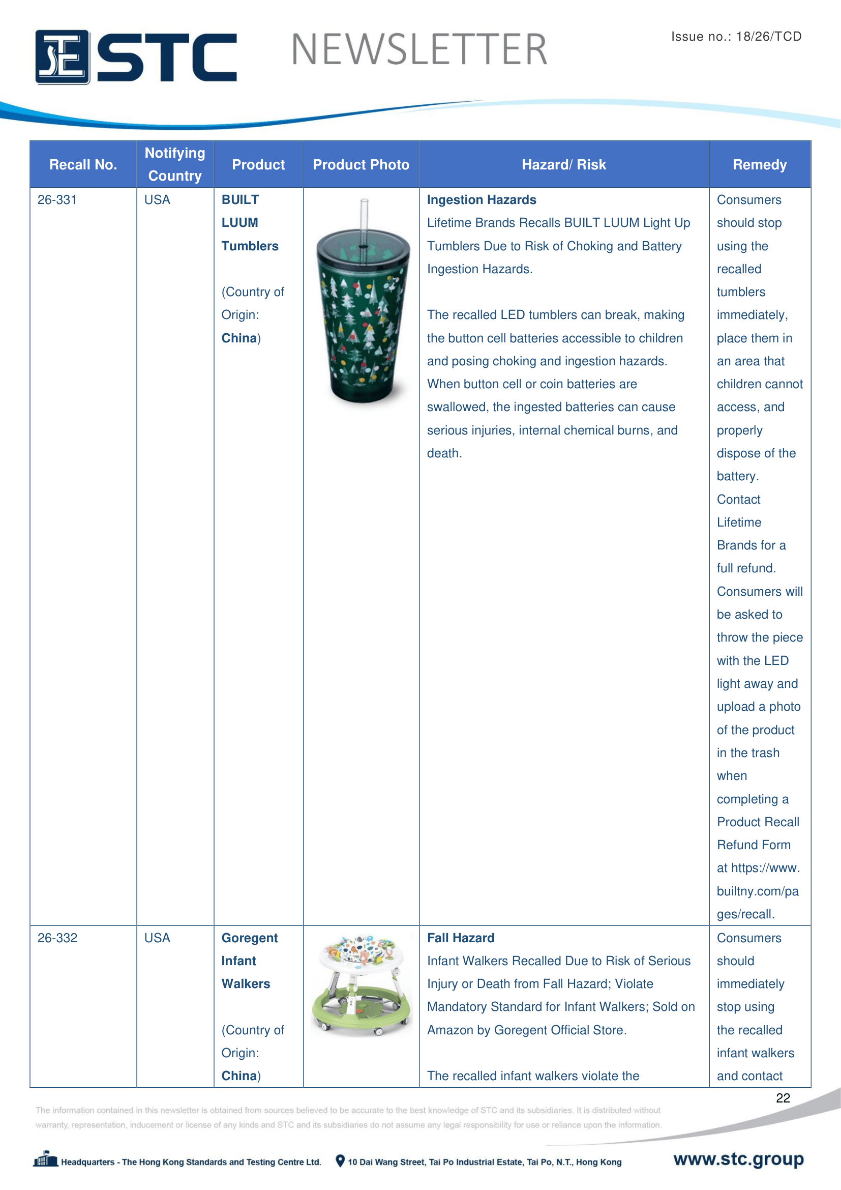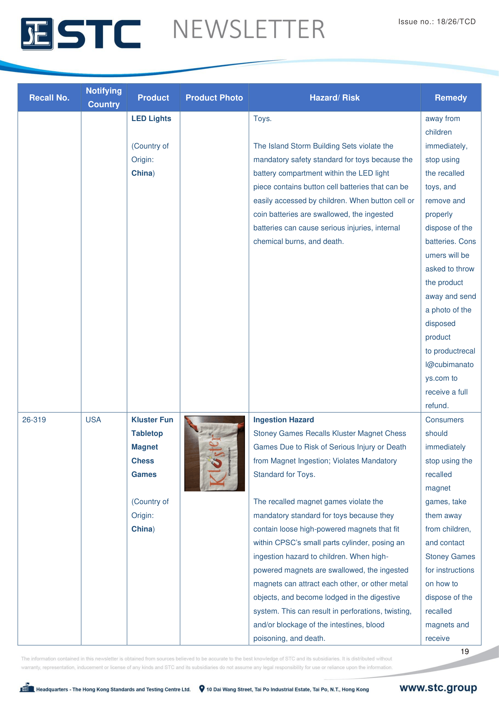 The official contact points of the Member and EFTA-EEA States provide the information published in these weekly overviews. Under the terms of Annex II.10 of the General Product Safety Directive (2001/95/EC) responsibility for the information provided lies with the notifying party. The Commission does not take any responsibility for the accuracy of the information provided.