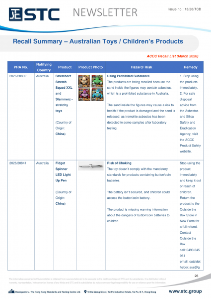 The ACCC administers a national recall system for recalls of specific and general consumer products, and publishes all product recalls on https://www.productsafety.gov.au/recalls.