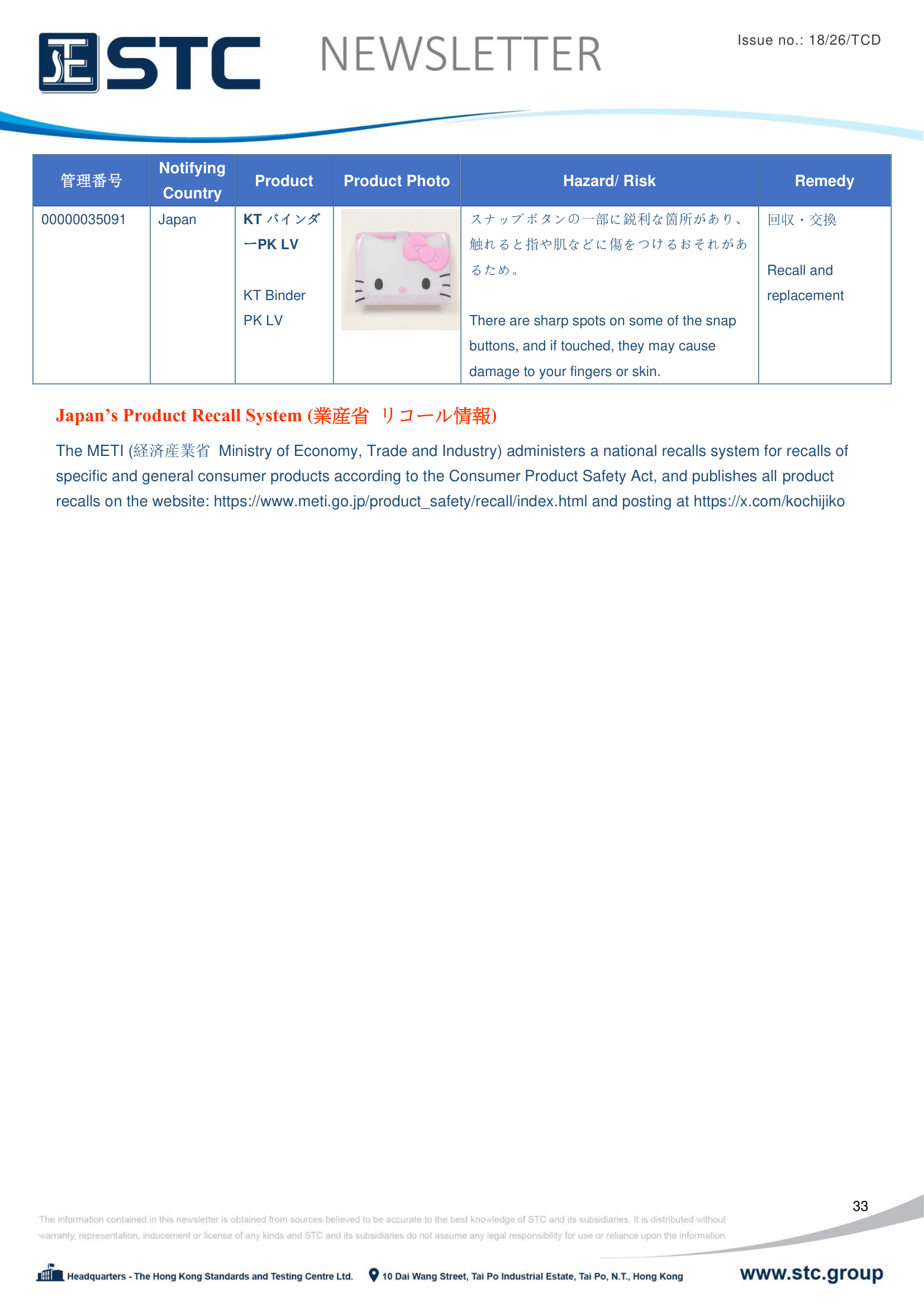 Japan’s Product Recall System ( 業産省 リコール情報)