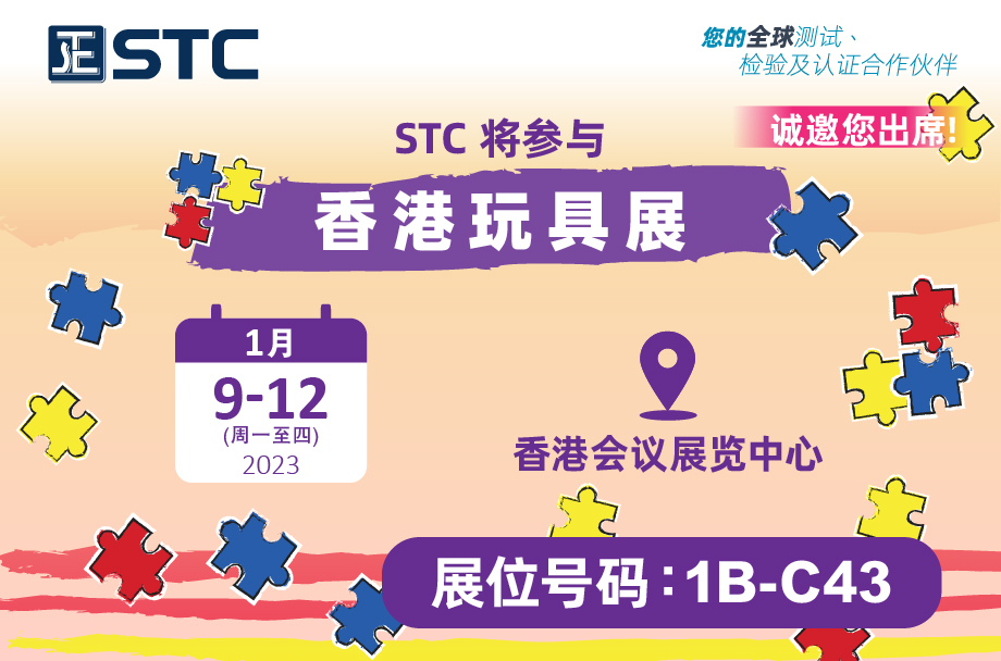 STC (香港标准及检定中心)将参与由香港贸发局主办的香港玩具展。现诚邀阁下出席,取得最新的玩具及儿童产品规例要求,并了解更多 STC 的测试、检验及认证服务。