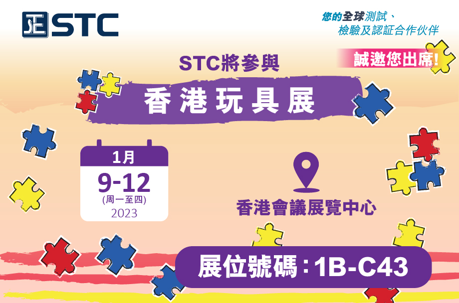 STC (香港標準及檢定中心) 將參與由香港貿發局主辦的香港玩具展。現誠邀閣下出席,取得最新的玩具及兒童產品規例要求,並了解更多 STC 的測試、檢驗及認証服務。