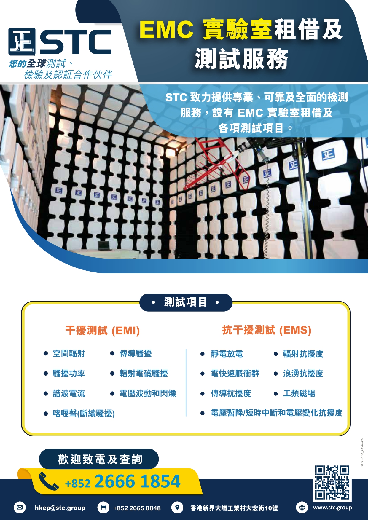 STC致力提供專業、可靠及全面的檢測服務,設有EMC實驗室租借及各項測試服務。