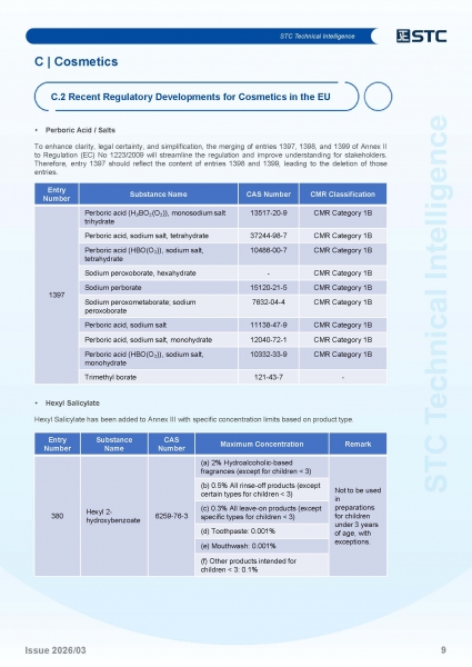 | C.2 | Recent Regulatory Developments for Cosmetics in the EU | P.7 |