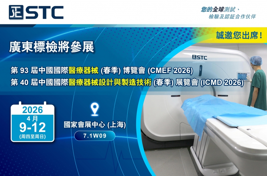 廣東標檢將參展第 93 屆中國國際醫療器械 (春季) 博覽會 (CMEF 2026)第 40 屆中國國際醫療器械設計與製造技術 (春季) 展覽會 (ICMD 2026)2026 年 4 月 9-12 日 (周四至周日) 國家會展中心 (上海)展位:7.1W09