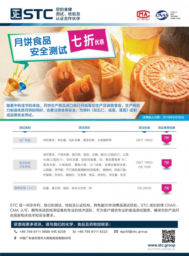 月餅食品安全測試 - 七折優惠