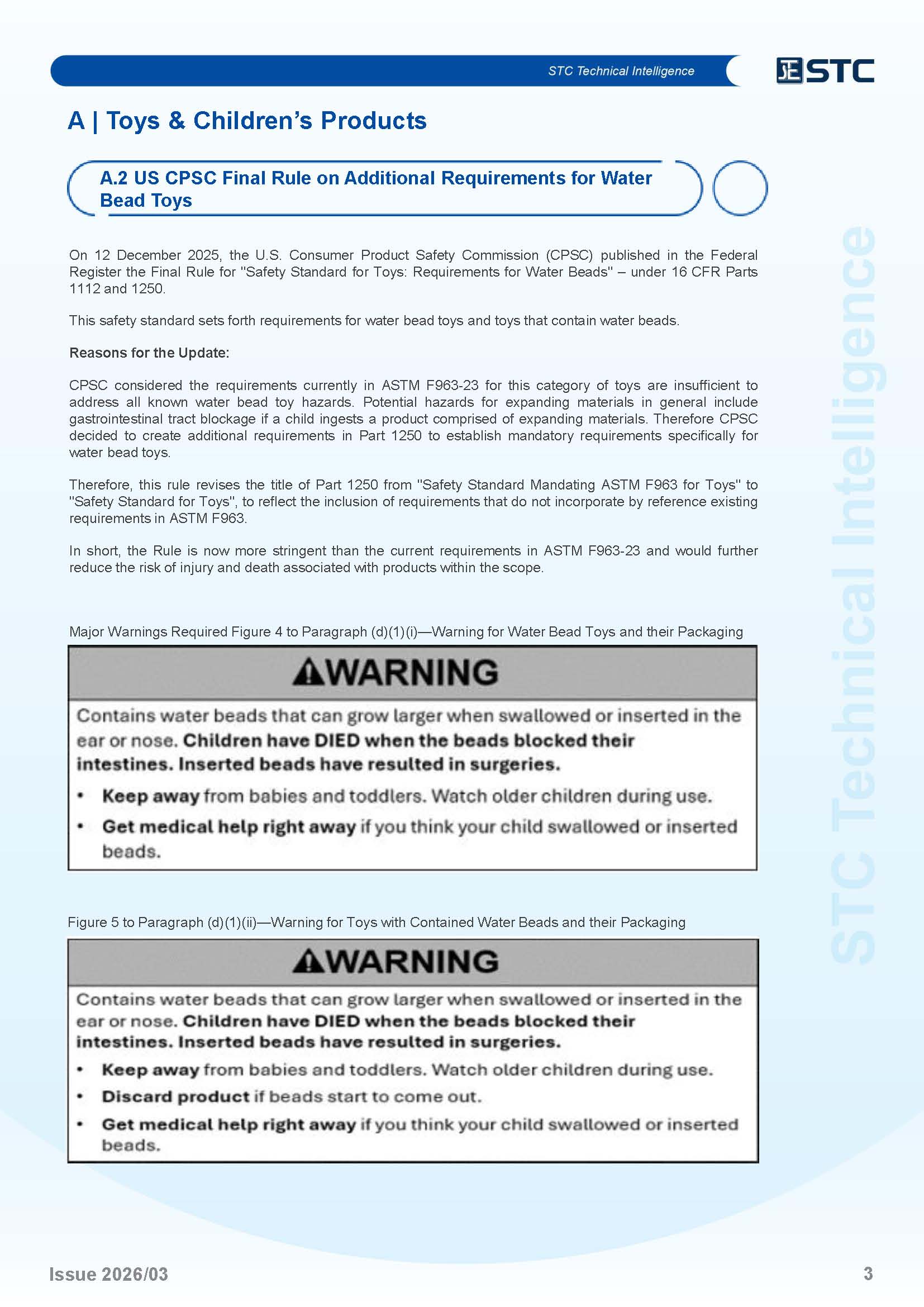 US CPSC Final Rule on Additional Requirements for Water Bead Toys