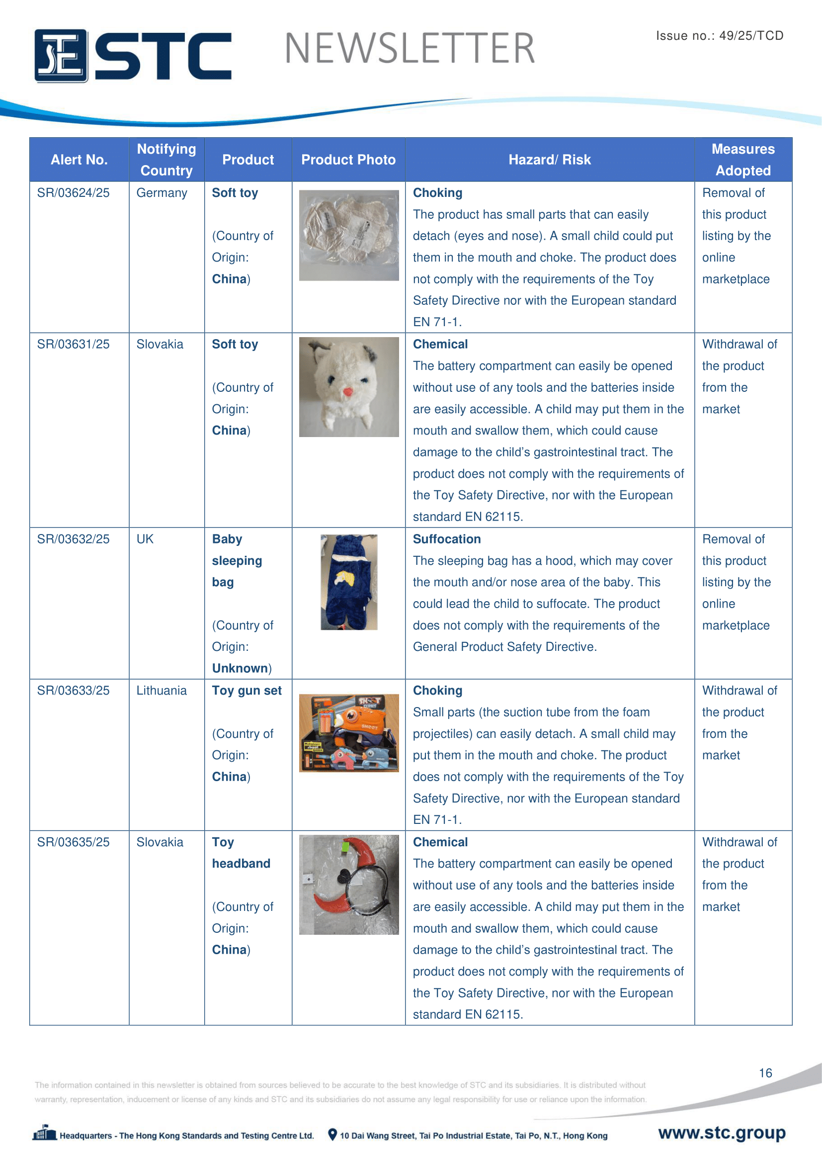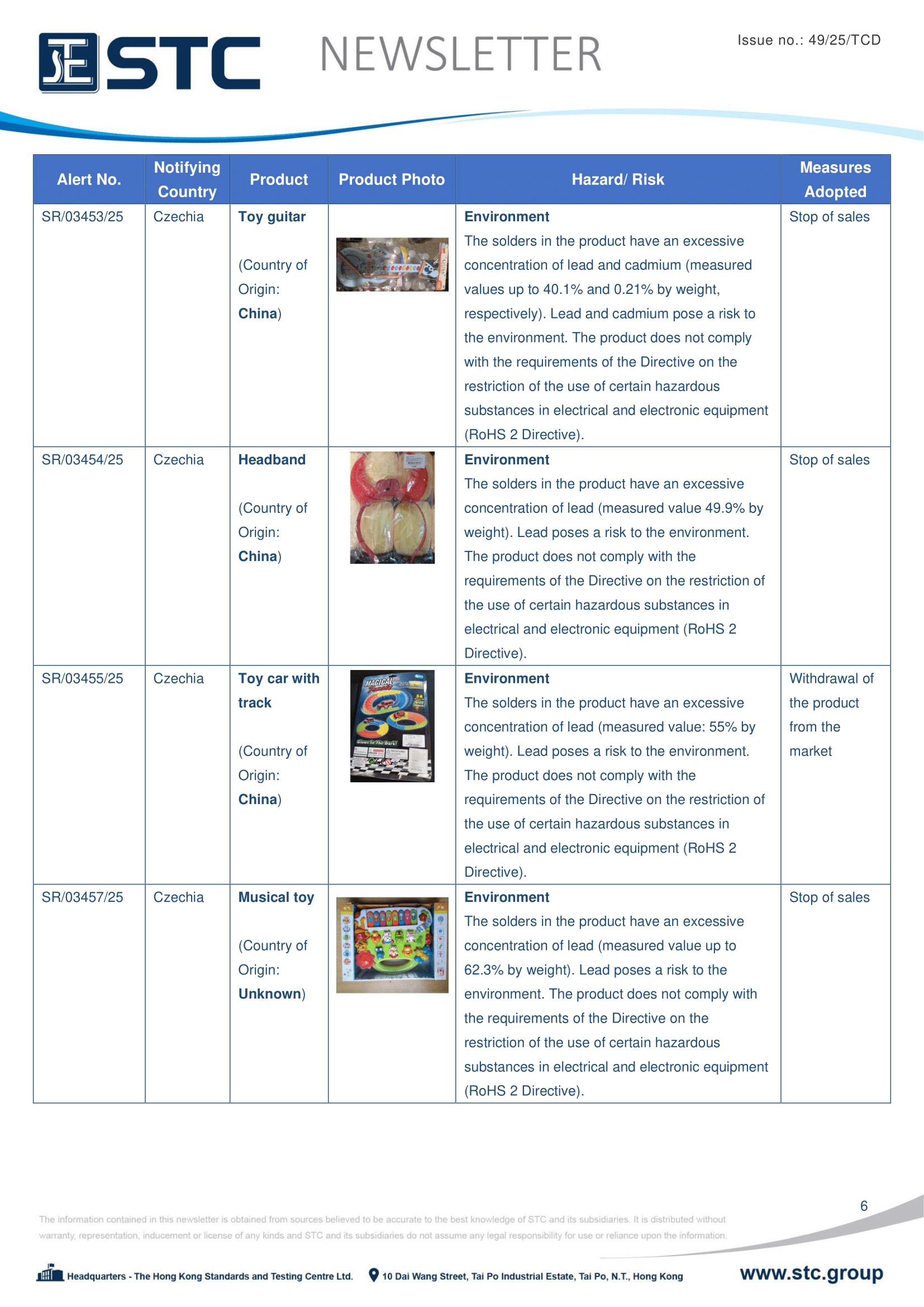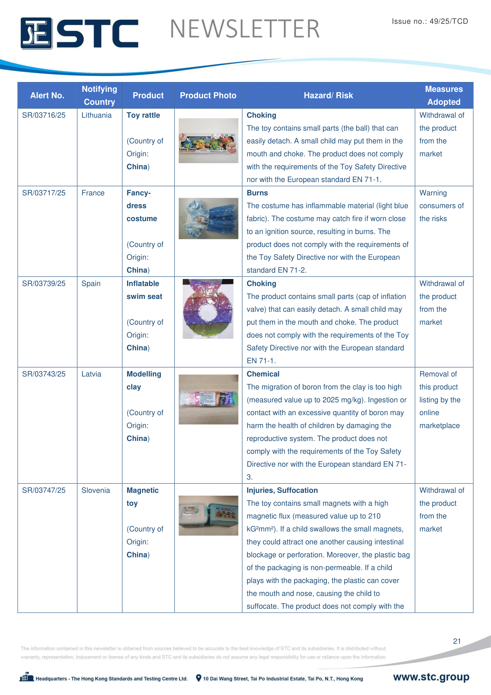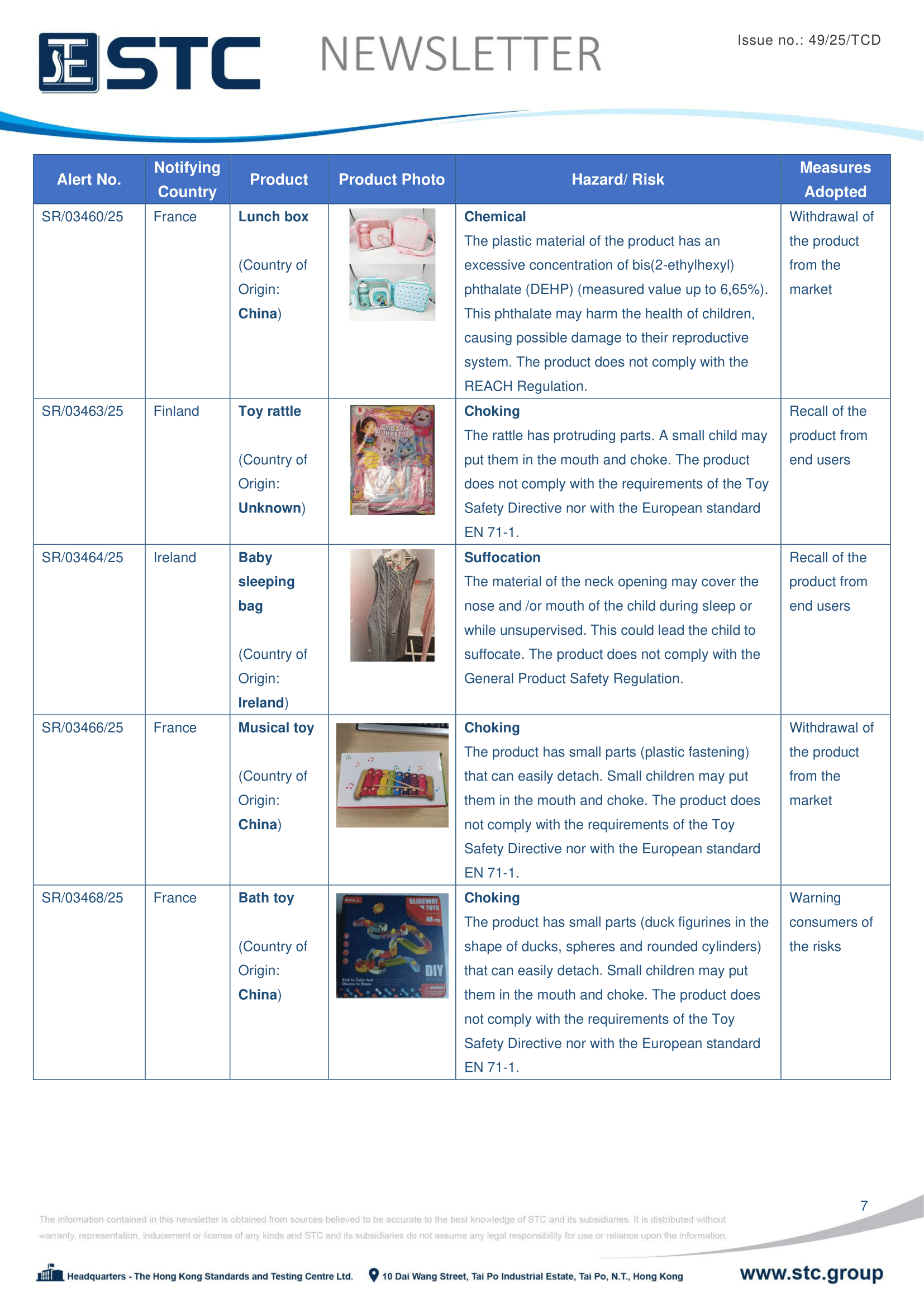 The official contact points of the Member and EFTA-EEA States provide the information published in these weekly overviews. Under the terms of Annex II.10 of the General Product Safety Directive (2001/95/EC) responsibility for the information provided lies with the notifying party. The Commission does not take any responsibility for the accuracy of the information provided.