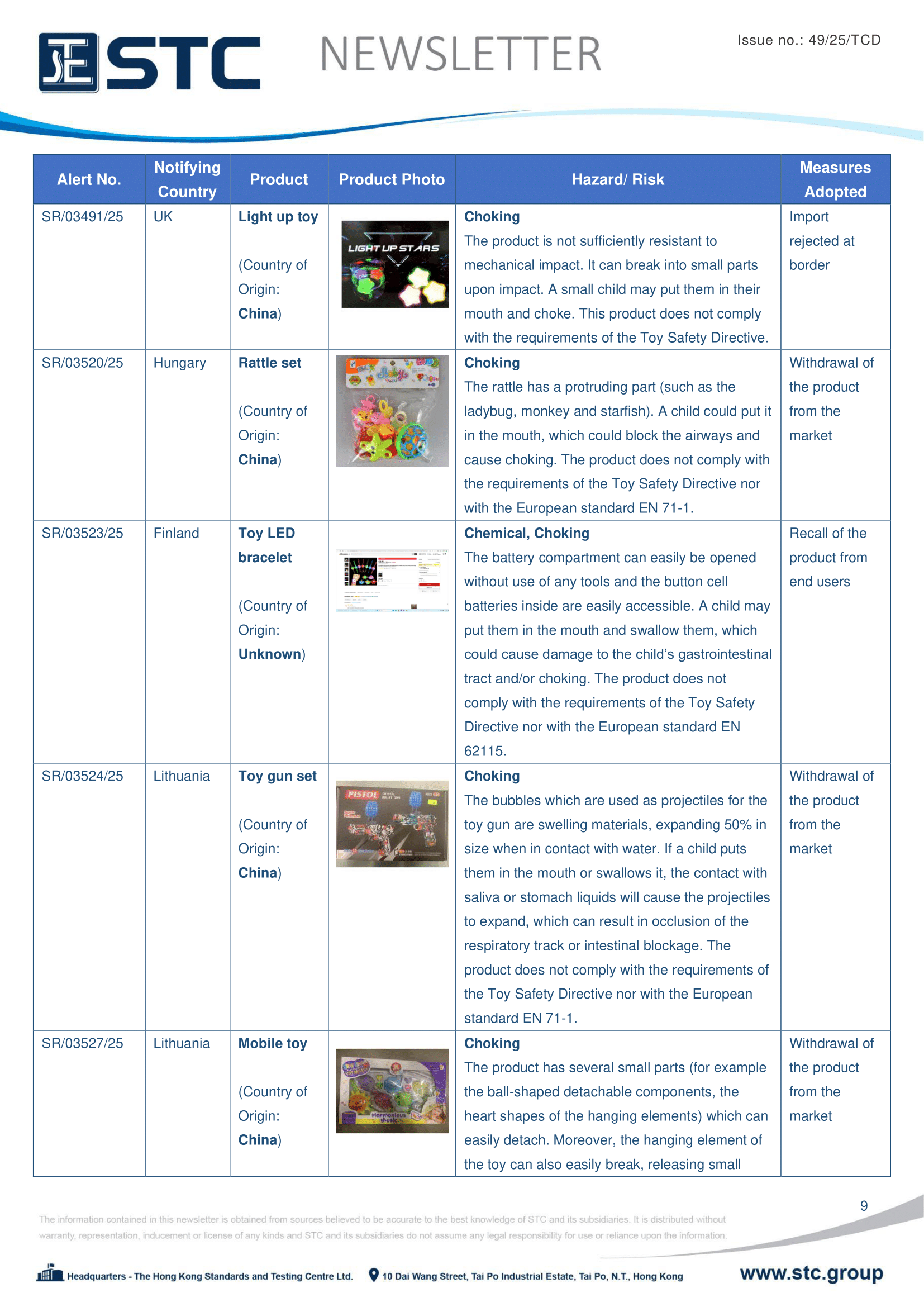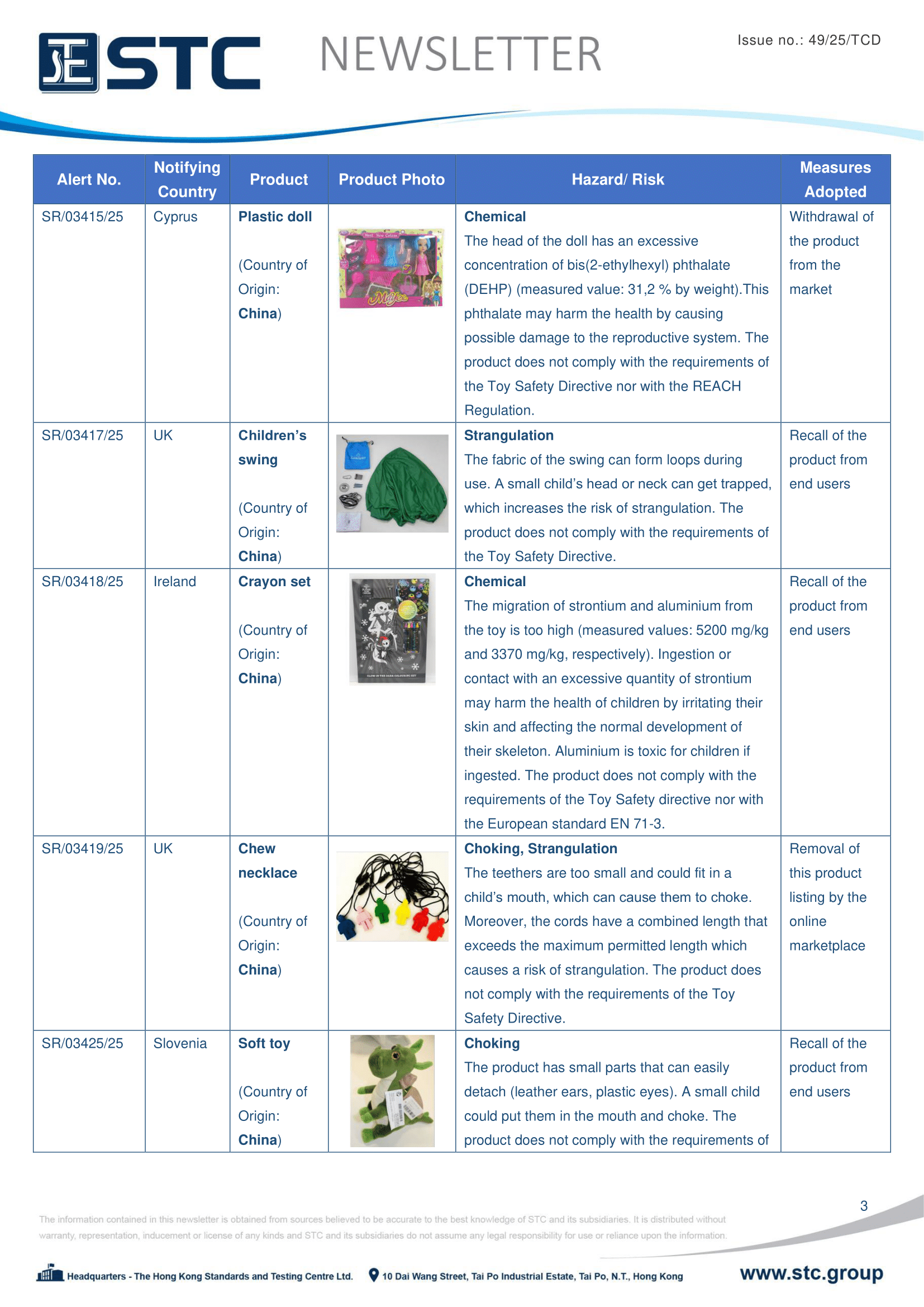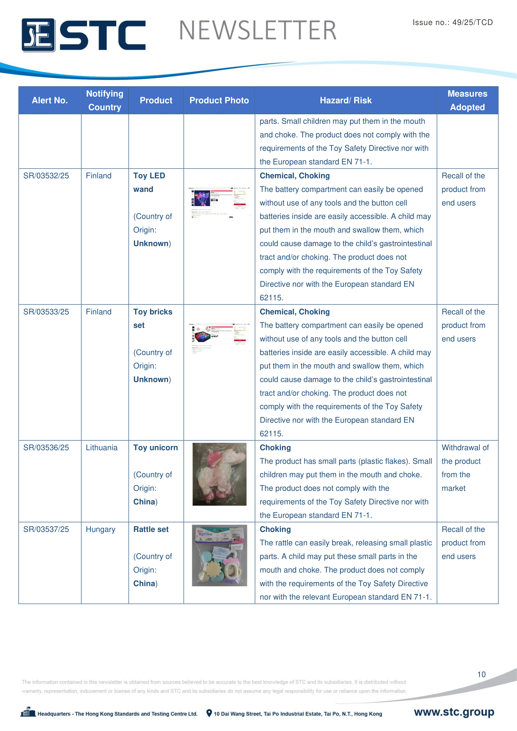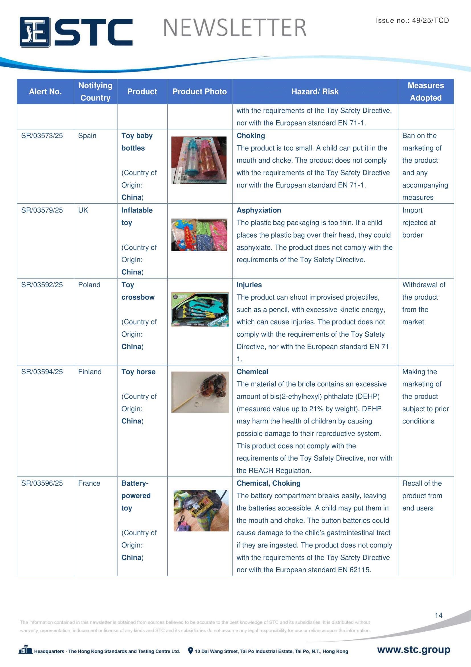 The official contact points of the Member and EFTA-EEA States provide the information published in these weekly overviews. Under the terms of Annex II.10 of the General Product Safety Directive (2001/95/EC) responsibility for the information provided lies with the notifying party. The Commission does not take any responsibility for the accuracy of the information provided.