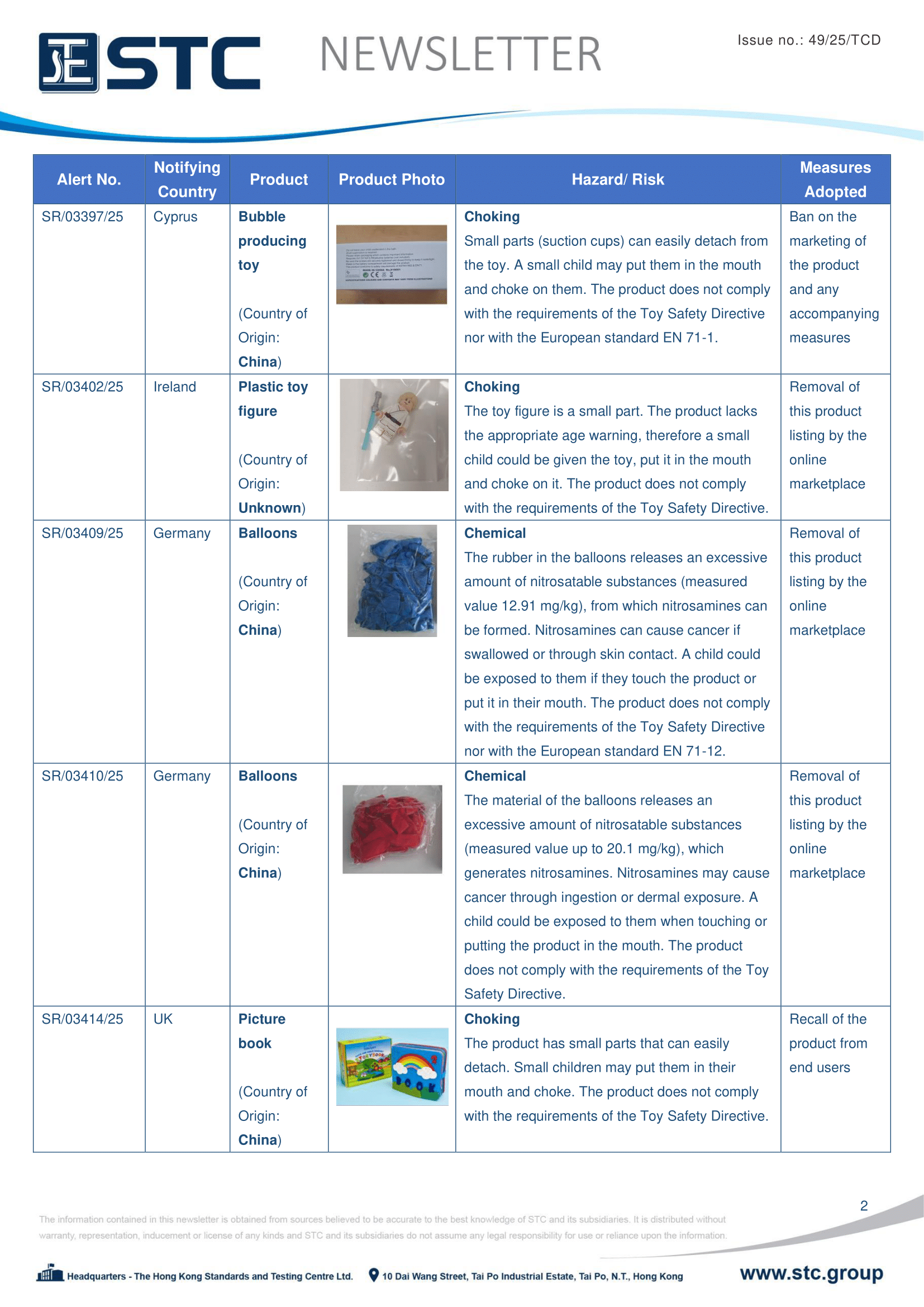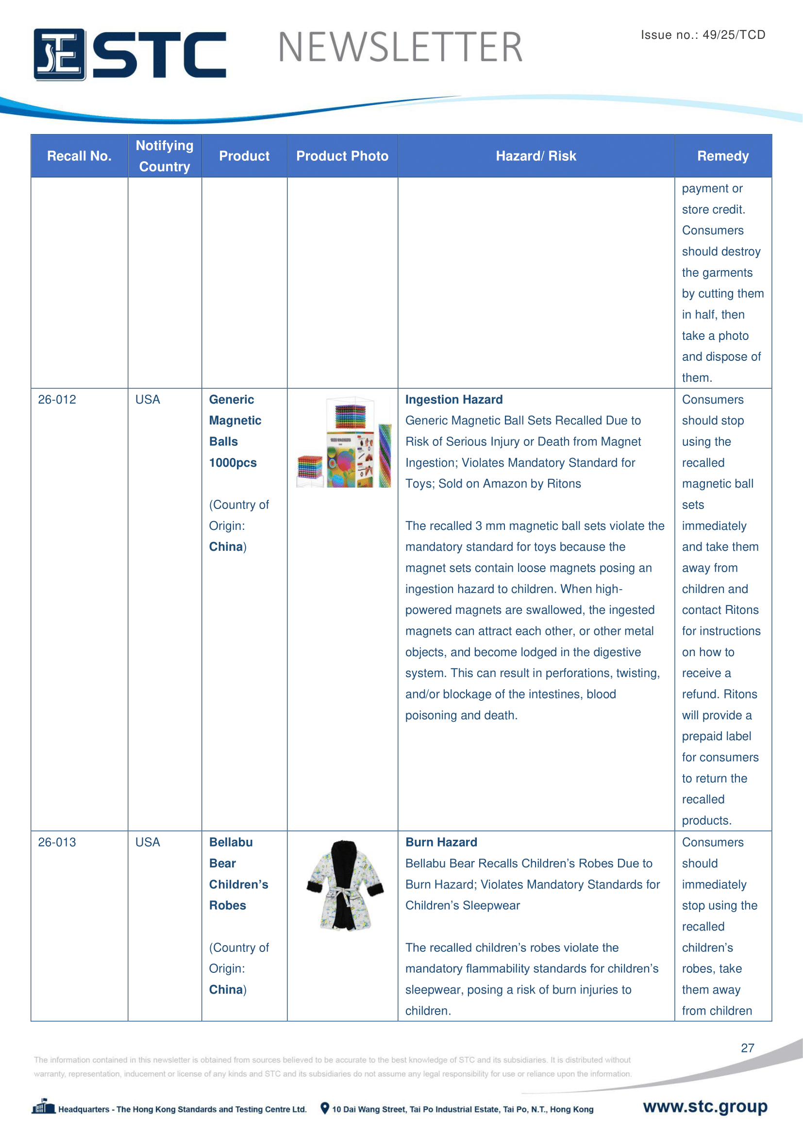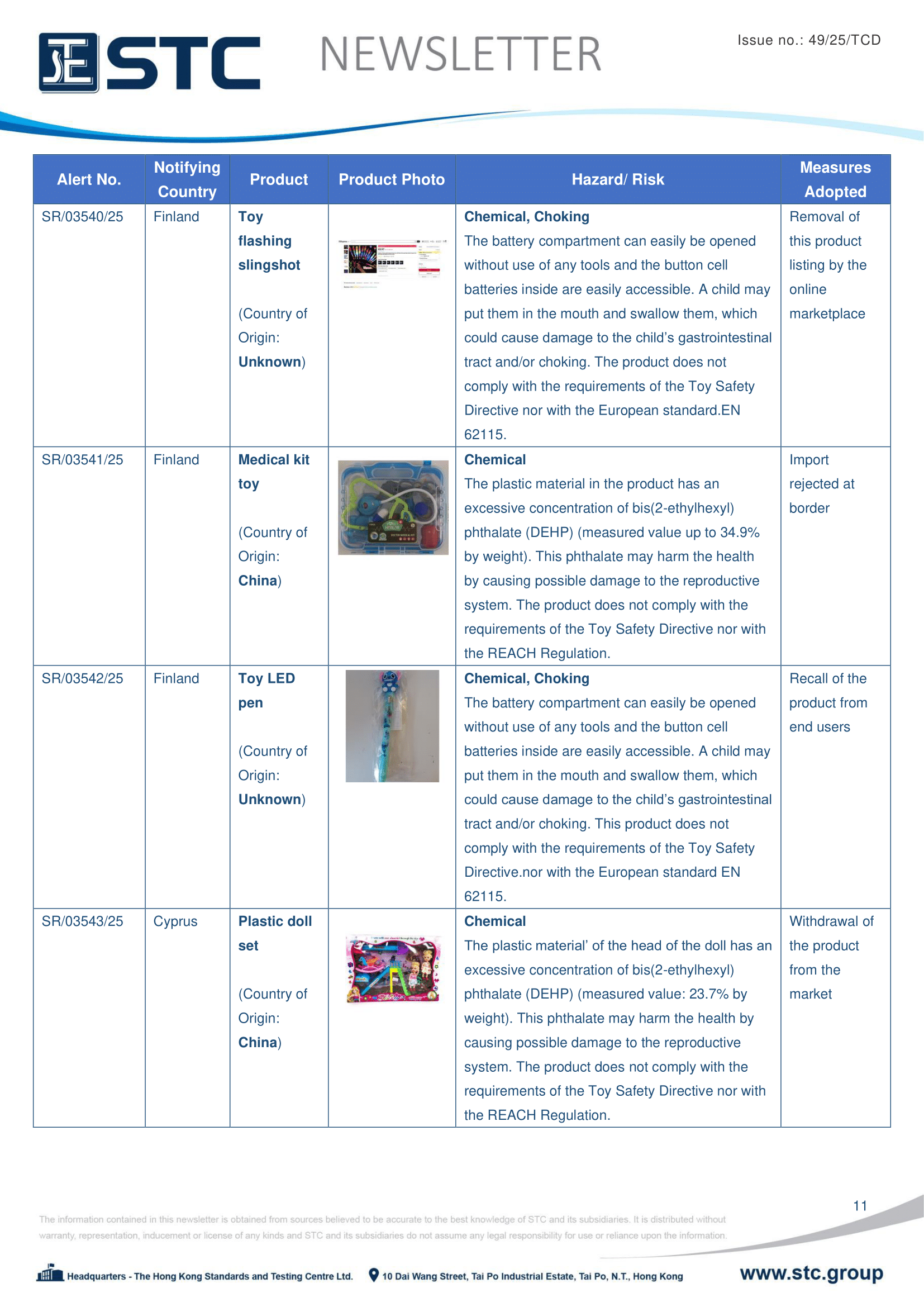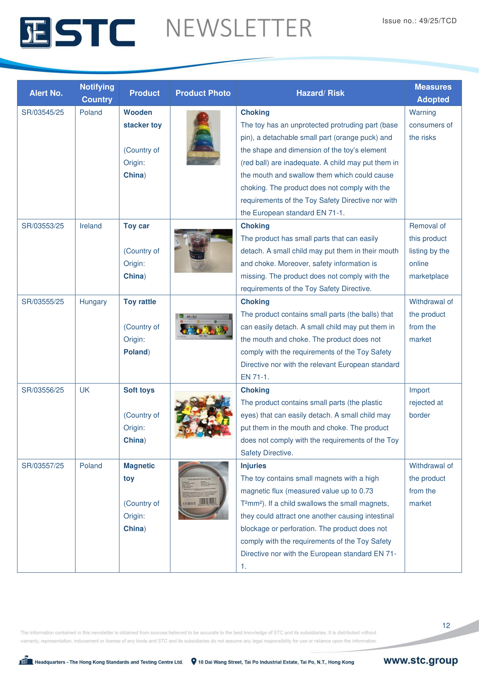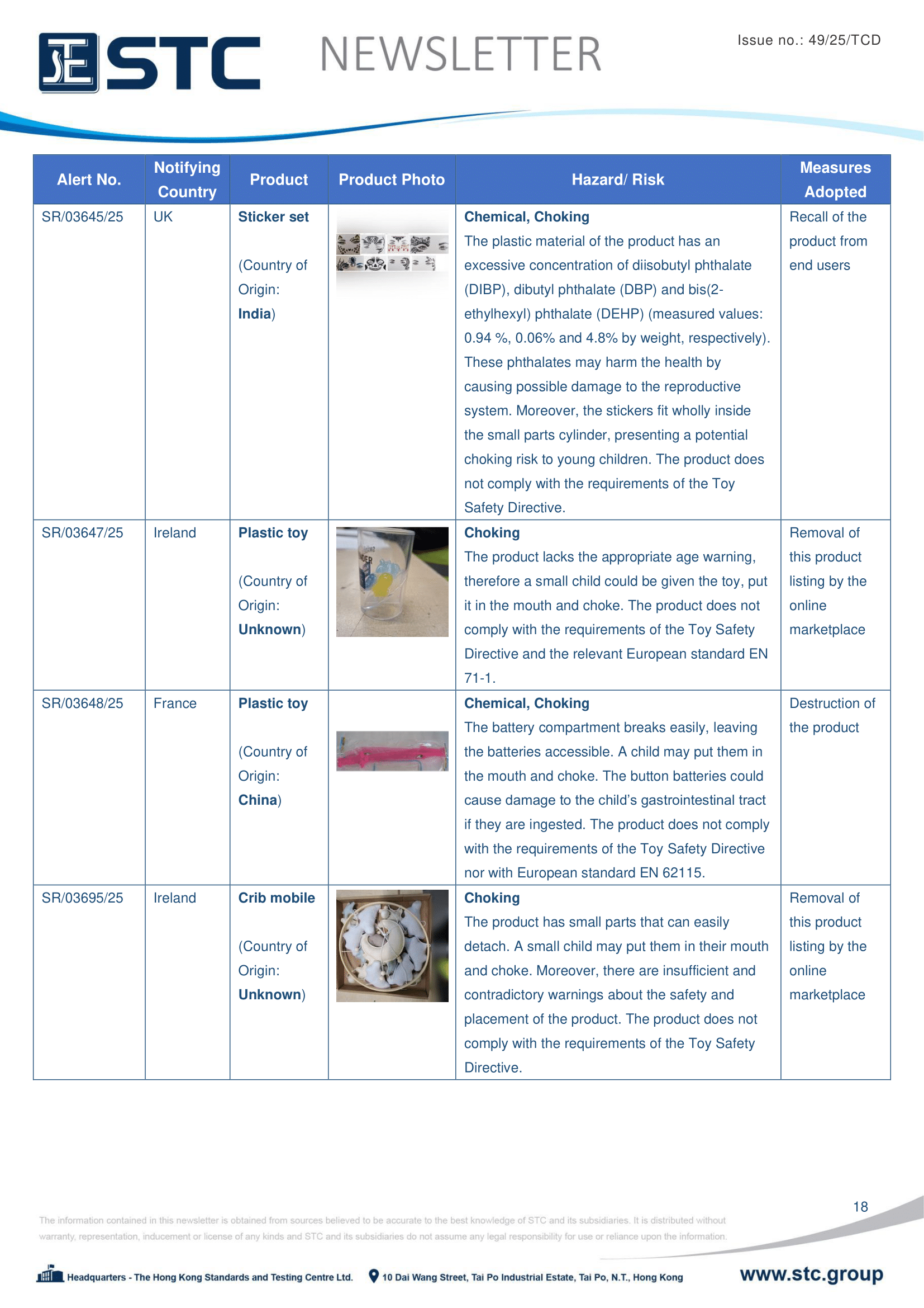 The official contact points of the Member and EFTA-EEA States provide the information published in these weekly overviews. Under the terms of Annex II.10 of the General Product Safety Directive (2001/95/EC) responsibility for the information provided lies with the notifying party. The Commission does not take any responsibility for the accuracy of the information provided.