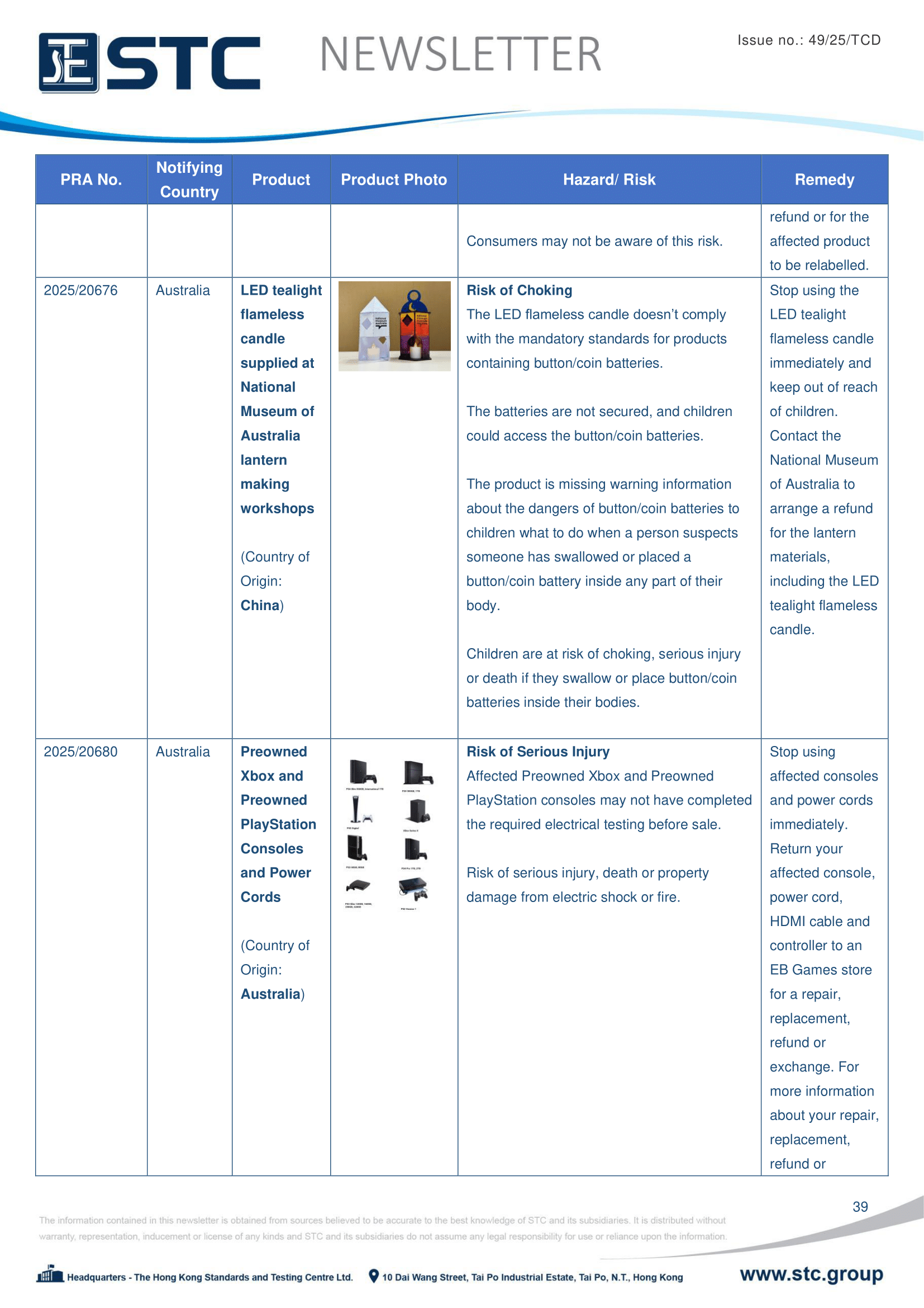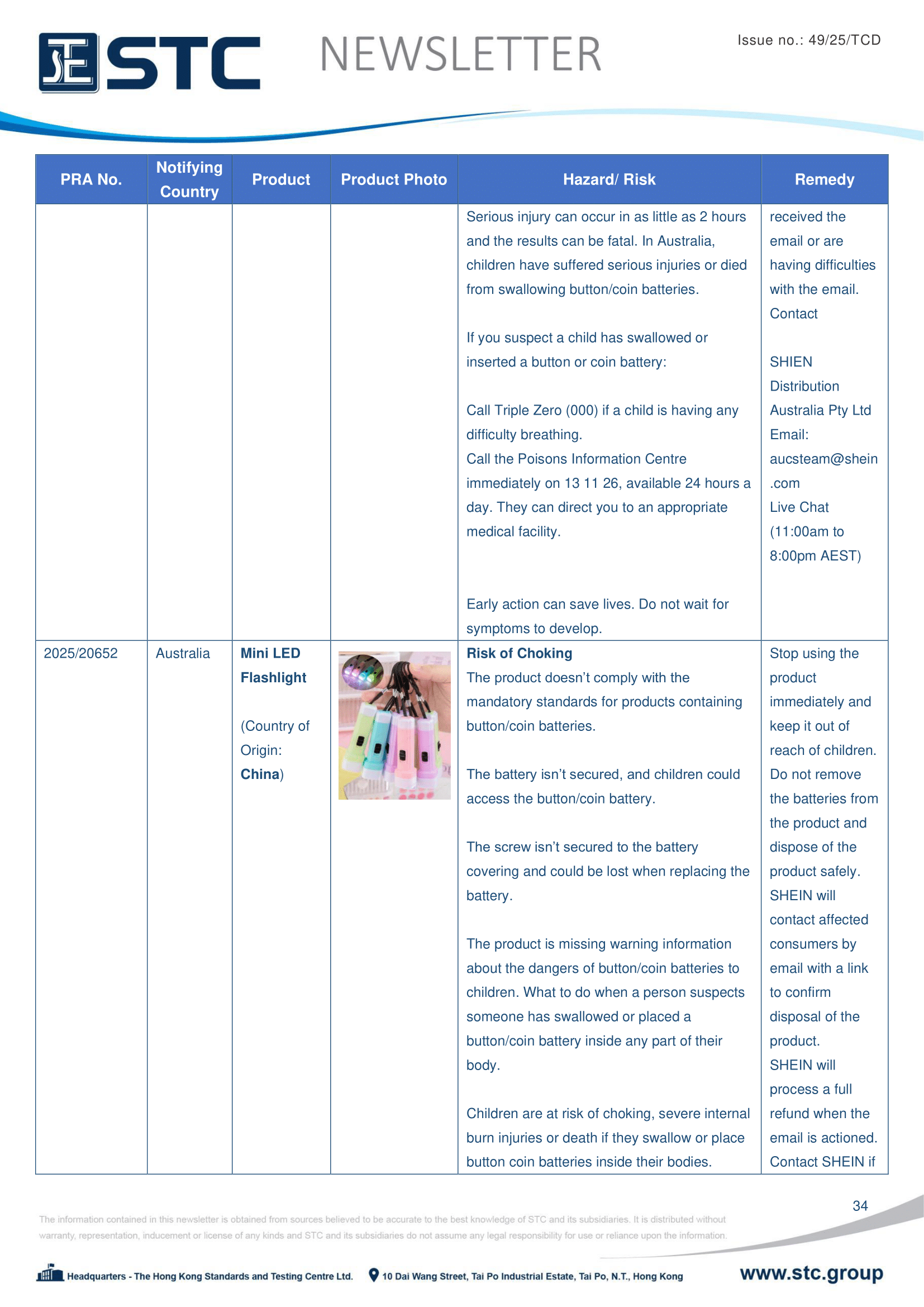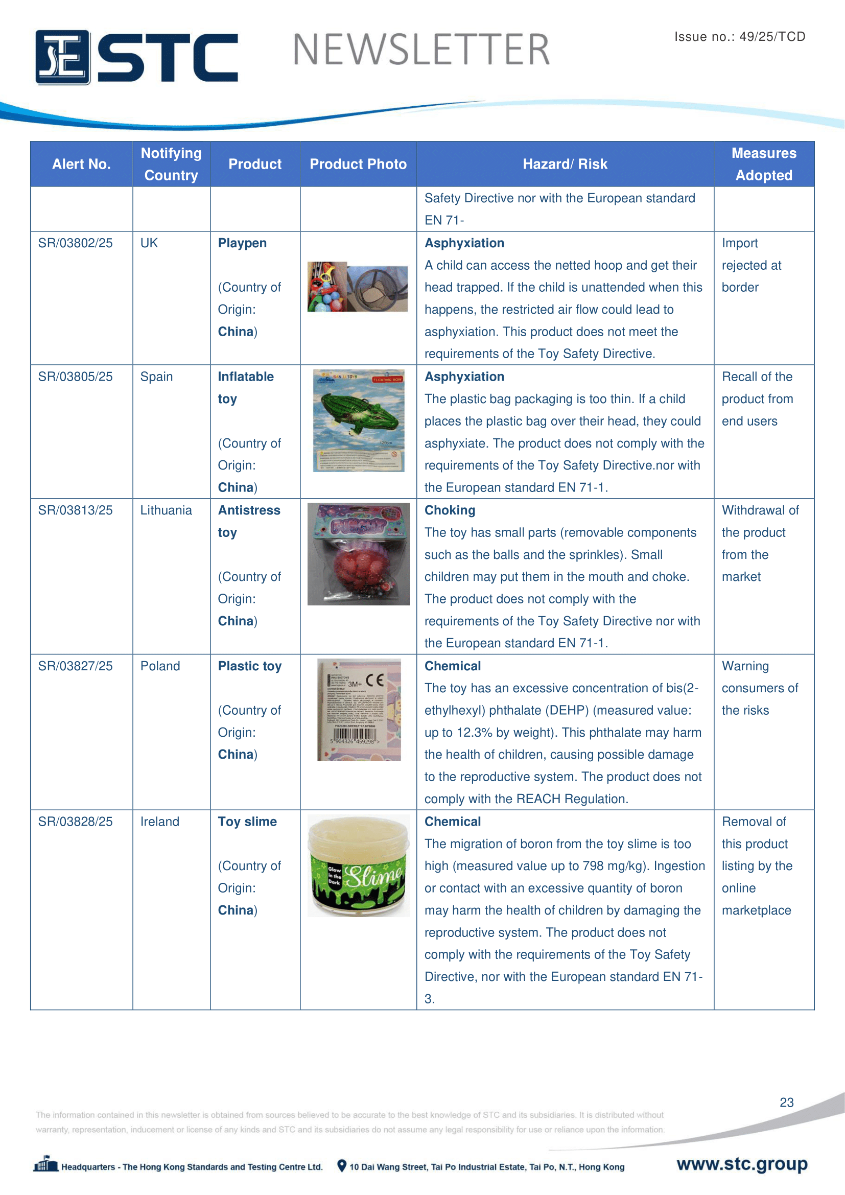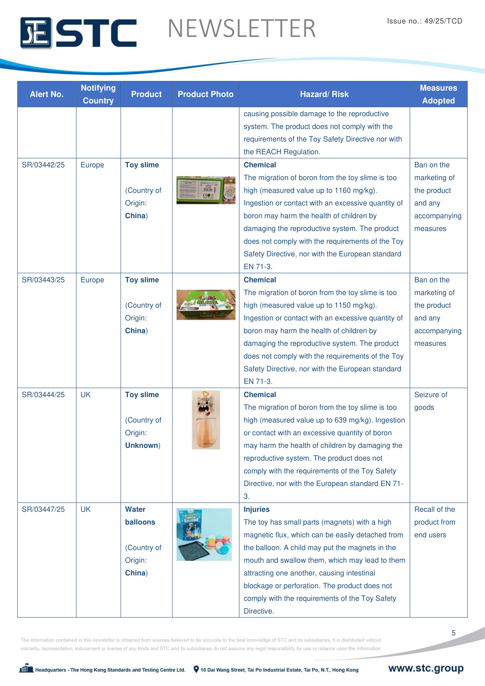 The official contact points of the Member and EFTA-EEA States provide the information published in these weekly overviews. Under the terms of Annex II.10 of the General Product Safety Directive (2001/95/EC) responsibility for the information provided lies with the notifying party. The Commission does not take any responsibility for the accuracy of the information provided.
