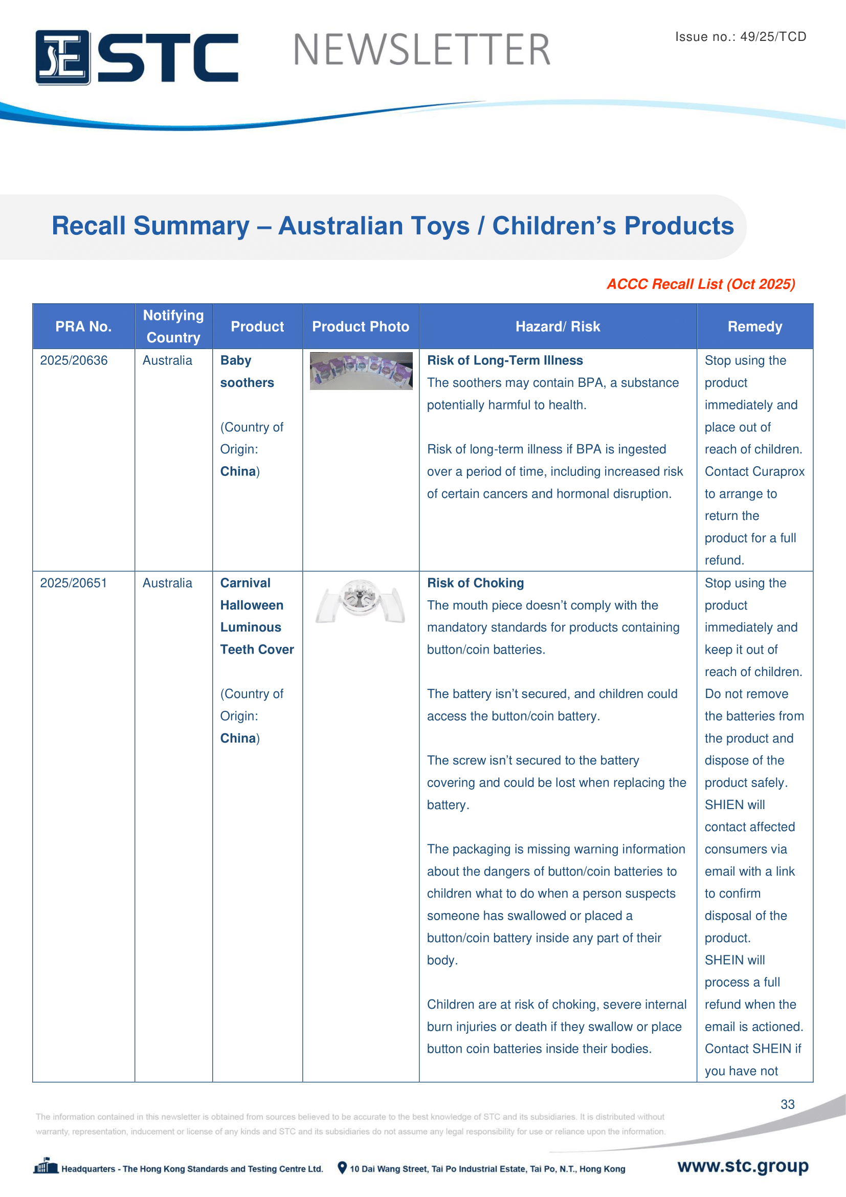 The ACCC administers a national recall system for recalls of specific and general consumer products, and publishes all product recalls on https://www.productsafety.gov.au/recalls.