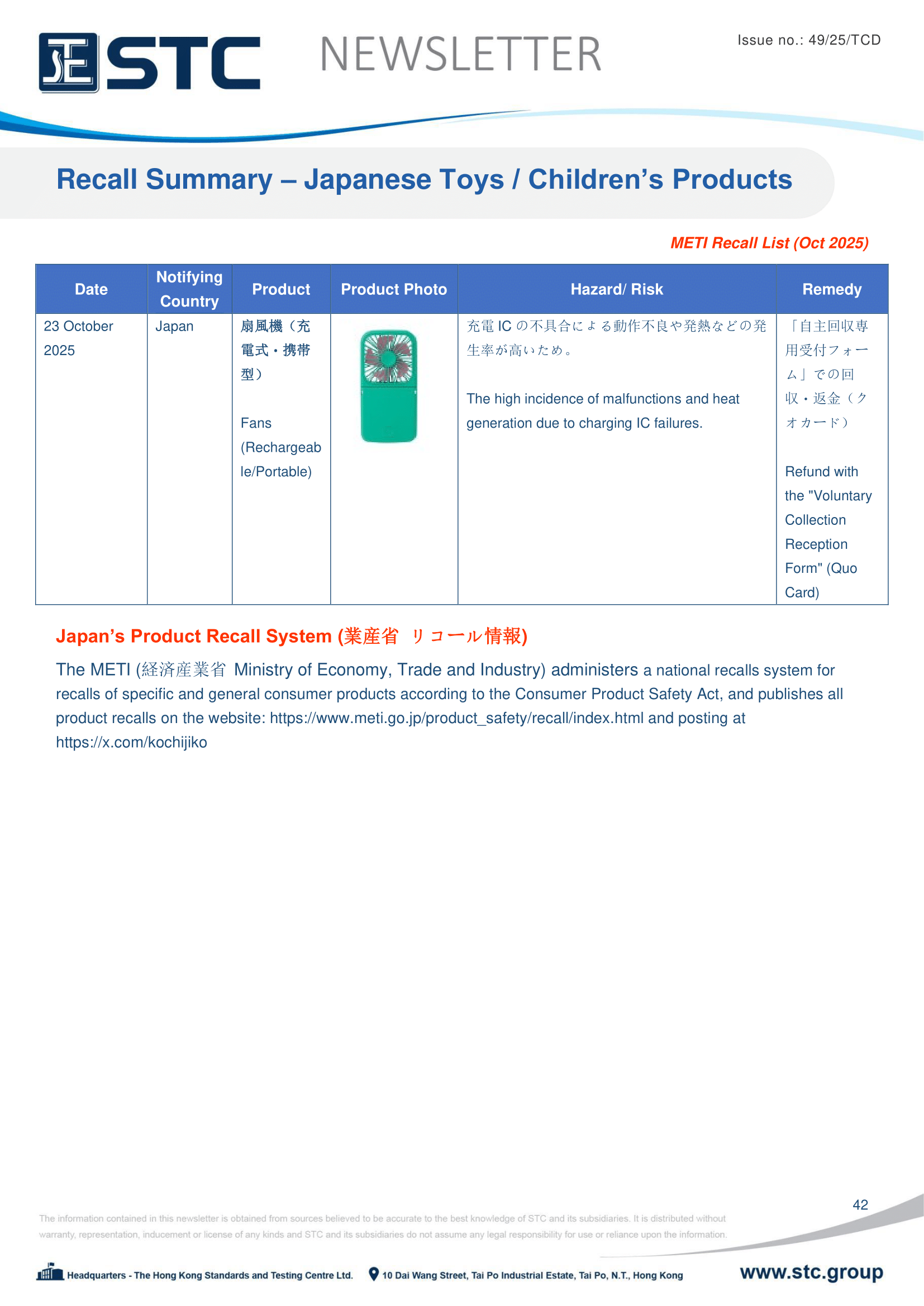 The METI (経済産業省Ministry of Economy, Trade and Industry) administers a national recalls system for recalls of specific and general consumer products according to the Consumer Product Safety Act, and publishes all product recalls on the website: https://www.meti.go.jp/product_safety/recall/index.html and posting at https://x.com/kochijiko.