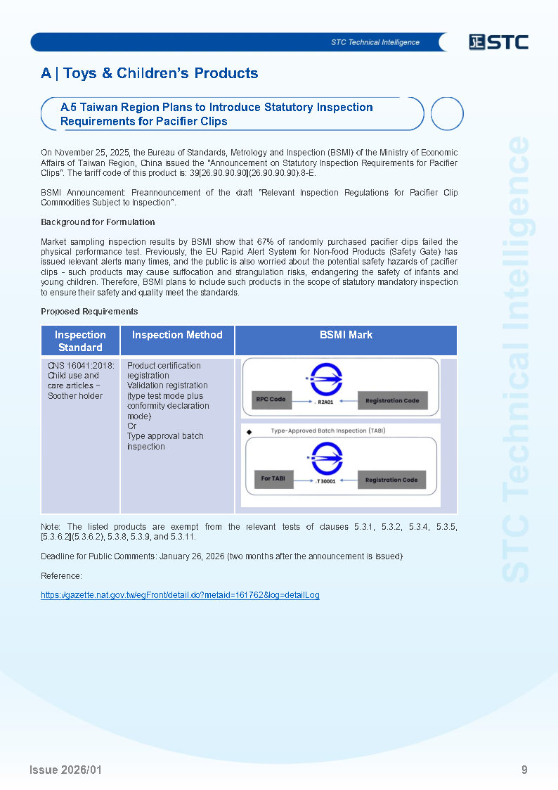 Taiwan Region Plans to Introduce Statutory Inspection Requirements for Pacifier Clips
