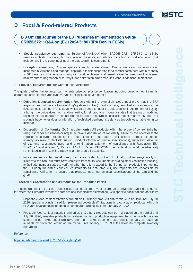 Official Journal of the EU Publishes Implementation Guide C/2025/6721: Q&A on (EU) 2024/3190 (BPA Ban in FCMs)