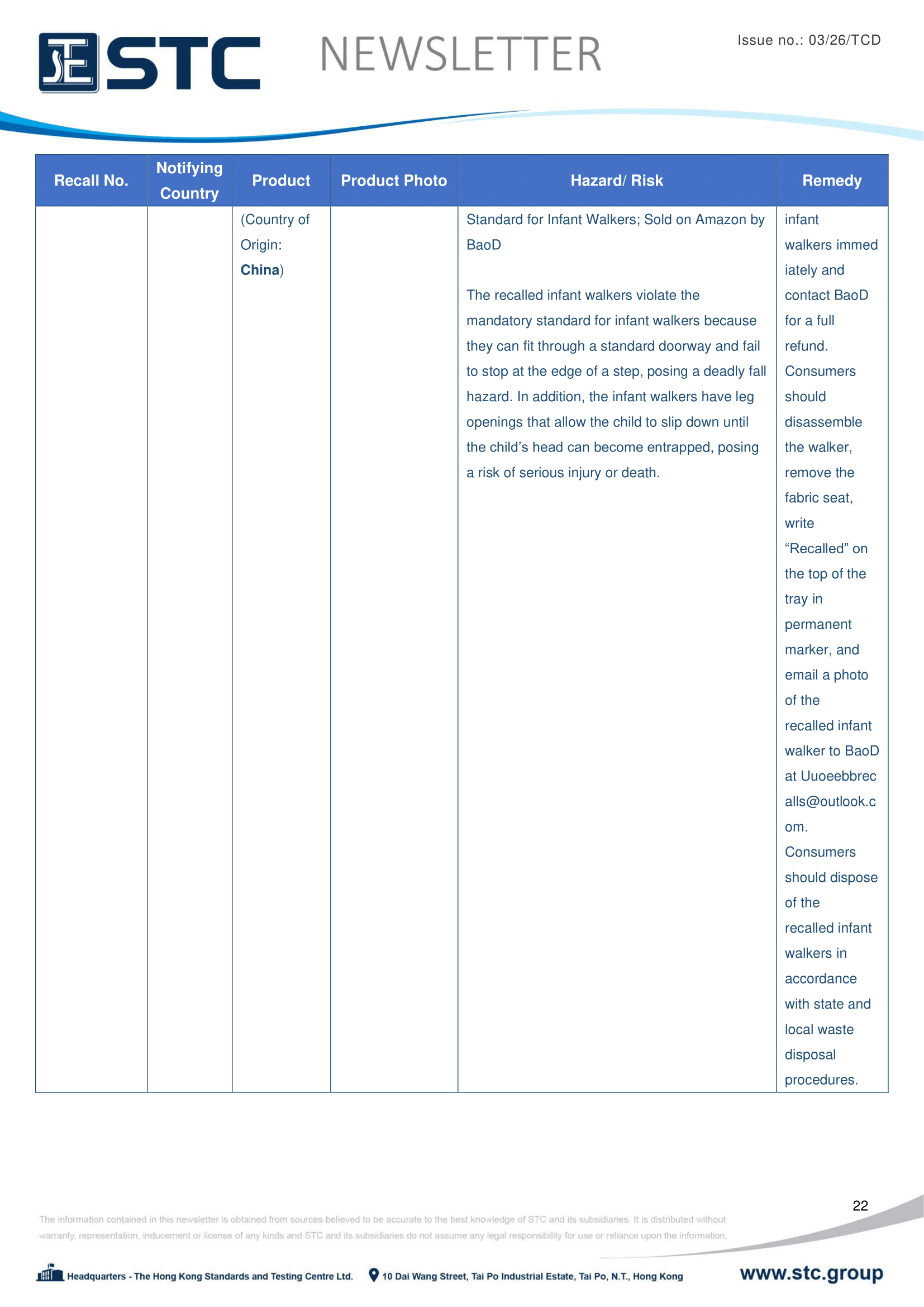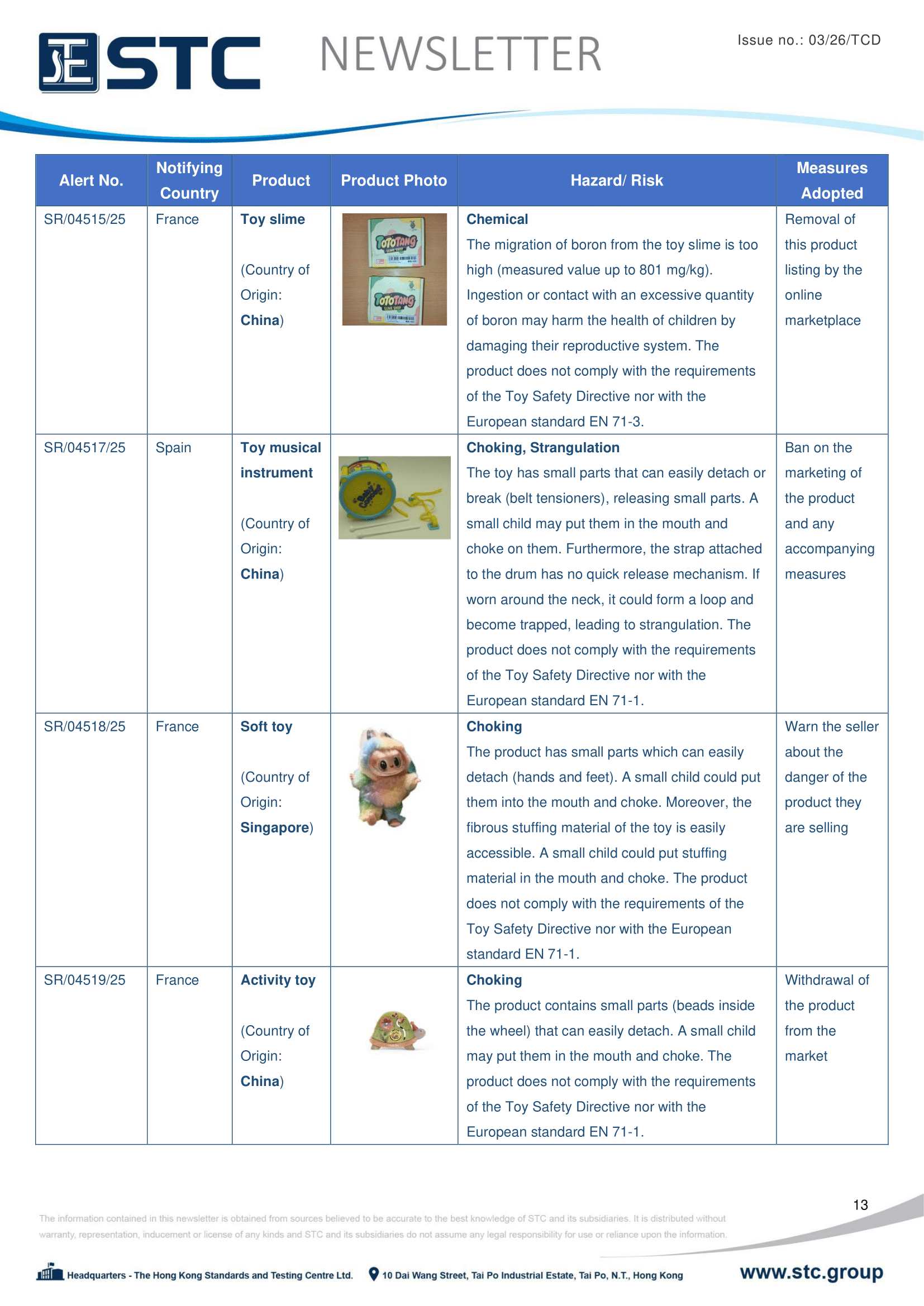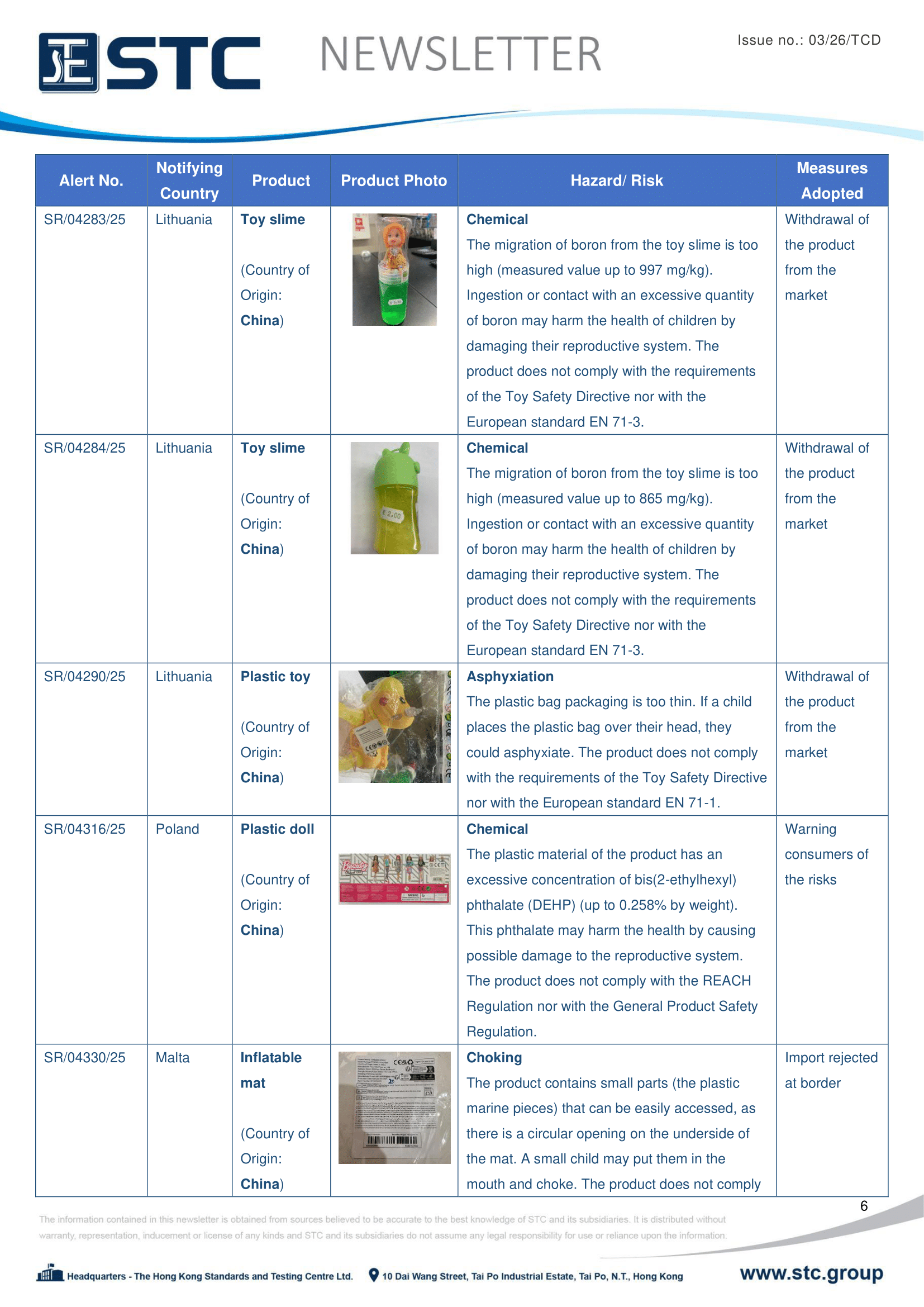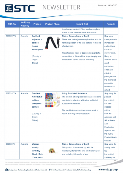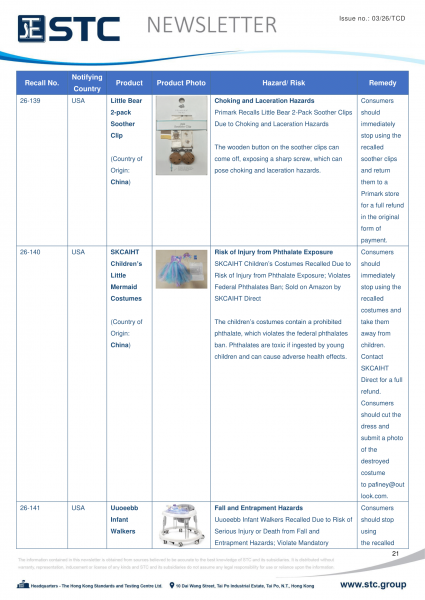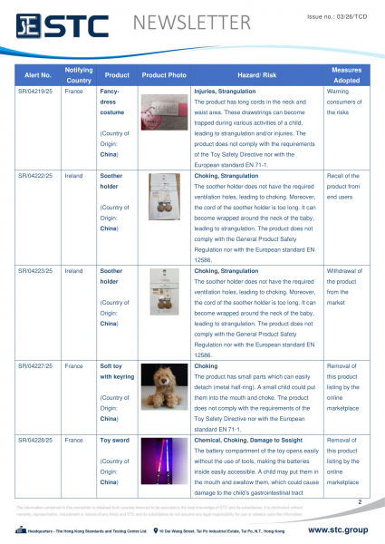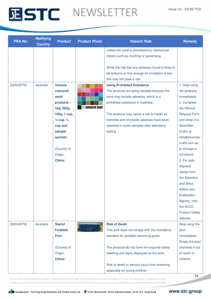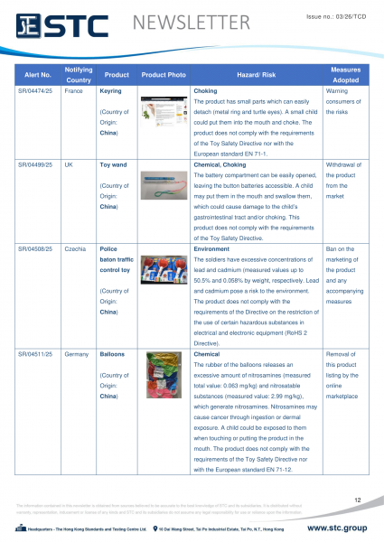 The official contact points of the Member and EFTA-EEA States provide the information published in these weekly overviews. Under the terms of Annex II.10 of the General Product Safety Directive (2001/95/EC) responsibility for the information provided lies with the notifying party. The Commission does not take any responsibility for the accuracy of the information provided.