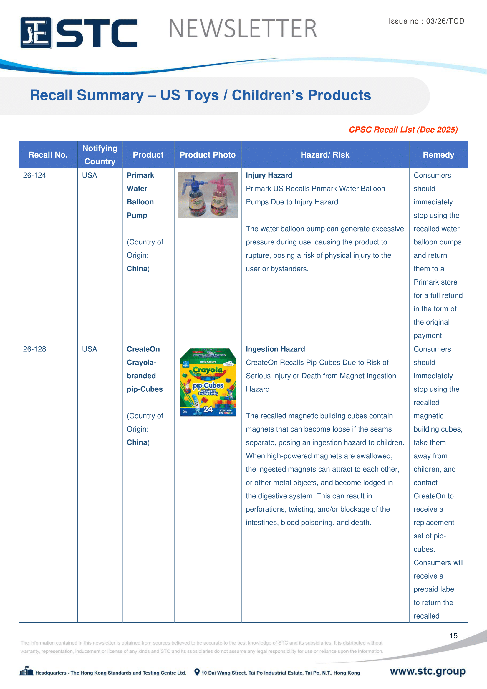 The United States Consumer Product Safety Commission (CPSC) is an independent agency of the United States government. To provide better service in alerting the American people to unsafe, hazardous or defective products, a “one stop shop” for U.S. Government recalls, http://www.recalls.gov, has been created. Members of the public may report unsafe products to CPSC by using the platform.