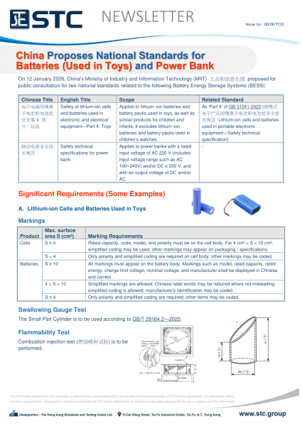 On 12 January 2026, China's Ministry of Industry and Information Technology (MIIT) 工业和信息化部 proposed for public consultation for two national standards related to the following Battery Energy Storage Systems (BESS):