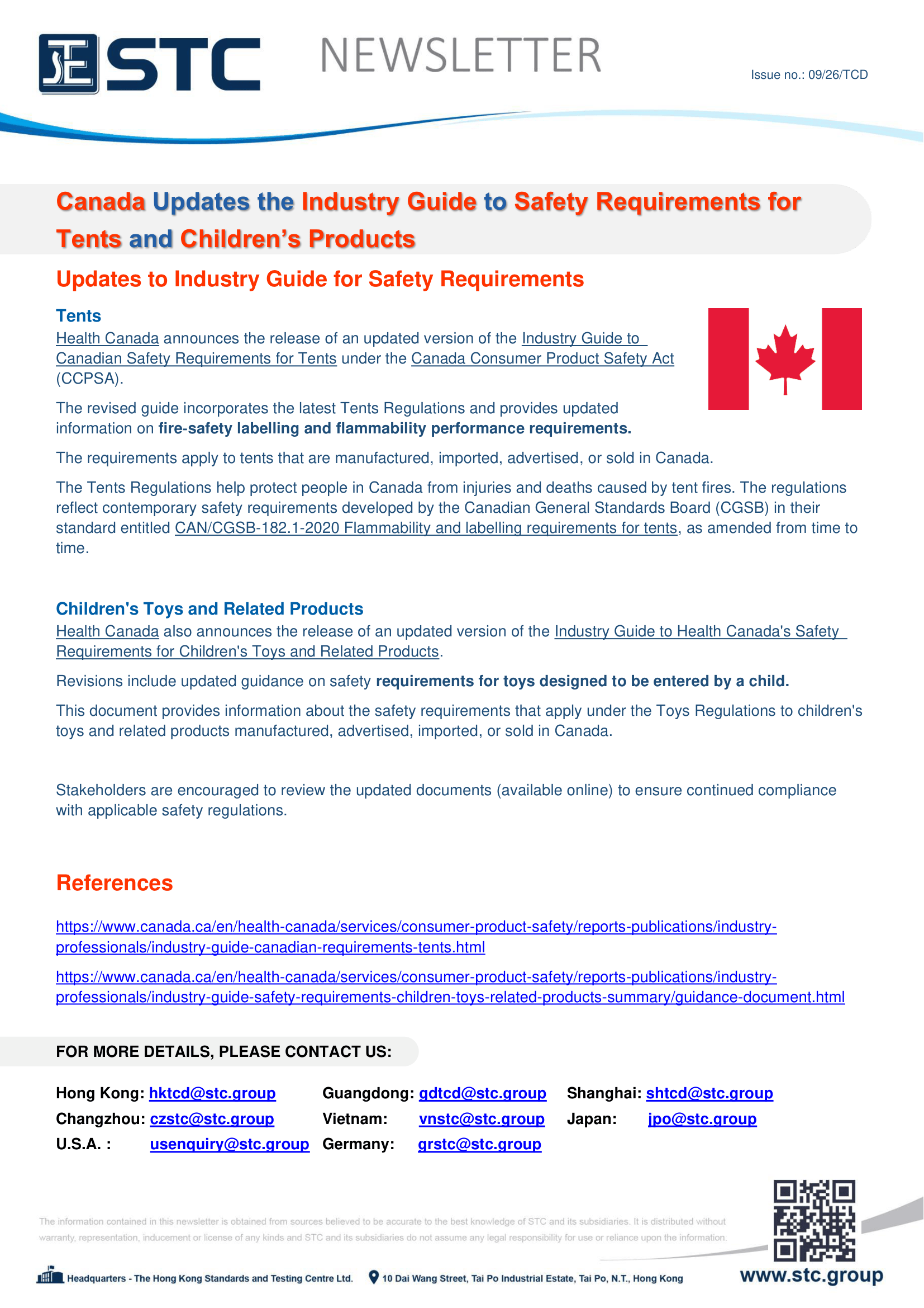 Health Canada announces the release of an updated version of the Industry Guide to Canadian Safety Requirements for Tents under the Canada Consumer Product Safety Act (CCPSA).