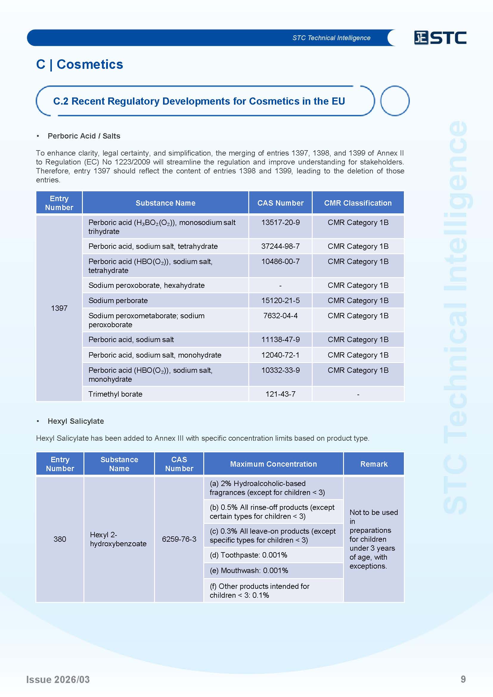 | C.2 | Recent Regulatory Developments for Cosmetics in the EU | P.7 |