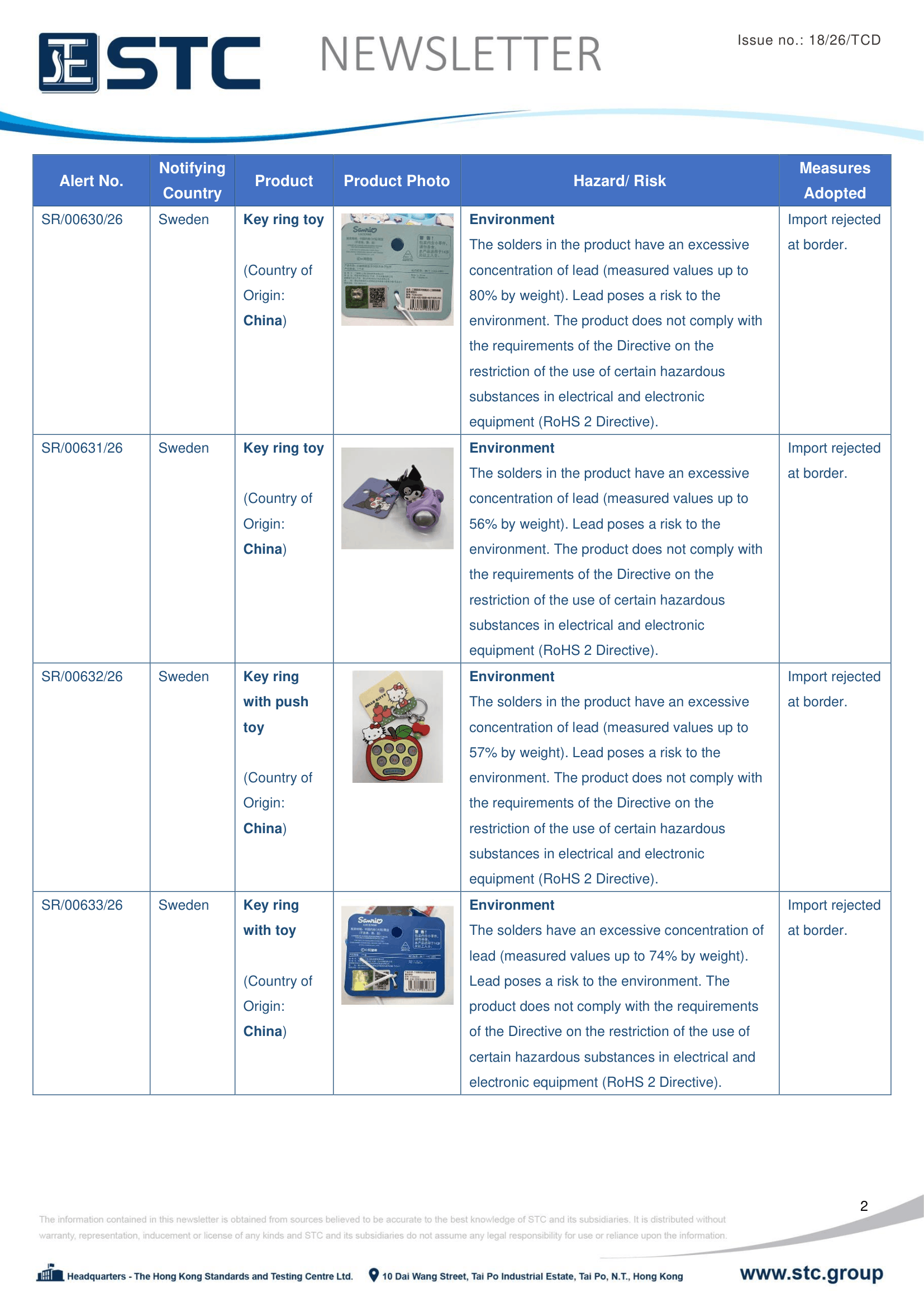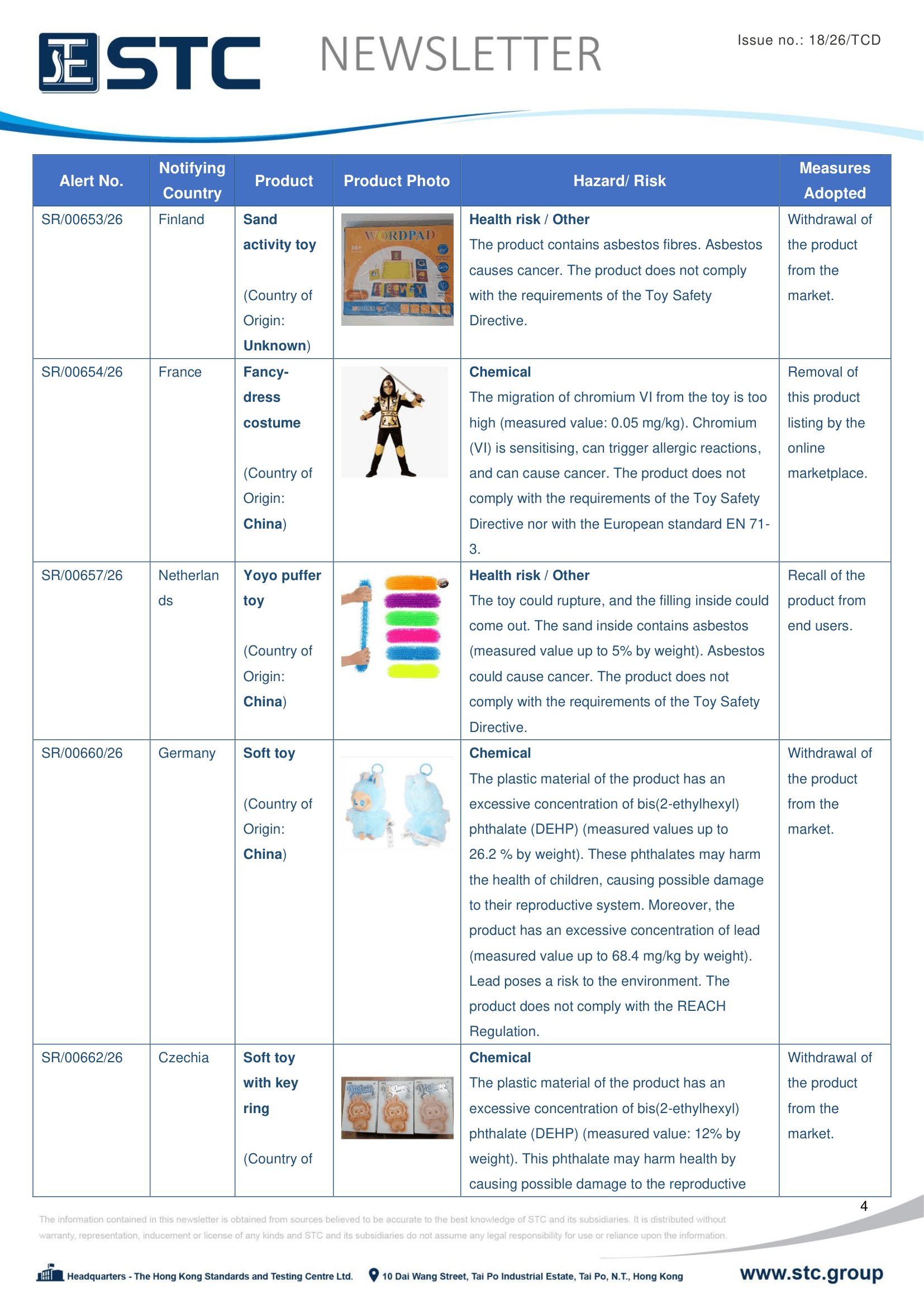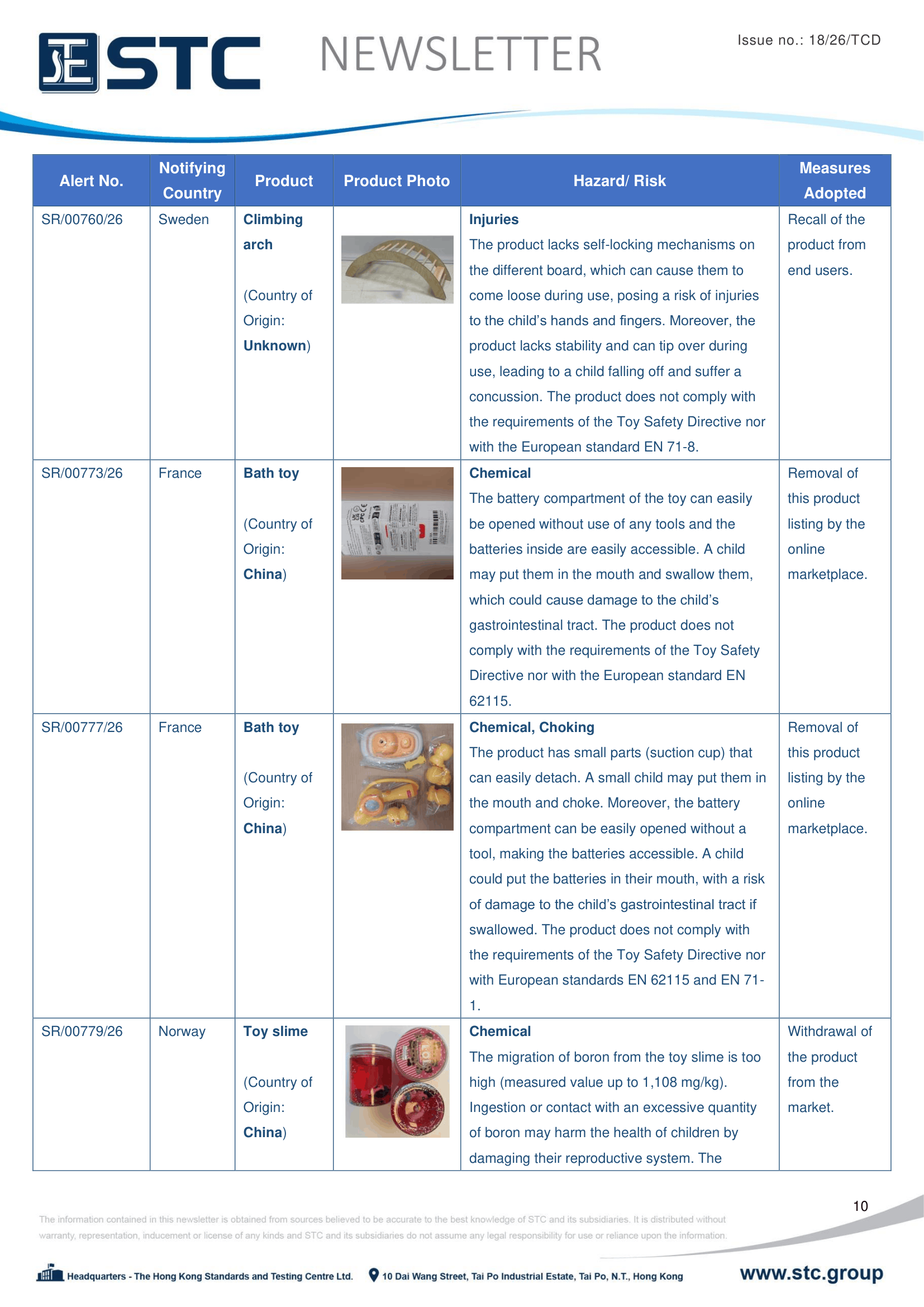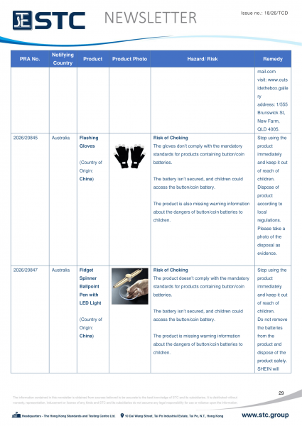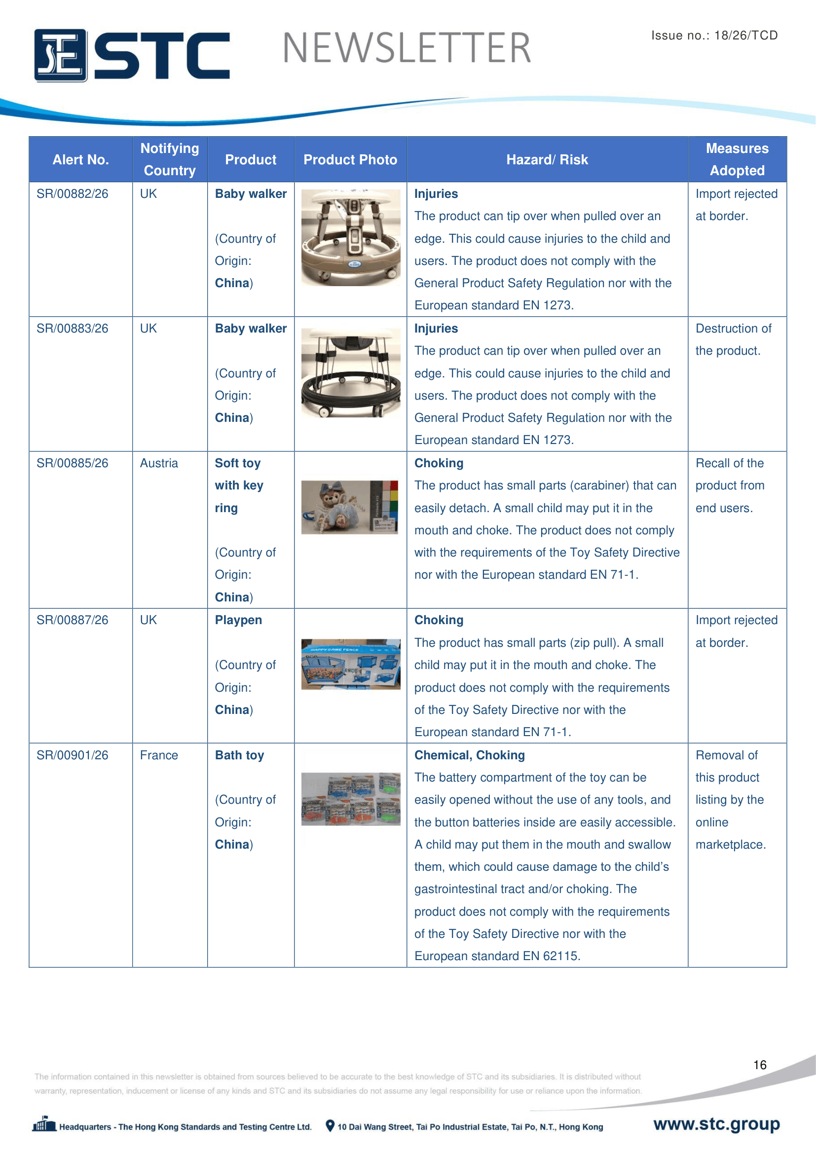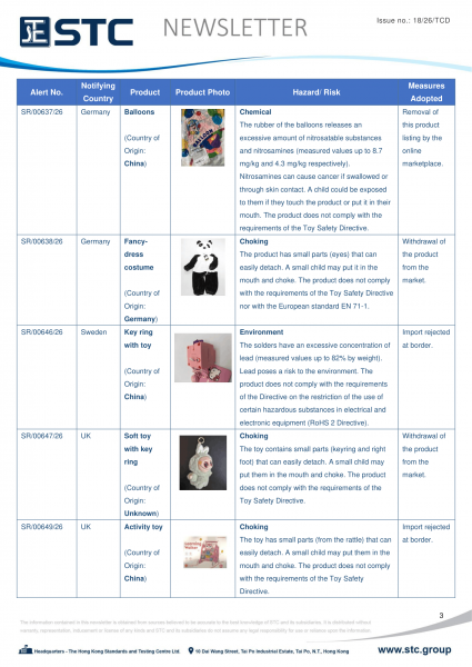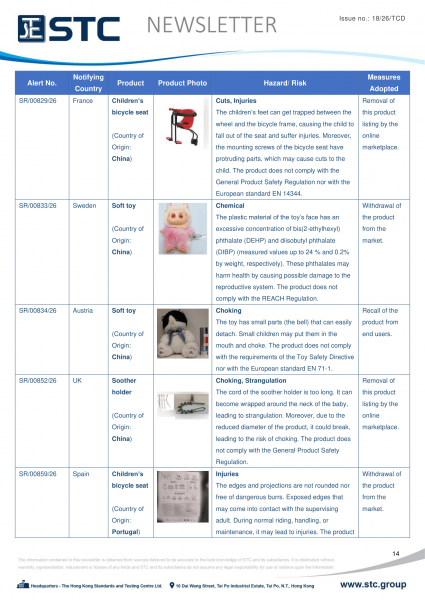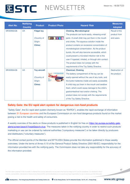 The official contact points of the Member and EFTA-EEA States provide the information published in these weekly overviews. Under the terms of Annex II.10 of the General Product Safety Directive (2001/95/EC) responsibility for the information provided lies with the notifying party. The Commission does not take any responsibility for the accuracy of the information provided.