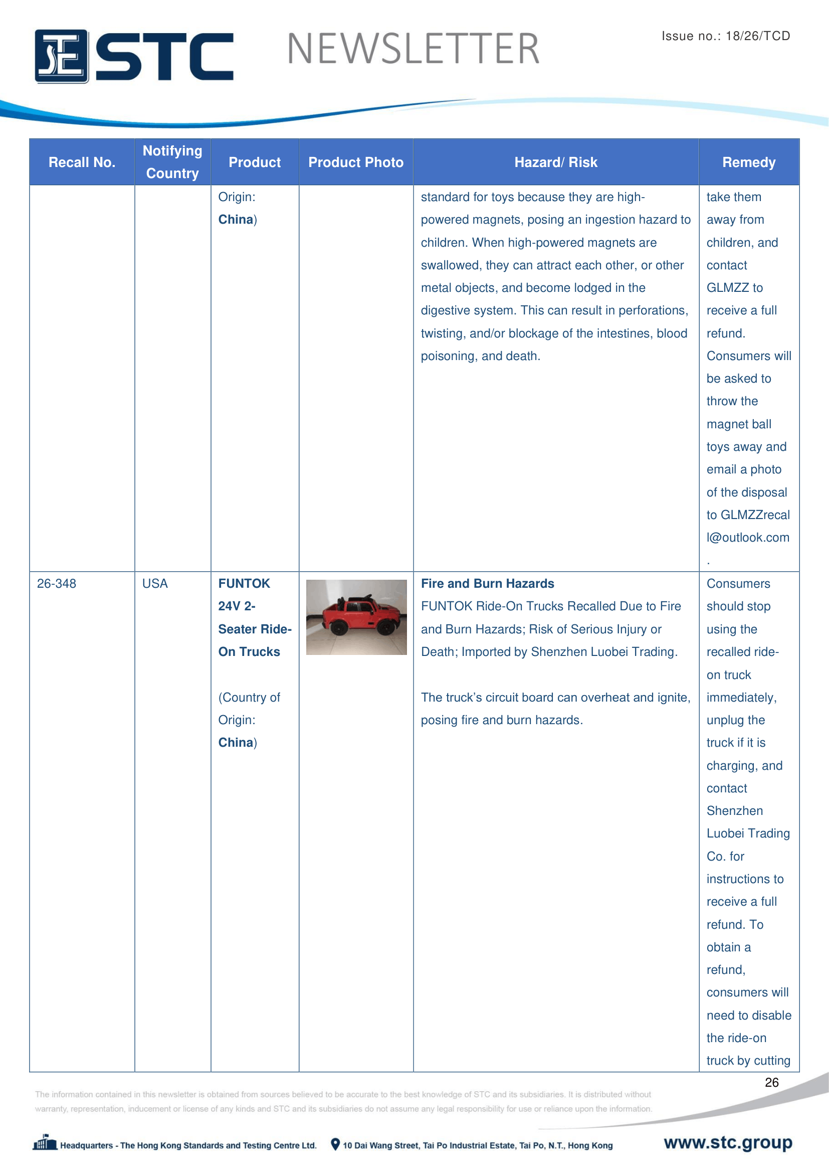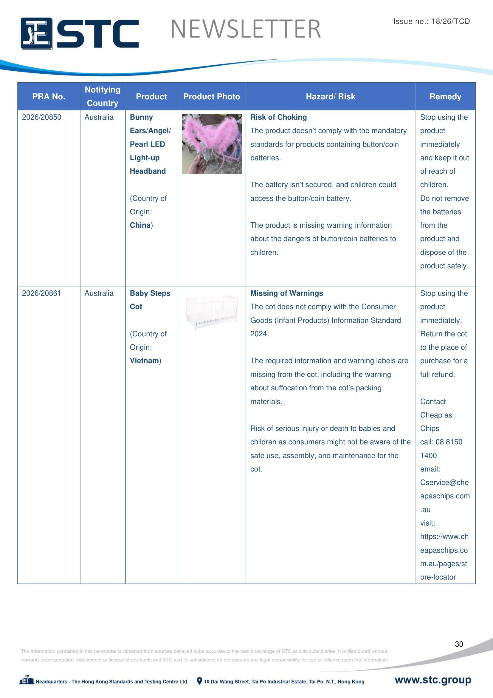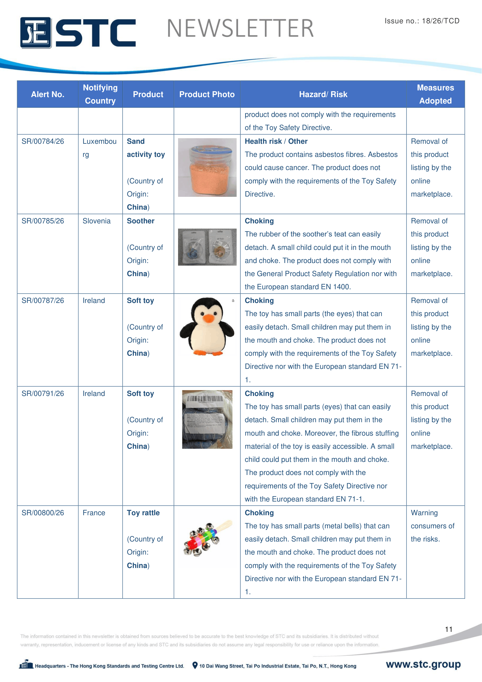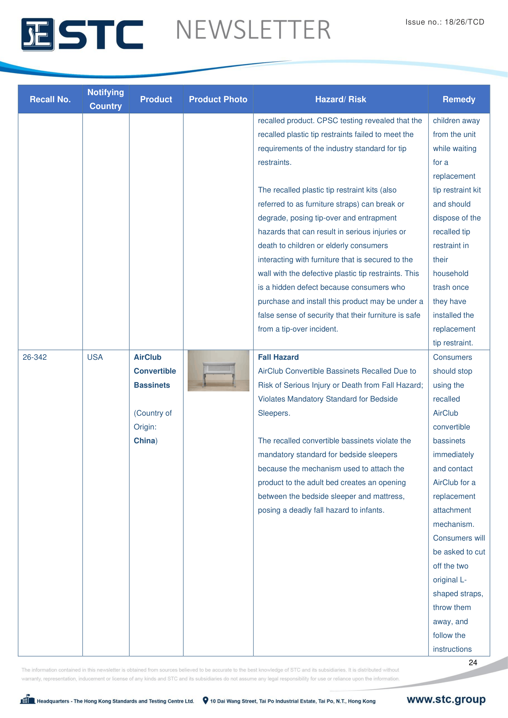 The official contact points of the Member and EFTA-EEA States provide the information published in these weekly overviews. Under the terms of Annex II.10 of the General Product Safety Directive (2001/95/EC) responsibility for the information provided lies with the notifying party. The Commission does not take any responsibility for the accuracy of the information provided.