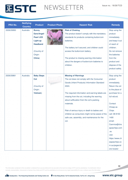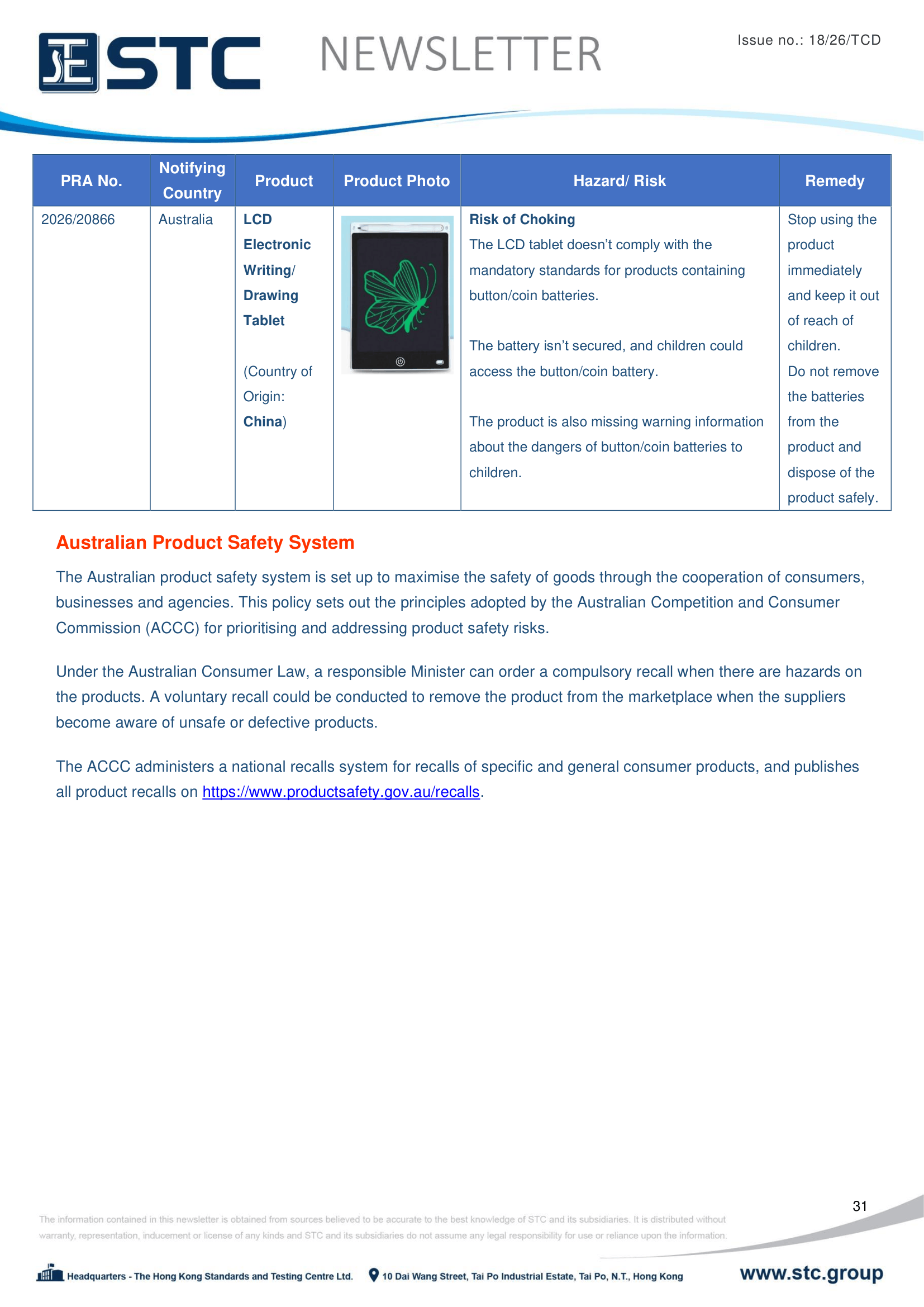 The ACCC administers a national recall system for recalls of specific and general consumer products, and publishes all product recalls on https://www.productsafety.gov.au/recalls.