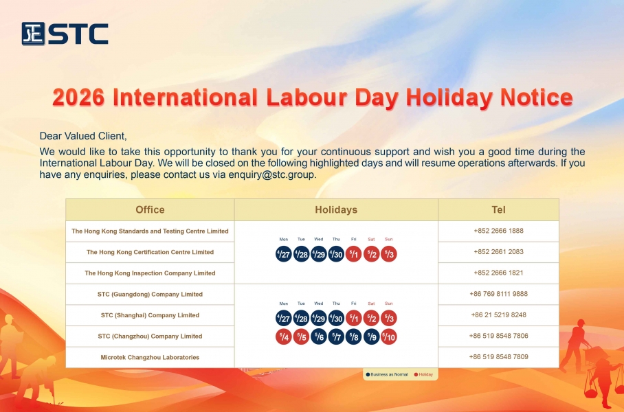 We would like to take this opportunity to thank you for your continuous support and wish you a good time during the International Labour Day. We will be closed on the following highlighted days and will resume operations afterwards. If you have any enquiries, please contact us via enquiry@stc.group.