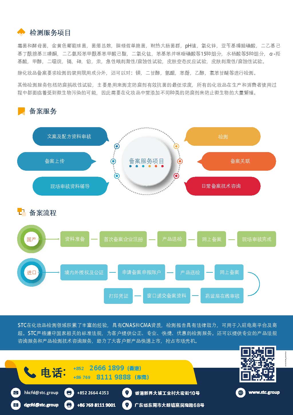 东莞标检产品检测有限公司(STC)于2019年11月20日通过国家药监局化妆品备案信息管理系统审核,成为化妆品注册和备案检验检测机构之一,具备承担普通化妆品 (前稱非特殊用途化妆品) 备案检验工作的资质。
