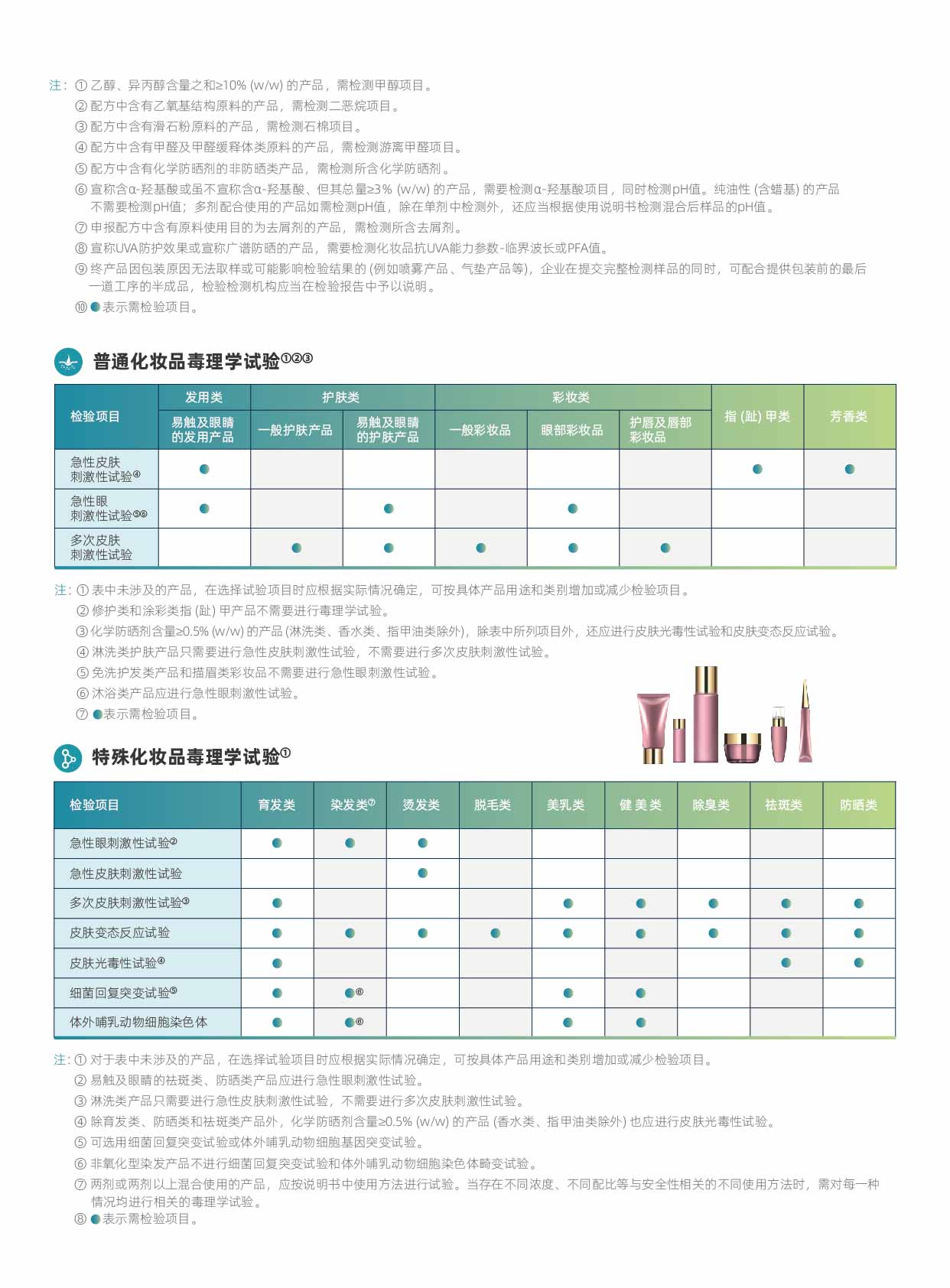 汞,砷,铅,镉,pH值,甲醇,甲醛,二噁烷,氧化锌,二氧化钛,游离甲醛,菌落总数,10种α-羟基酸,耐热大肠菌群,铜绿假单胞菌,霉菌和酵母菌,亚苄基樟脑磺酸,金黄色葡萄球菌,水杨酸等5种组分,二乙基己基丁酰胺基三嗪酮,苯基苯并咪唑磺酸等15种组分,二乙氨羟苯甲酰基苯甲酸己酯,皮肤变态反应试验,皮肤刺激性/ 腐蚀性试验,急性眼刺激性/ 腐蚀性试验。