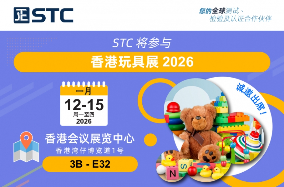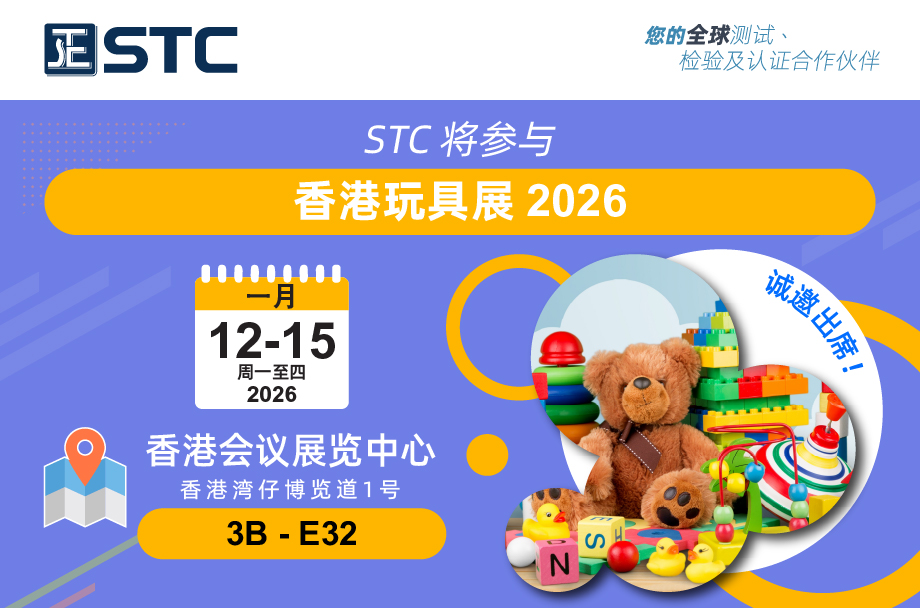 STC (香港标准及检定中心) 将参与由香港贸发局主办的香港玩具展 2026。现诚邀阁下出席展览,了解更多 STC 的测试、检验及认证(TIC)服务,以及各国市场最新的玩具及儿童产品规例要求。