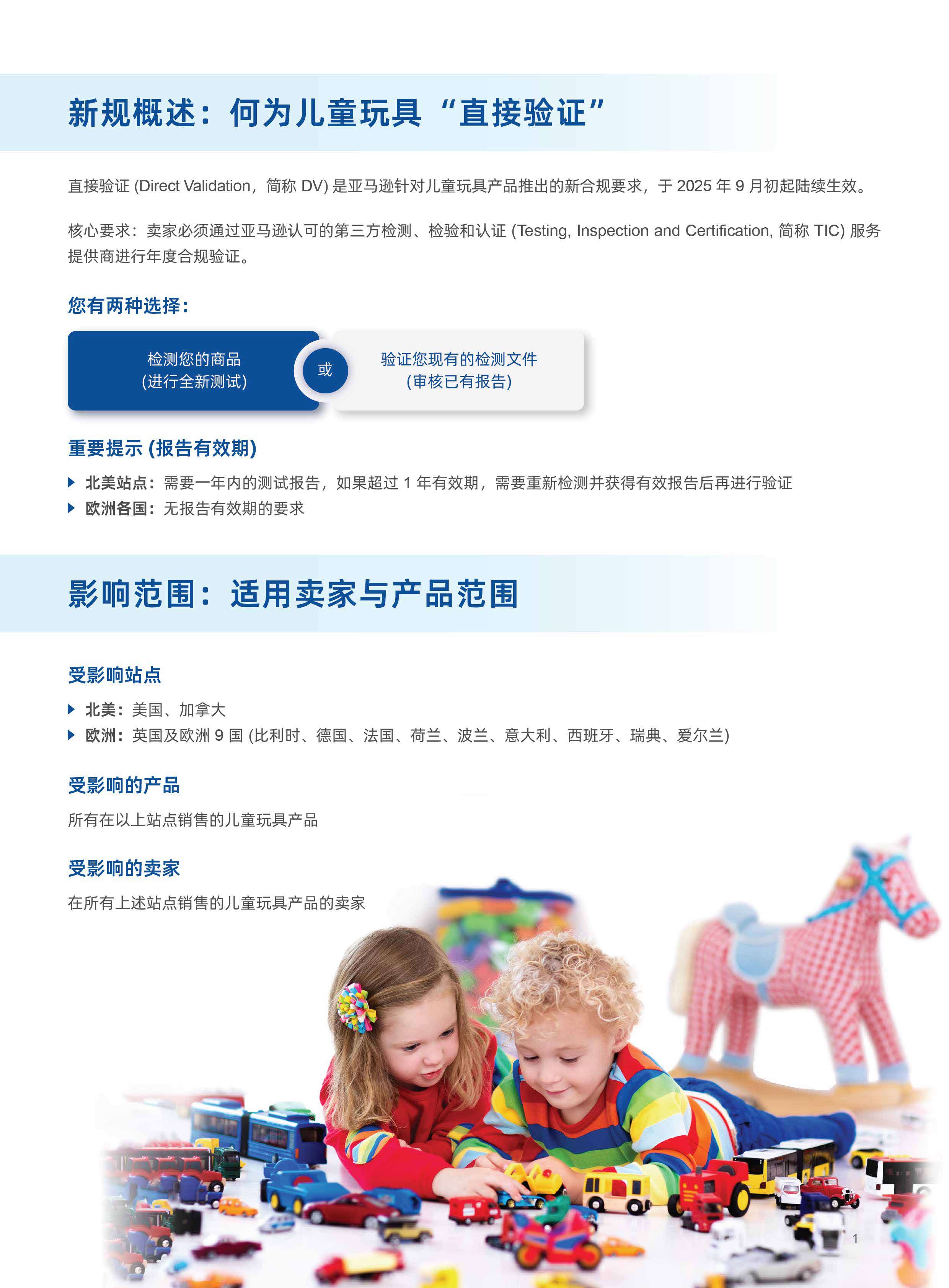 直接验证 (Direct Validation,简称 DV) 是亚马逊针对儿童玩具产品推出的新合规要求,于 2025 年 9 月初起陆续生效。