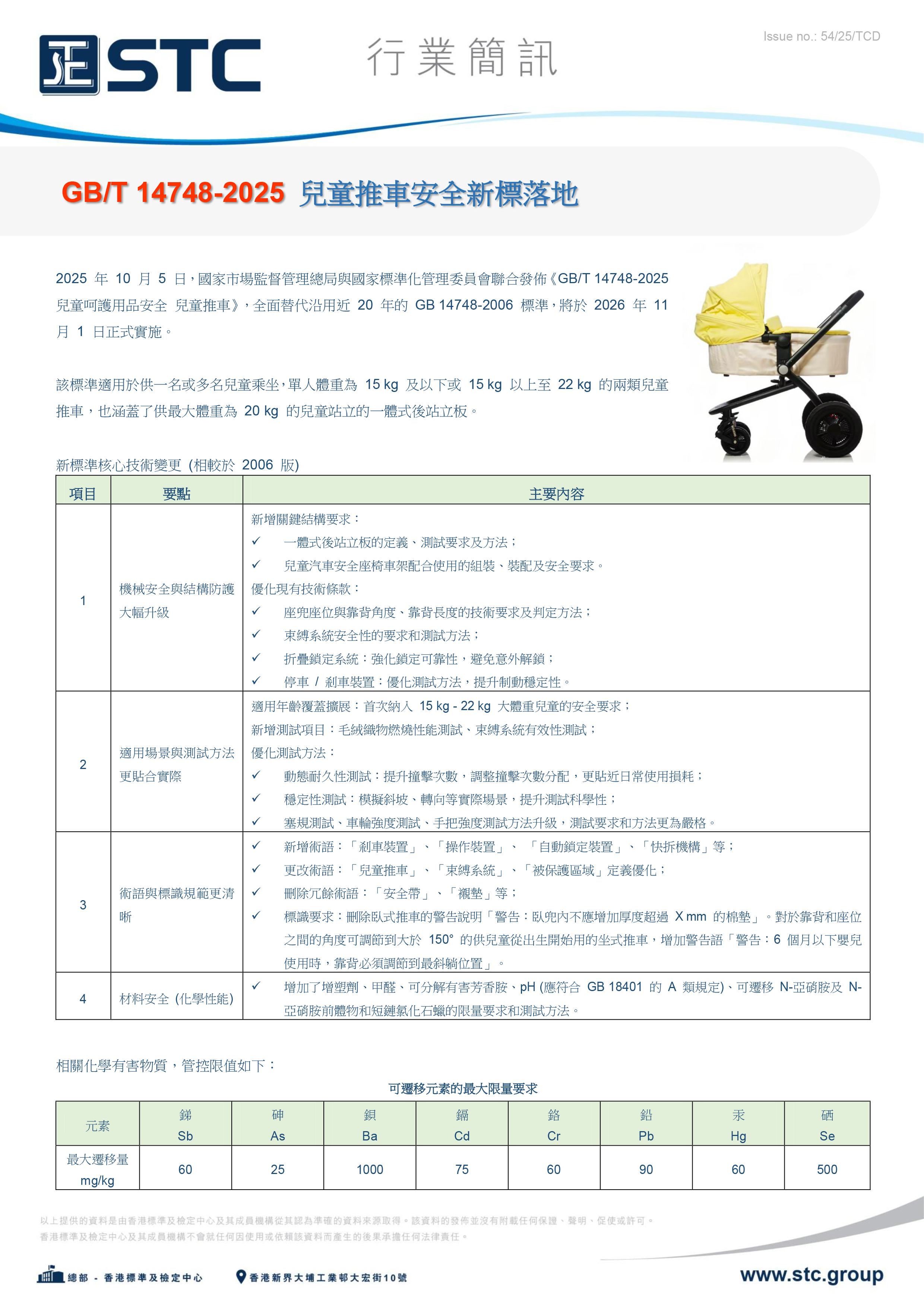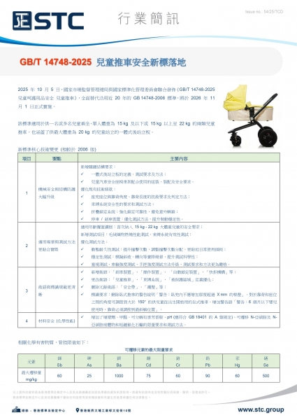 2025 年 10 月 5 日,國家市場監督管理總局與國家標準化管理委員會聯合發佈《GB/T 14748-2025 兒童呵護用品安全兒童推車》,全面替代沿用近 20 年的 GB 14748-2006 標準,將於 2026 年 11 月 1 日正式實施。