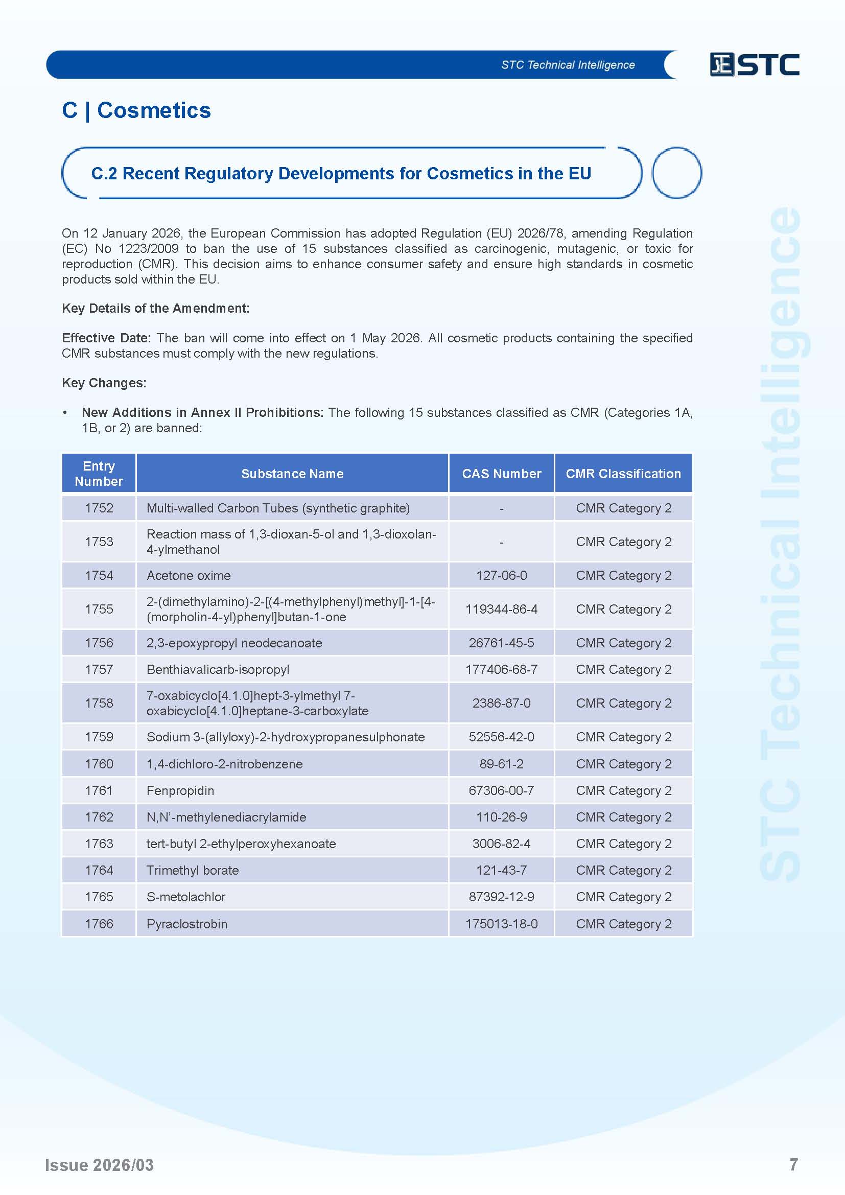 | C.2 | Recent Regulatory Developments for Cosmetics in the EU | P.7 |