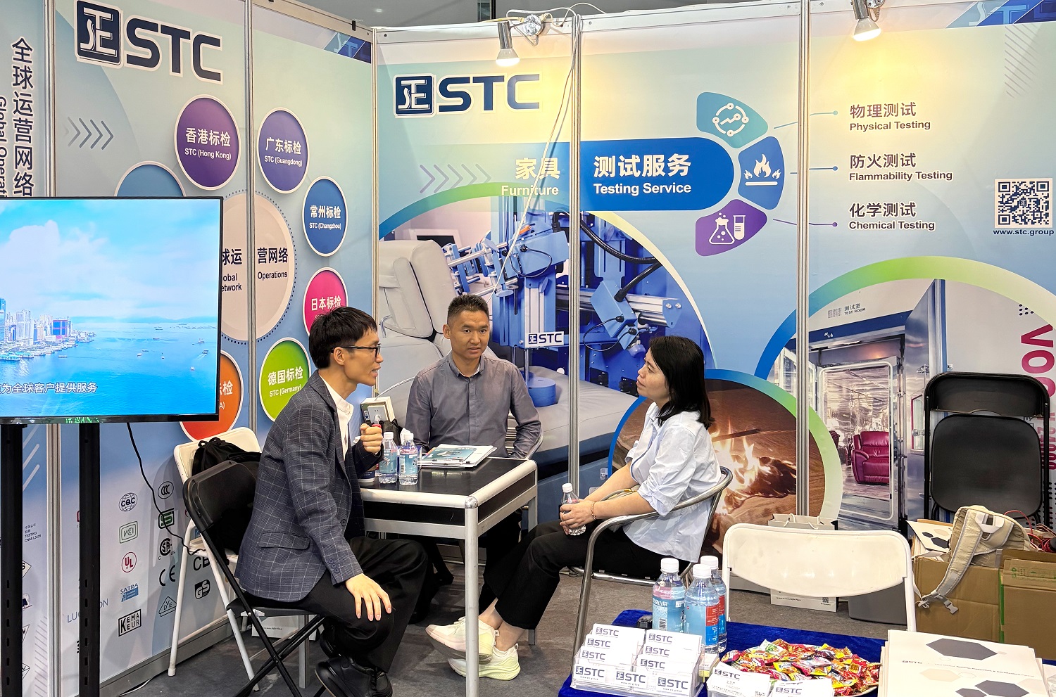 STC 亮相展館 C 區 S16.4A02 展位。展會現場反應熱烈、互動頻繁,吸引了眾多企業代表、生產商及境內外採購商前來諮詢。STC 專家團隊耐心地為大家答疑解惑,詳細講解不同類型家具產品在全球不同國家或地區的最新法規要求及標準更新,同時向大家介紹 STC 的服務範圍、測試能力及專業服務,幫助企業提升產品品質和競爭力,來訪的客商對 STC 的服務能力和專業技術表示讚賞和認可。