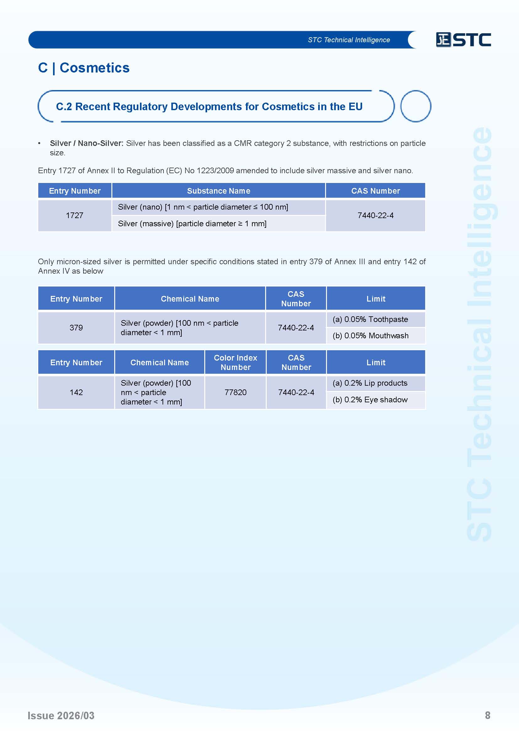 C.2 Recent Regulatory Developments for Cosmetics in the EU P.7